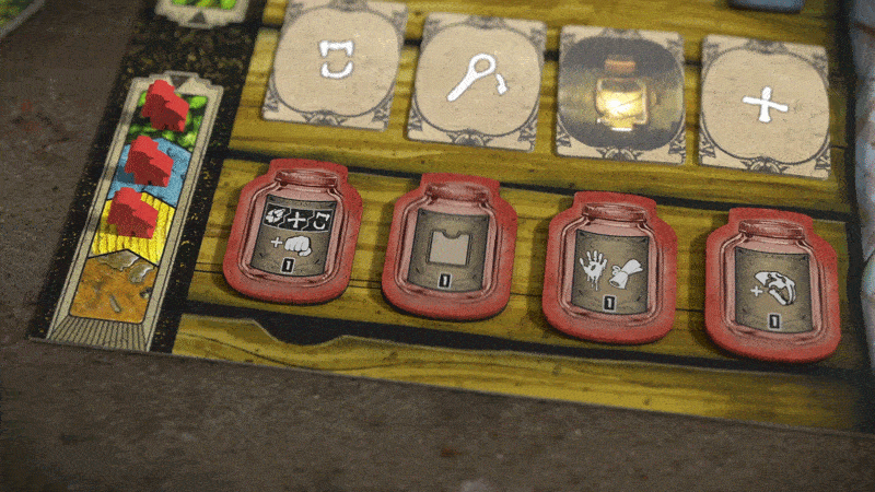 Выбирайте действия по очереди, переворачивая банки с ними.