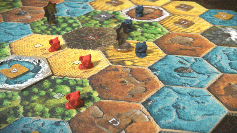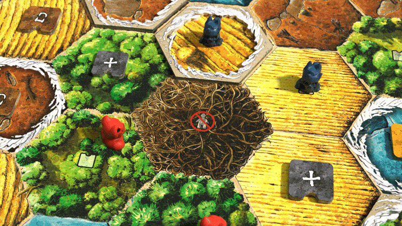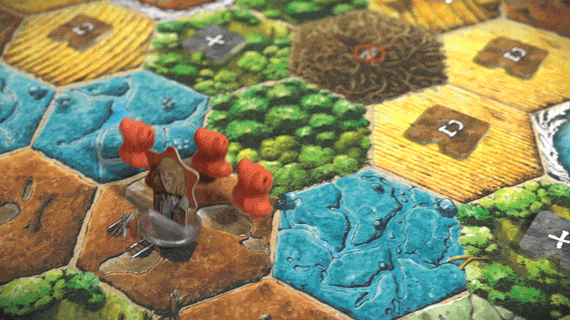 Перед сражением участники закидывают в башню свои кубики, накопленные на поле боя. Если у атакующего выпадет больше, он сможет устранить духов противника. Хитрость в том, что часть кубиков застревает внутри ствола дерева, из-за чего результат боя становится непредсказуемым.