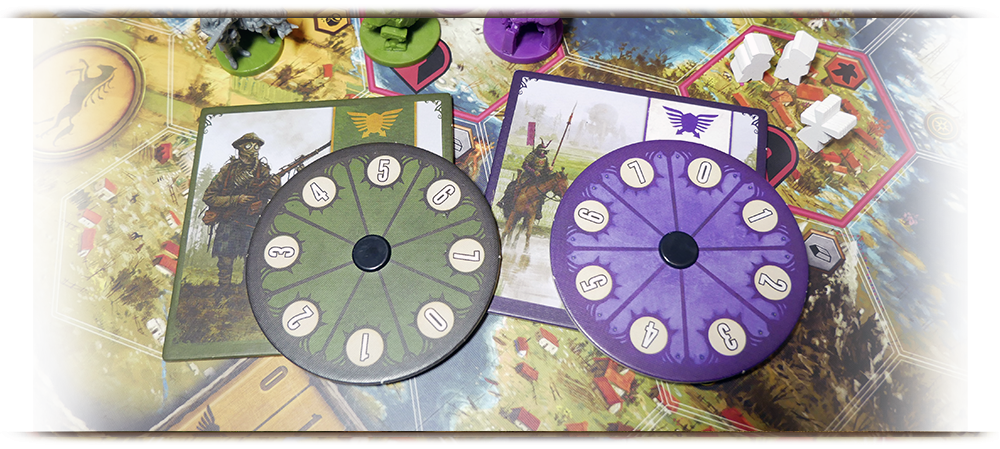 Поскольку все миниатюры и ресурсы в игре находятся на поле, вопрос пространства очень важен. Во второй половине партии на клетках территорий игрокам становится тесновато.