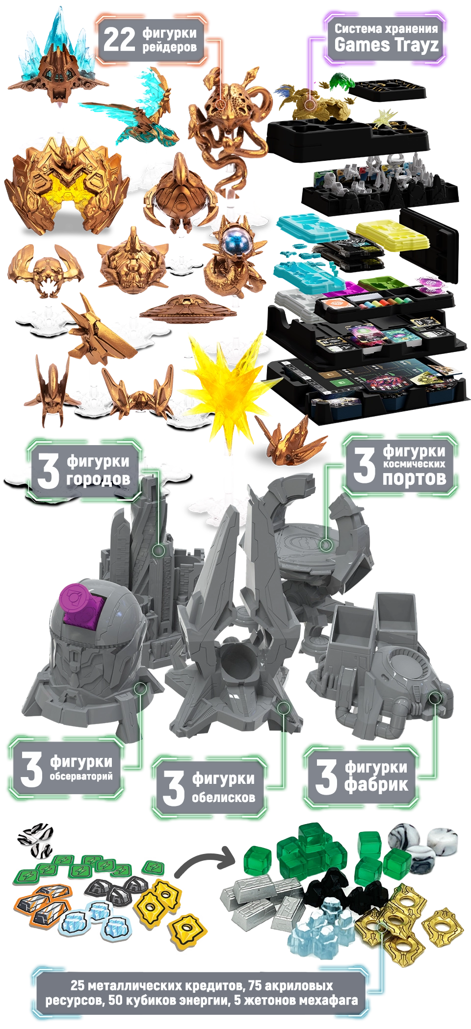 ✧ А также все дополнения (включая «Генезис»), деревянные жетоны, кубики — словом, почти всё, что было в кампании на Gamefound. Аксессуары доступны только на предзаказе!
