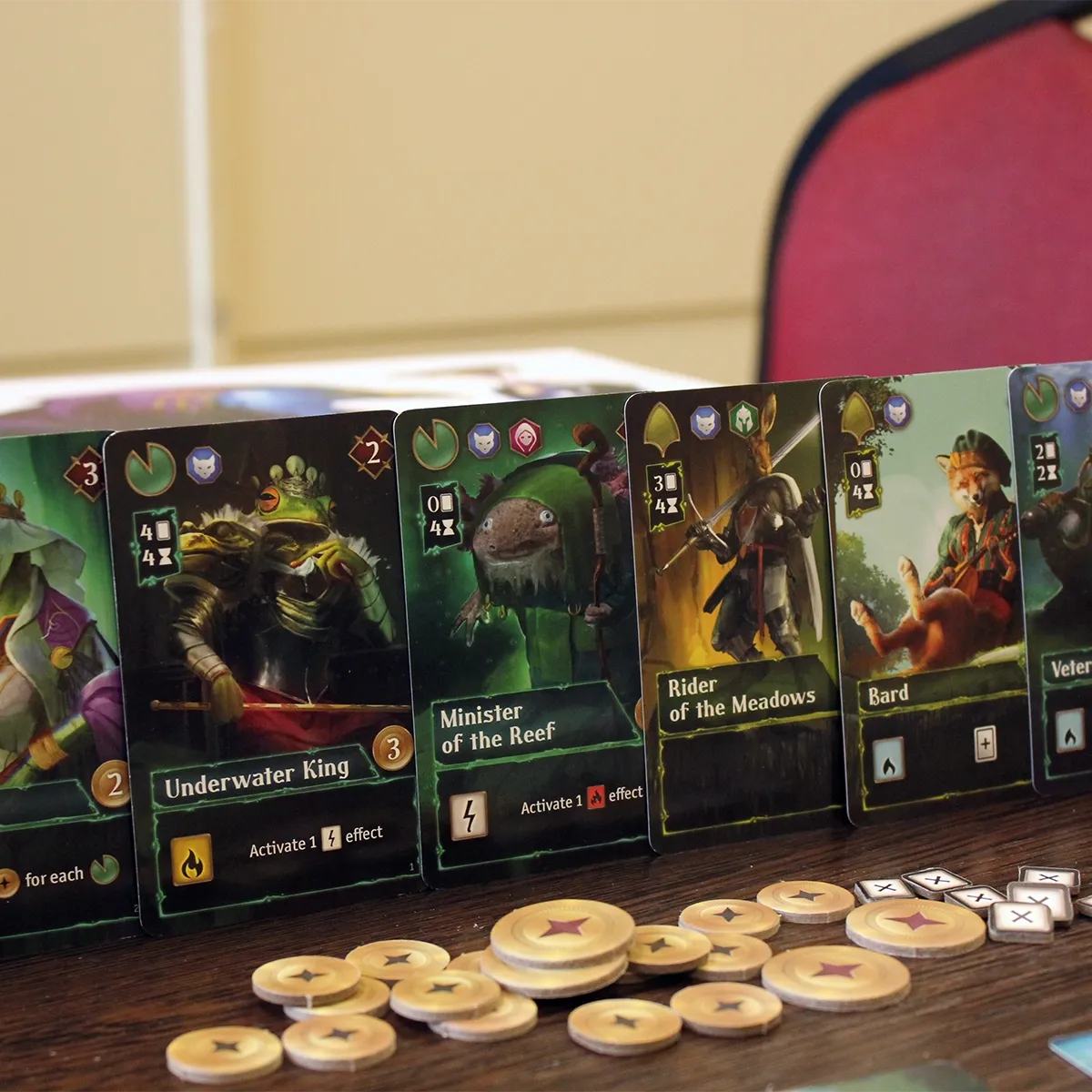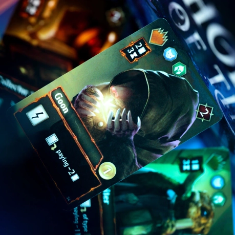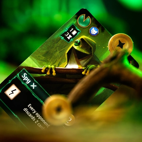 Главная фишка игры — очередь жетонов на вашем планшете. Новые карты вы разыгрываете не сразу, а помещаете на один из жетонов. Каждый раунд жетоны сдвигаются вправо, карты постепенно перемещаются и вступают в игру, когда достигают края планшета. Но это ещё не всё! Каждый жетон активирует определённый тип эффектов карт. А вы можете влиять на них: ускорять или замедлять движение жетонов, управляя темпом партии и активации карт.