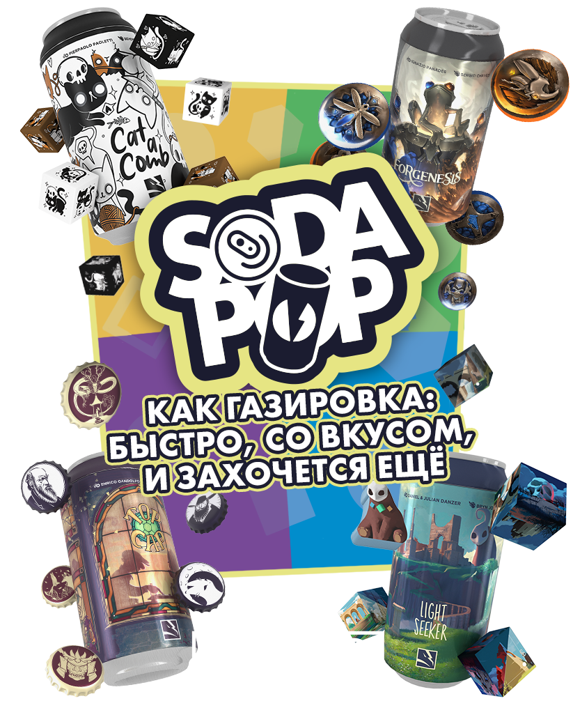 А у нас стартуют продажи серии «Газировка» (она же Soda Pop): это четыре компактные дуэльные игры в стильных жестяных баночках.