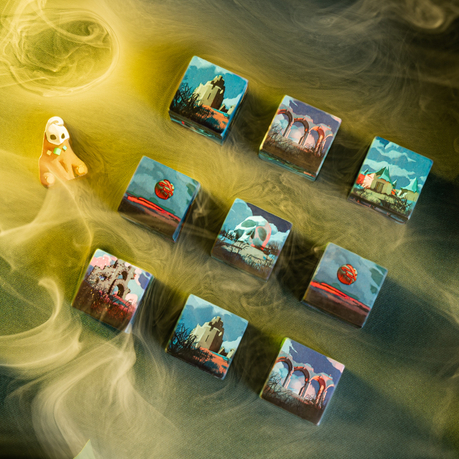 Необычные компоненты. Кастомные кубики, бутылочные крышечки и деревянные цветные кубы качественно выполнены и выглядят прекрасно.