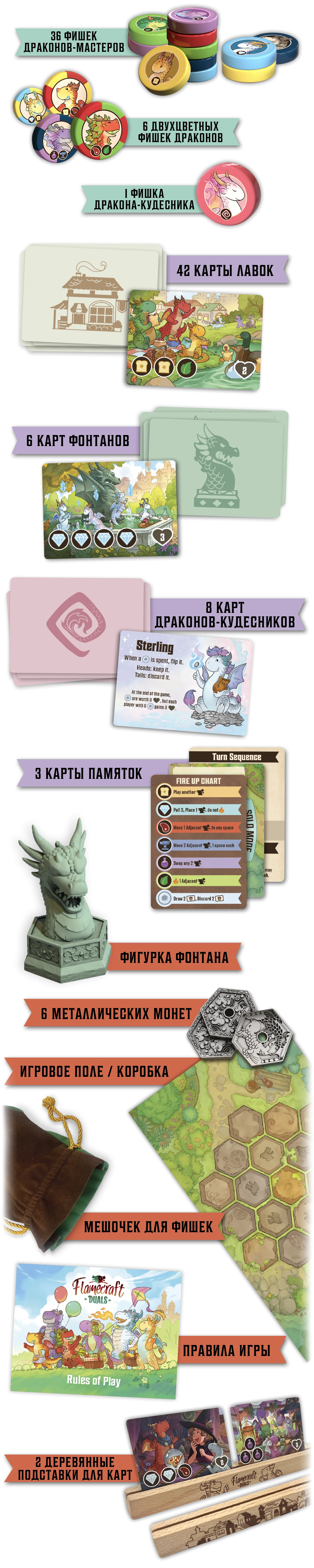В этот промонабор вошли все выпущенные промо к игре «Мастера пламени» и теперь вы можете стать их счастливым обладателем! В набор входит 13 карт лавок и 6 карт драконов с альтернативным изображением.