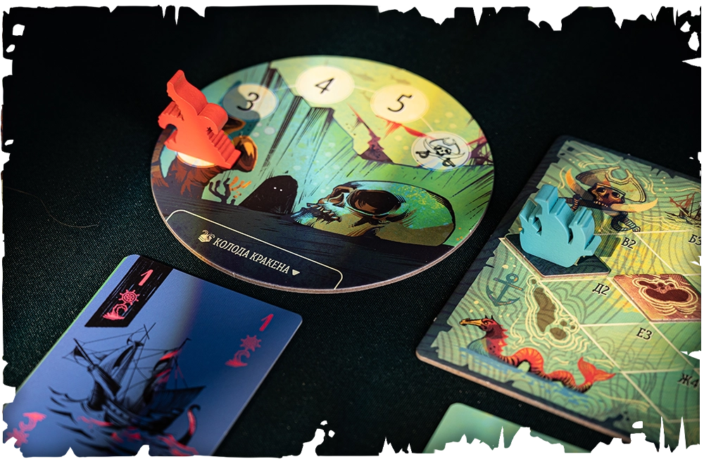 Чаще всего вы будете перемещать корабль и наносить урон кракену. Последнее позволяет не только на время избавиться от не самых полезных карт, но и продлевает партию, ведь если в колоде кракена закончатся карты, вы проиграете.