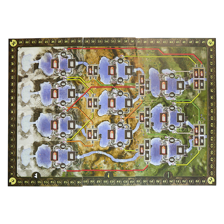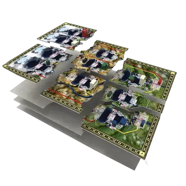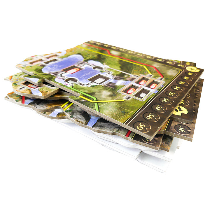 Объёмное игровое поле для игры заменяет основное игровое поле из игры «Плотина». Позволит вам визуализировать течение воды через плотины, что сделает каждую партию намного атмосфернее. Поле легко собирается и состоит из нескольких частей, которые скрепляются между собой магнитами. Составные части имитируют разную высоту ландшафта в игре. Кроме того, двухслойное покрытие поля позволит удобно размещать на нём фишки построек игроков.