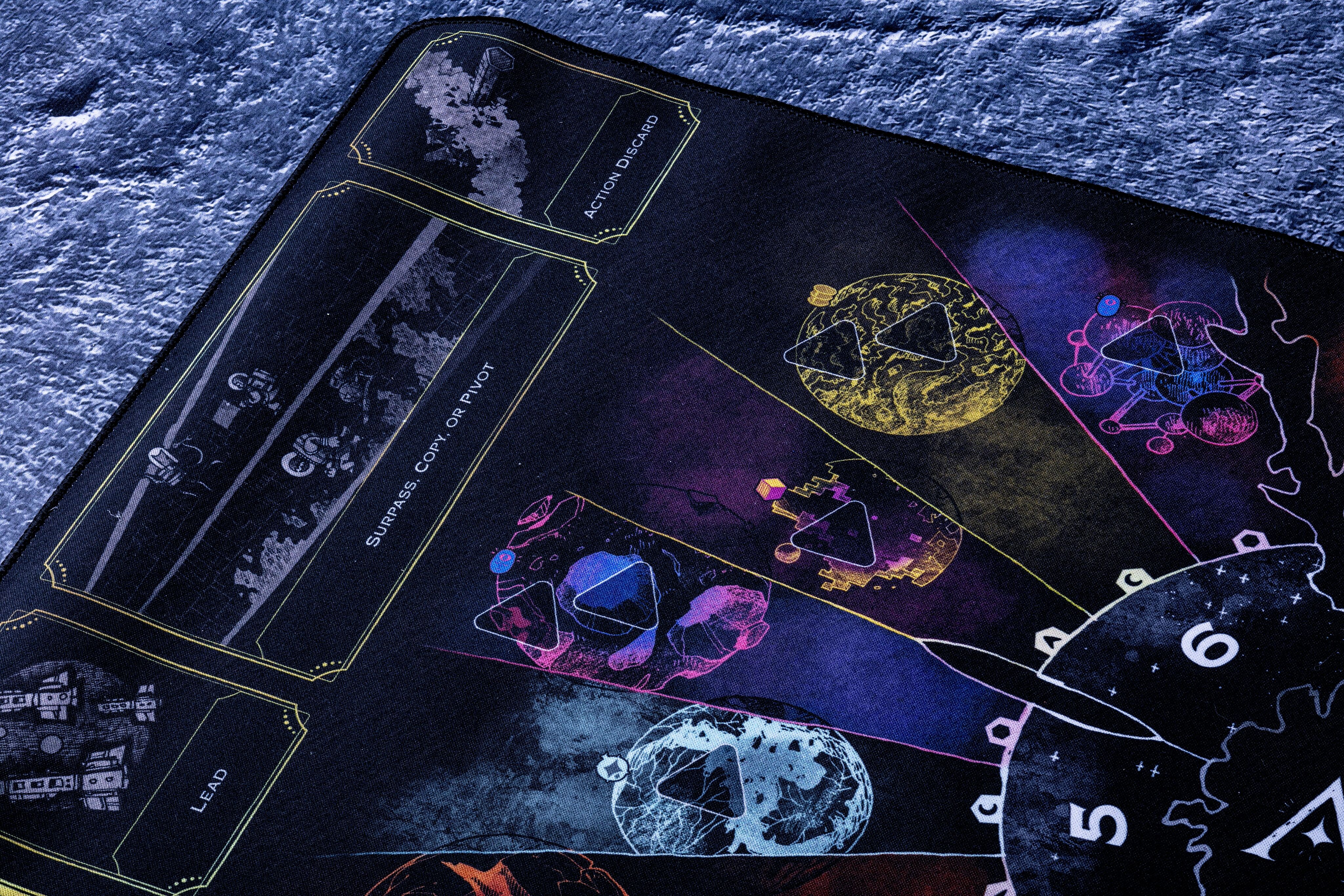 Приятный на ощупь и удобный в использовании неопреновый плеймат, компоненты и карты приятно класть и удобно брать. Плеймат прошит по краям, у него нет стыков, как у разложенного поля. Размер совпадает с игровым полем.
