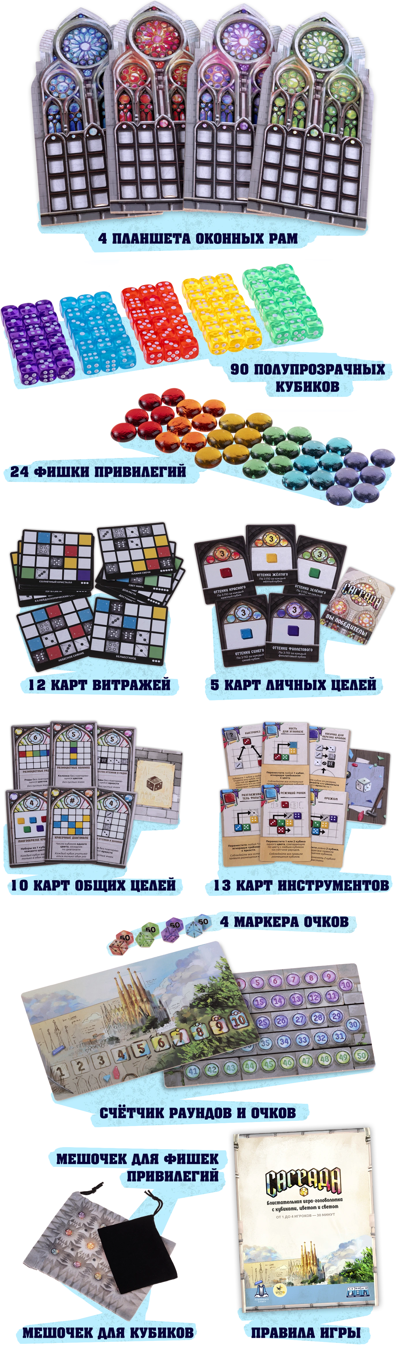 Целых 24 промокарты с новыми витражами для увеличения реиграбельности. Большинство карт в этом наборе издаются нами впервые!