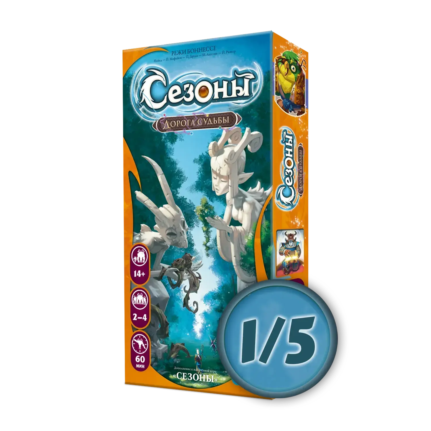 «Дорога судьбы» — второе дополнение к игре «Сезоны», в которое входят 42 новые карты способностей (по 2 экземпляра каждой), совместимые со всеми существующими картами, а также 10 новых карт колдовства. Помимо этого, ваш арсенал пополнят 6 новых жетонов особых свойств и кубик судьбы, который укажет вам дорогу.