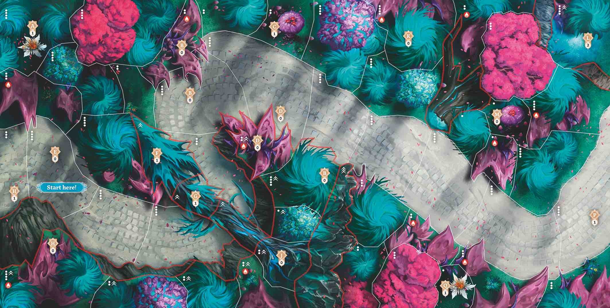 По мере того, как ваши герои исследуют карту, запускаются точки истории, открывающие больше информации о том, что вас окружает. Они могут предоставить полезное оборудование или сокровища, порождать новых врагов на карте или дать вашему герою возможность проверить одну из своих способностей: силу, ловкость или волю, бросая кубики и тратя ману. Вы тратите ману в виде фишек маны, но они также расходуются и переворачиваются на свою сторону с раной, когда ваш герой получает урон, уменьшая количество маны, доступное для вашего героя.