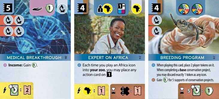 В настольной игре Ark Nova («Арк Нова») не так много доступных действий, но используются они интересным образом – эффективность того или иного действия зависит от того, где располагается его карта, и карты перемещаются между слотами при использовании. Так вы можете и планировать свои действия, и знаете, что одно и то же действие с мощным эффектом несколько раз подряд выполнить нельзя – нужно подождать, пока карта этого действия снова доберётся до нужной позиции.