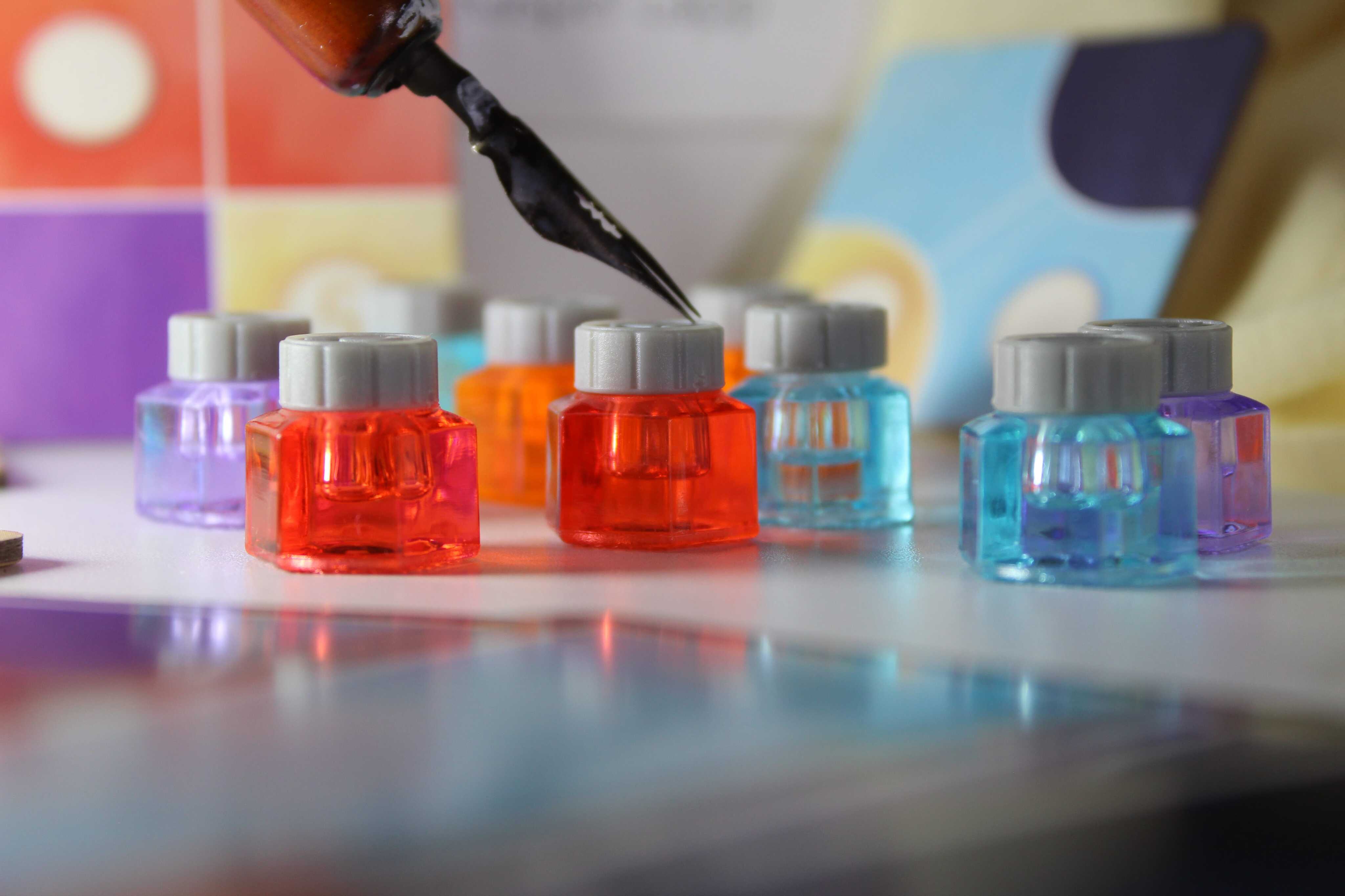 Собирайте картины из красивых чернильных разводов определённых цветов. Собрав область из нужного количества квадратов, вы выполняете задание и закрываете его пузьком чернил. Победит тот, кто первым выставит все свои пузырьки из запаса!