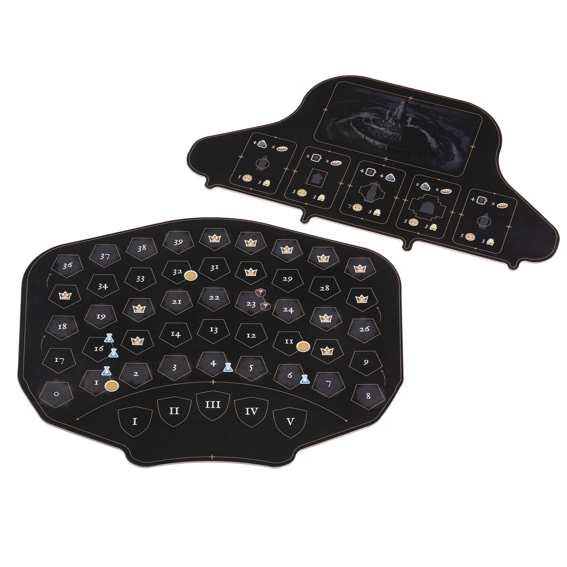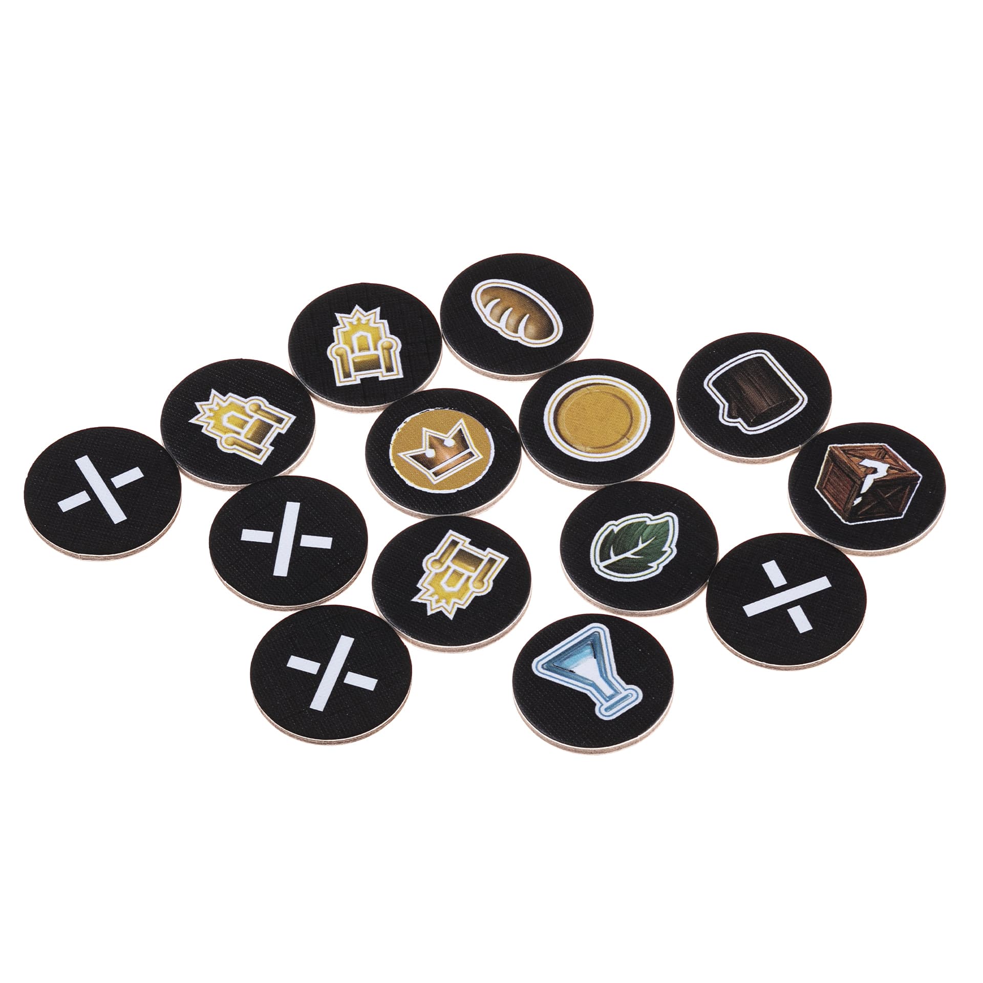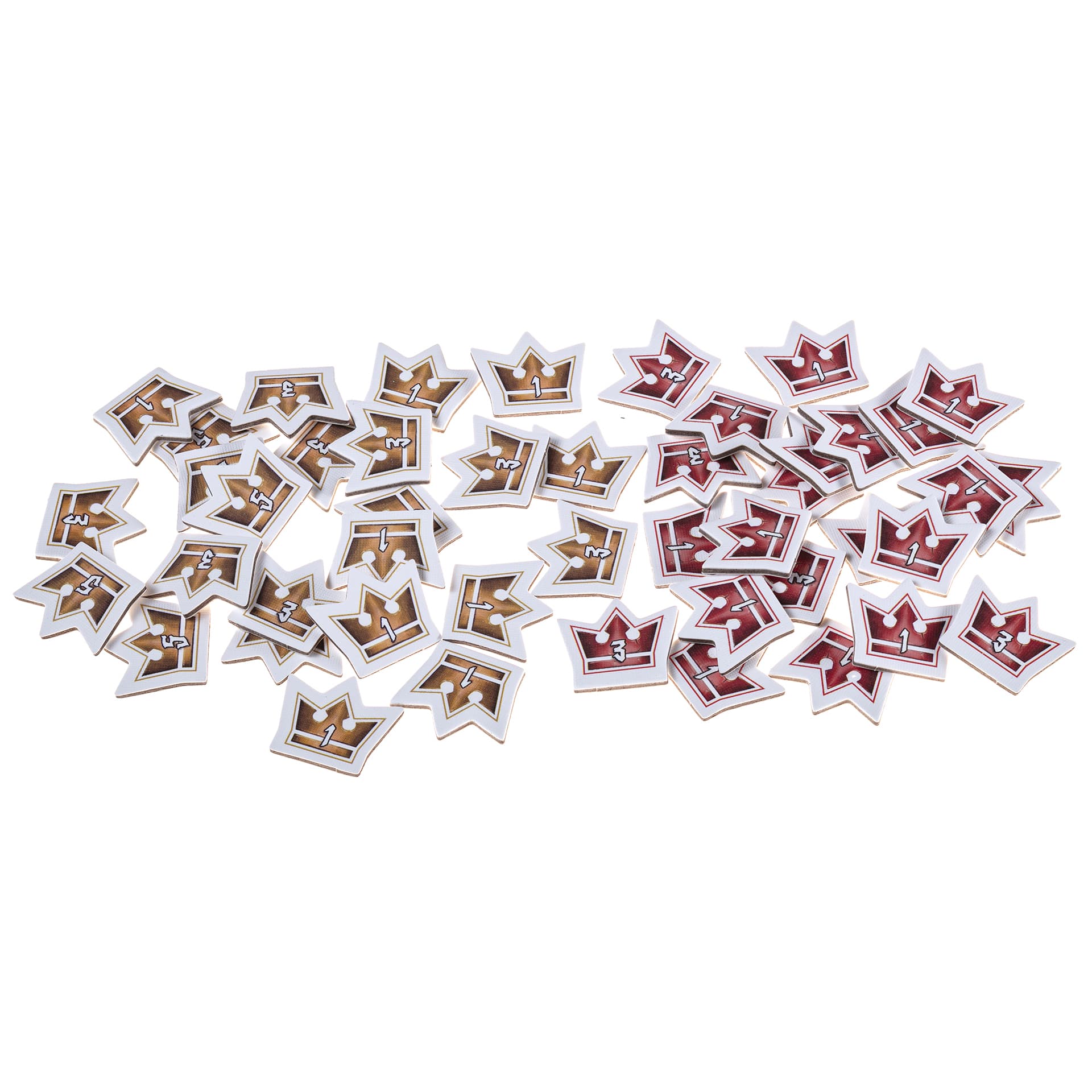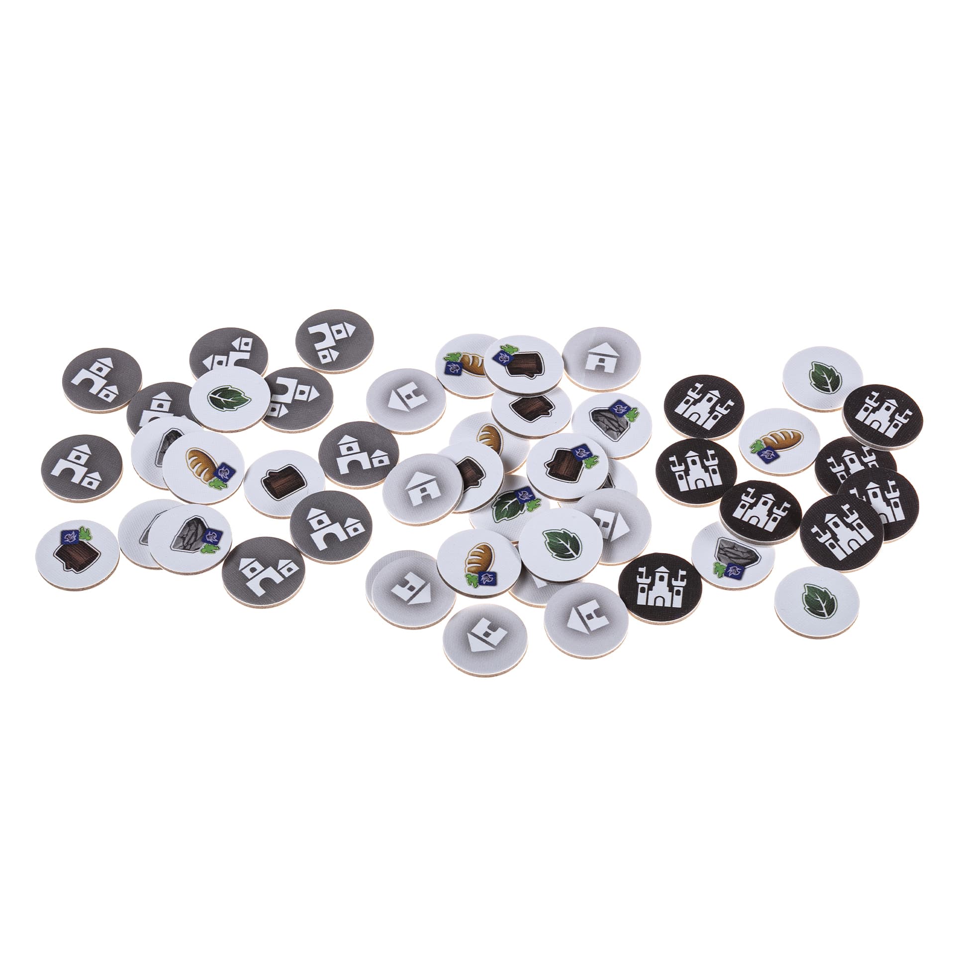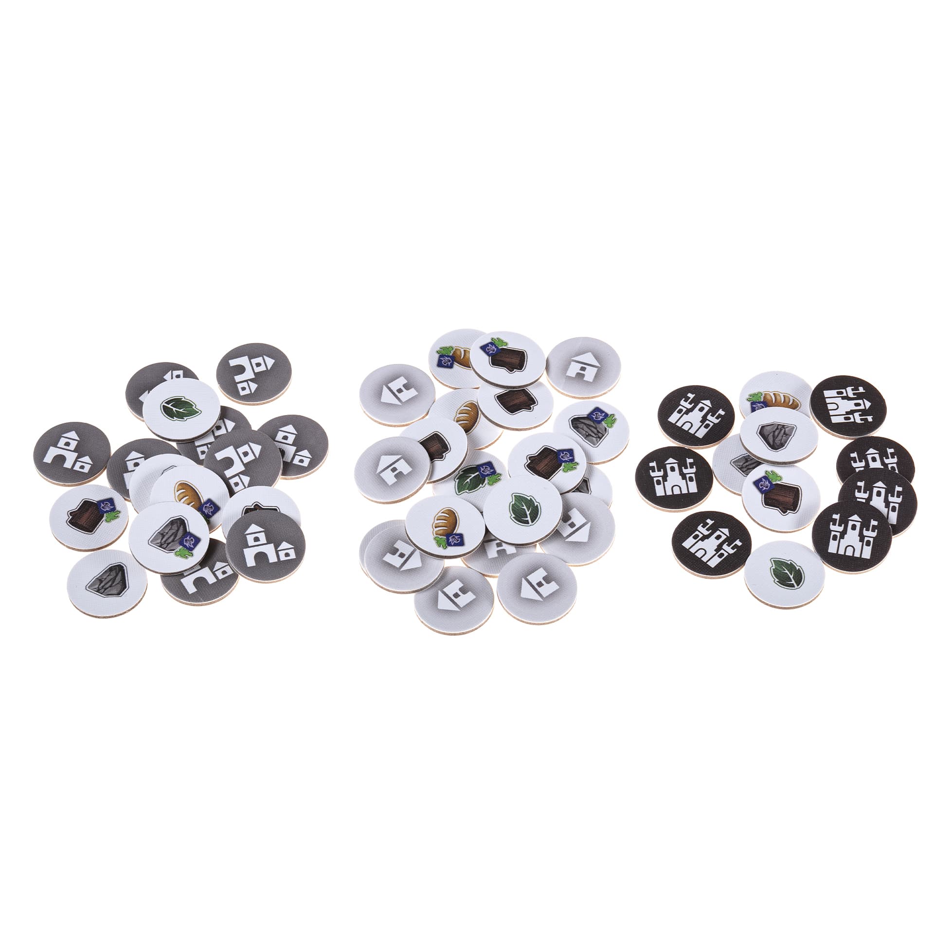 • 50 фишек зданий (по 1 мастерской, 1 фабрике, 1 монетному двору, 1 замку и 6 районам на игрока)