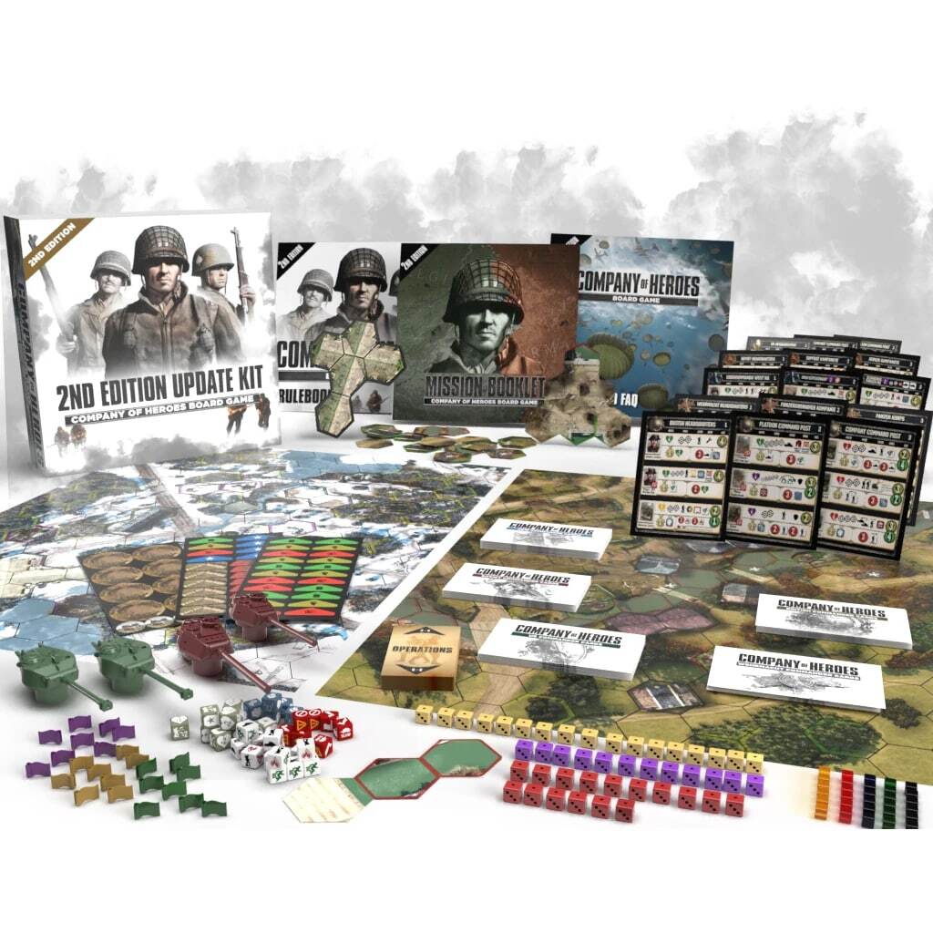 Настольная игра The Company of Heroes возвращается в обновлённом втором издании! Первое издание, получившее множество наград, было признано одним из лучших портов видеоигр. Теперь, после двух лет работы с отзывами сообщества, во втором издании появились новые правила штурма, улучшенные юниты и командиры, дополнительные компоненты и 40 новых карт. В этой великолепной настольной игре о Второй мировой войне тактические сражения переплетаются с важными экономическими решениями. Управляйте отрядами пяти уникальных фракций, чтобы захватить точки с ресурсами, развить свою экономику и открыть производственные здания для покупки и улучшения новых отрядов. Игроки повышают уровень своих командиров и в конце концов высвобождают мощные силы своей команды, чтобы одержать победу!
