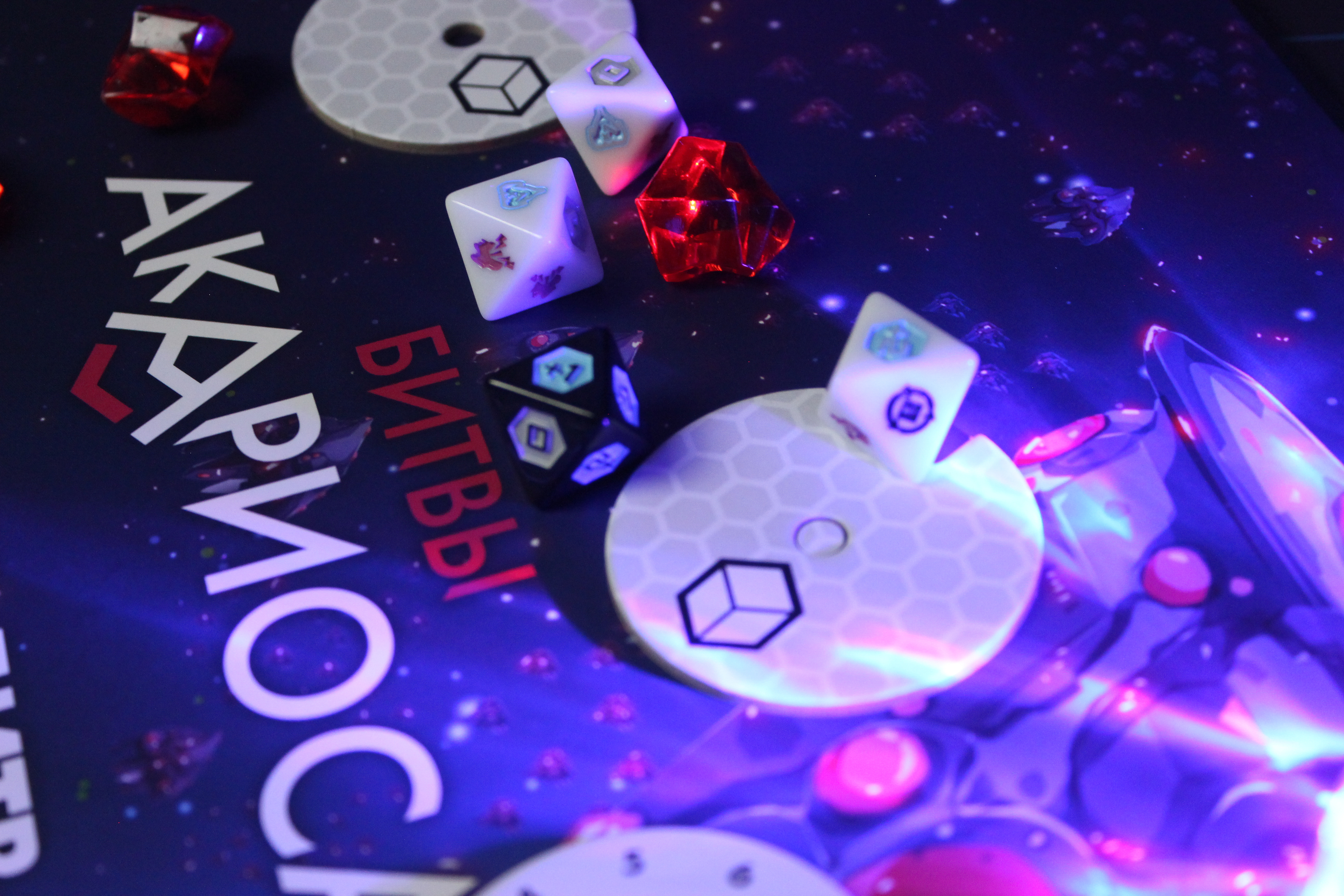 Дополнение «Битвы Акариоса» позволит углубиться в космические сражения, добавив новые механики и возможности. Включает книгу битв, замену колоды модификаторов на кубики и систему улучшений, которые можно приобретать прямо во время боя, добавляя стратегии и тактические нюансы. В каждой битве энергия становится восполняемым ресурсом, который открывает новые возможности для победы.