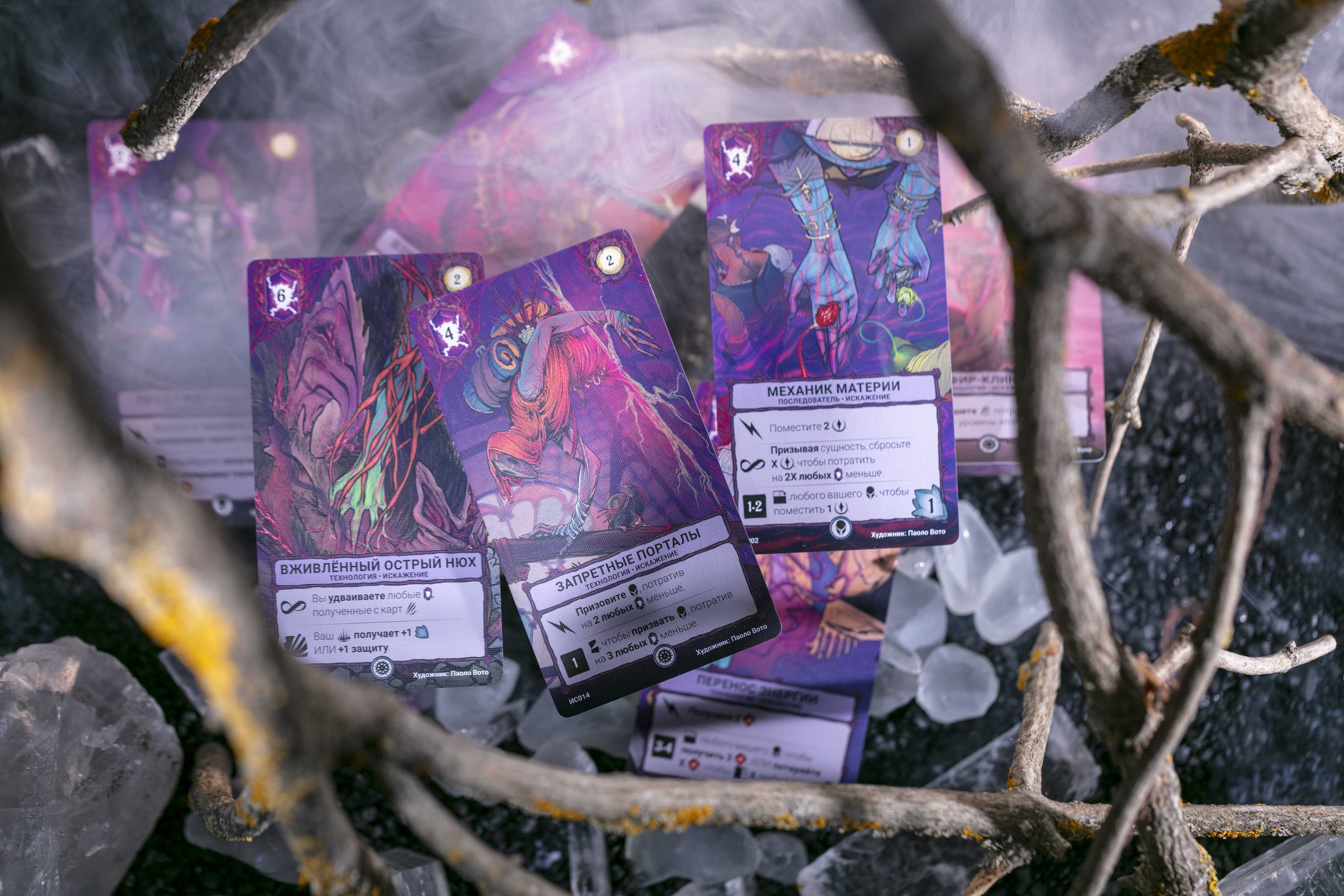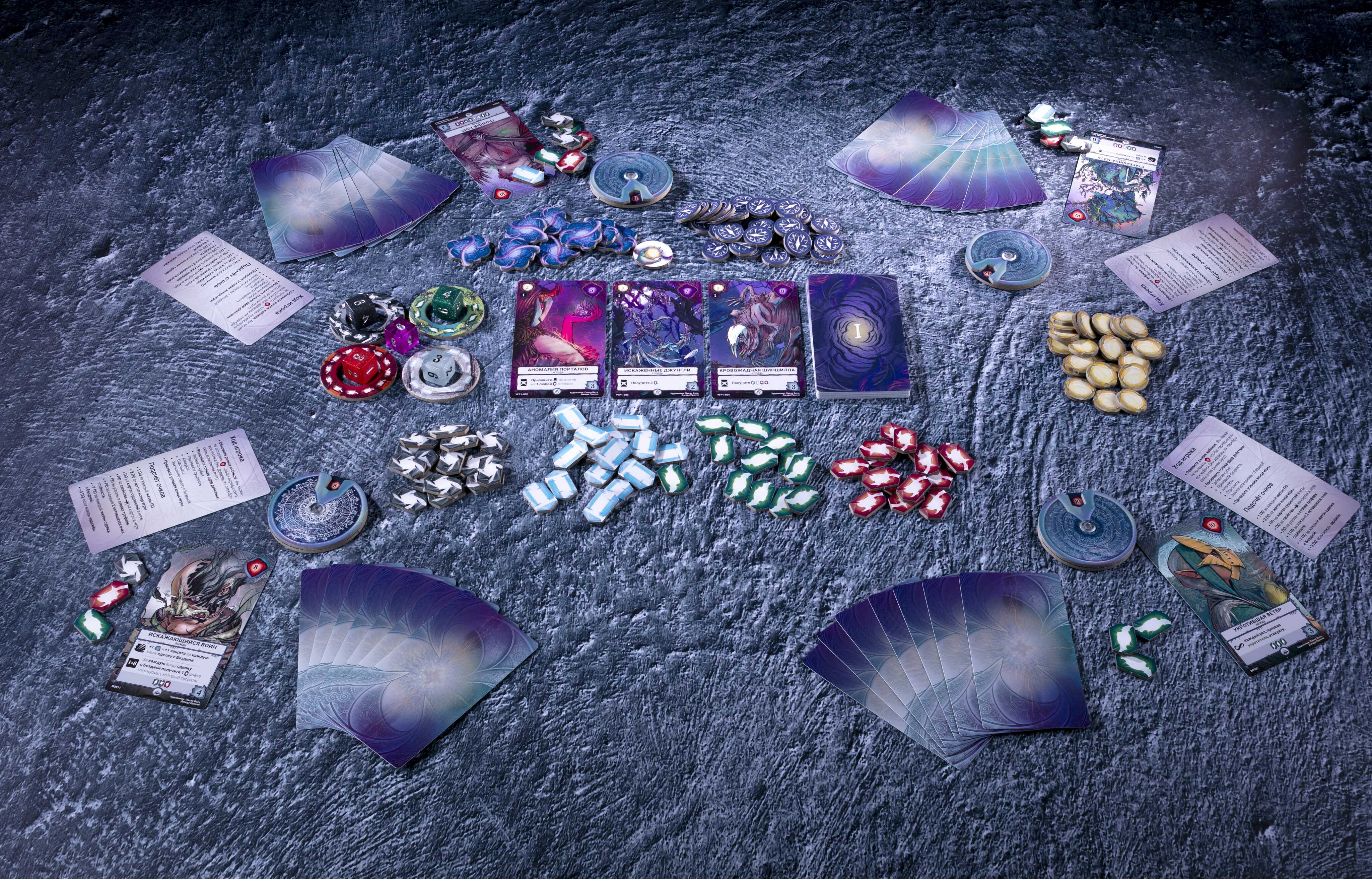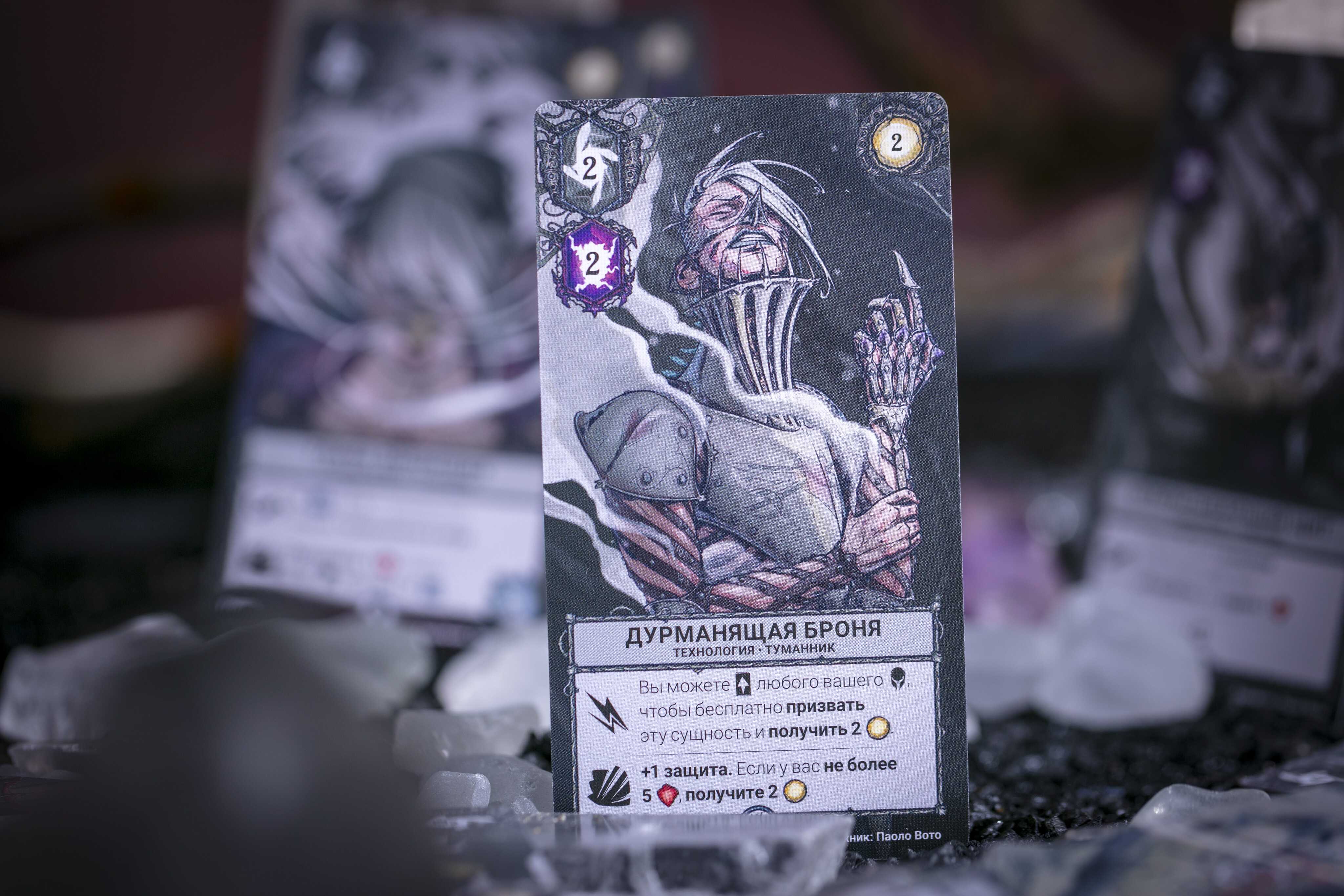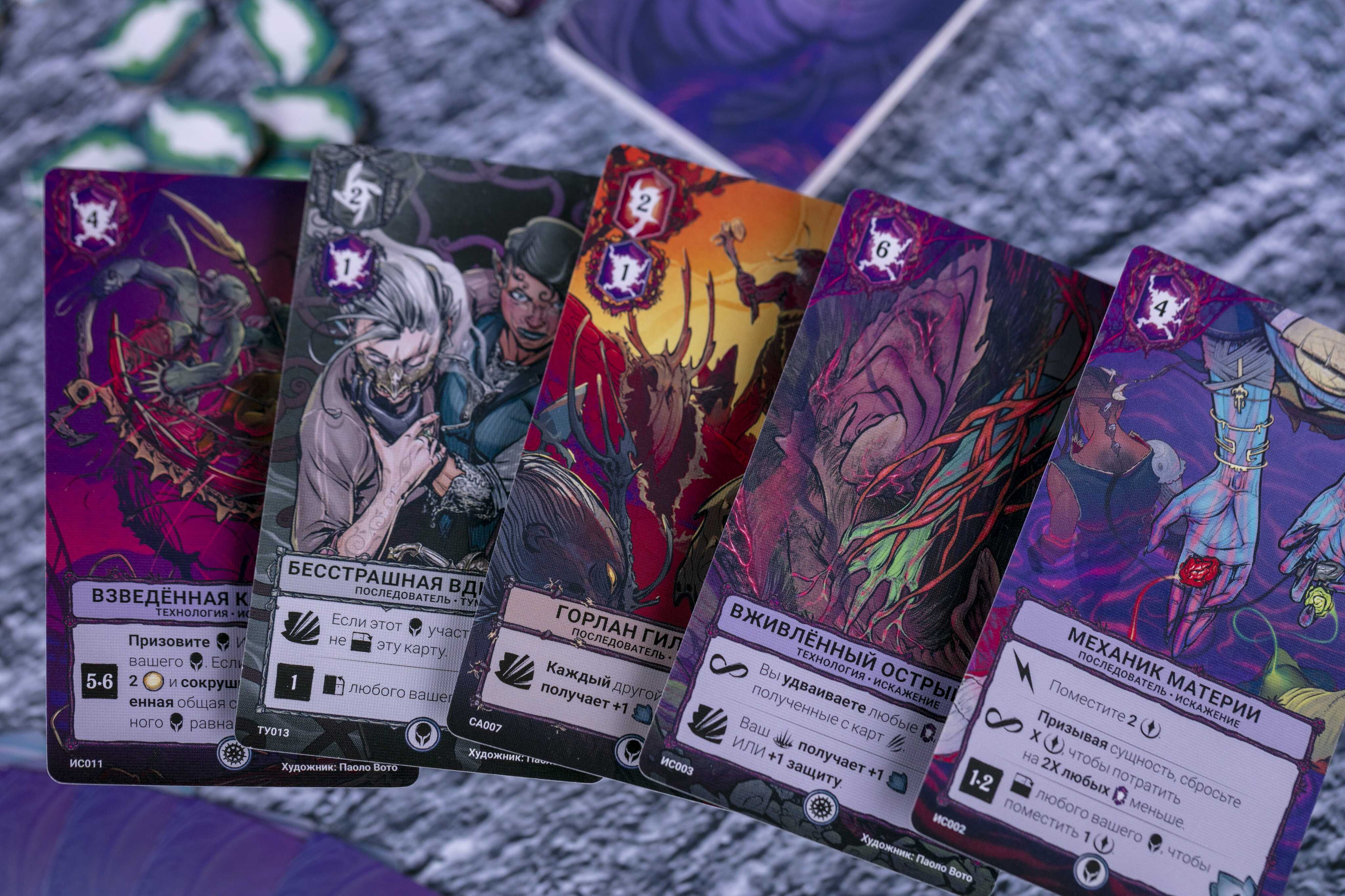 В начале — драфт сущностей и выбор вождя с уникальной способностью: именно они определяют вашу стратегию на всю игру. Для первой партии можно использовать готовые наборы. Затем вы будете по очереди забирать кубики с рынка, получая эфир-камни, разыгрывать карты с эффектами и атаковать угрозы, чтобы получить награды, очки и усиливать свою колоду.