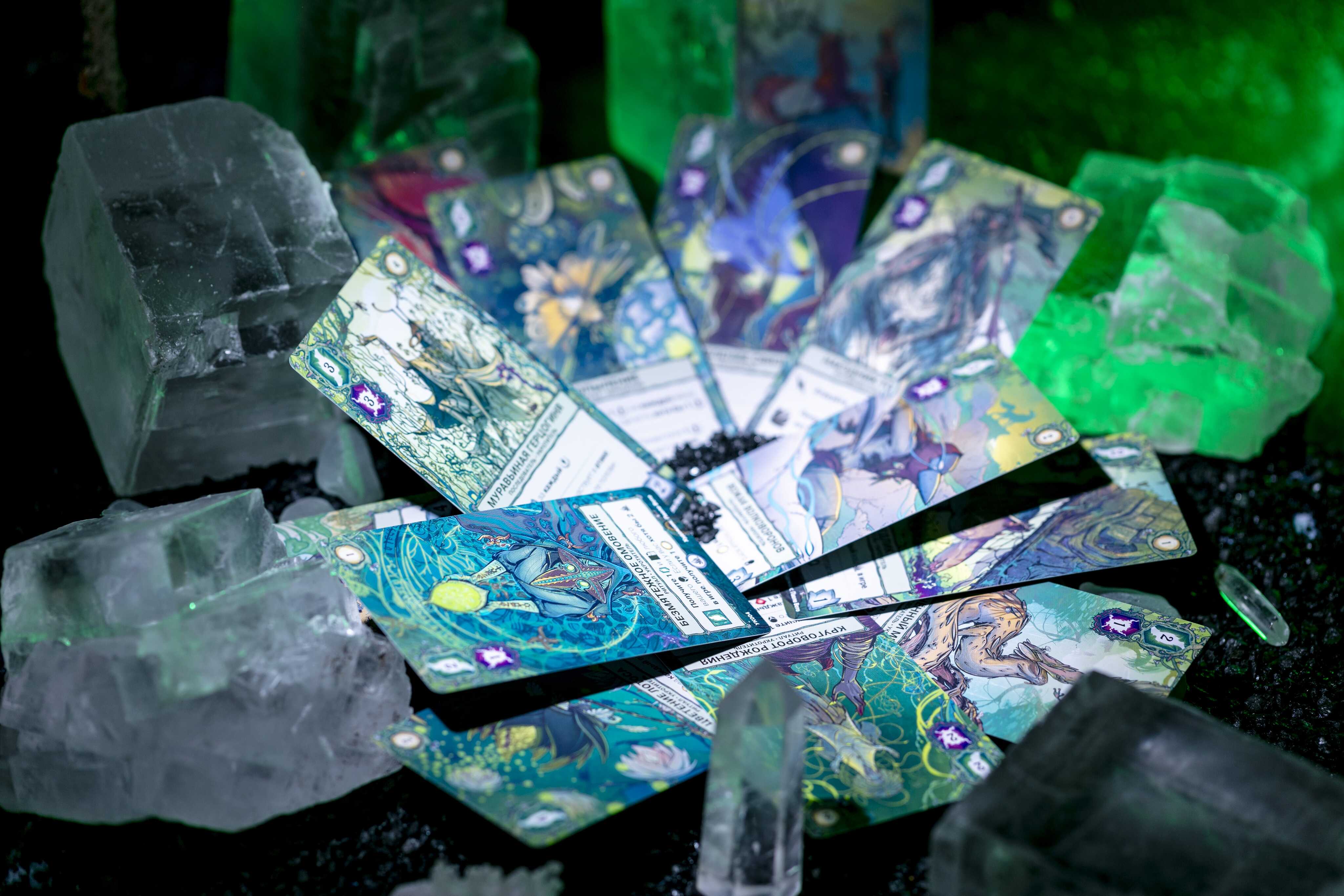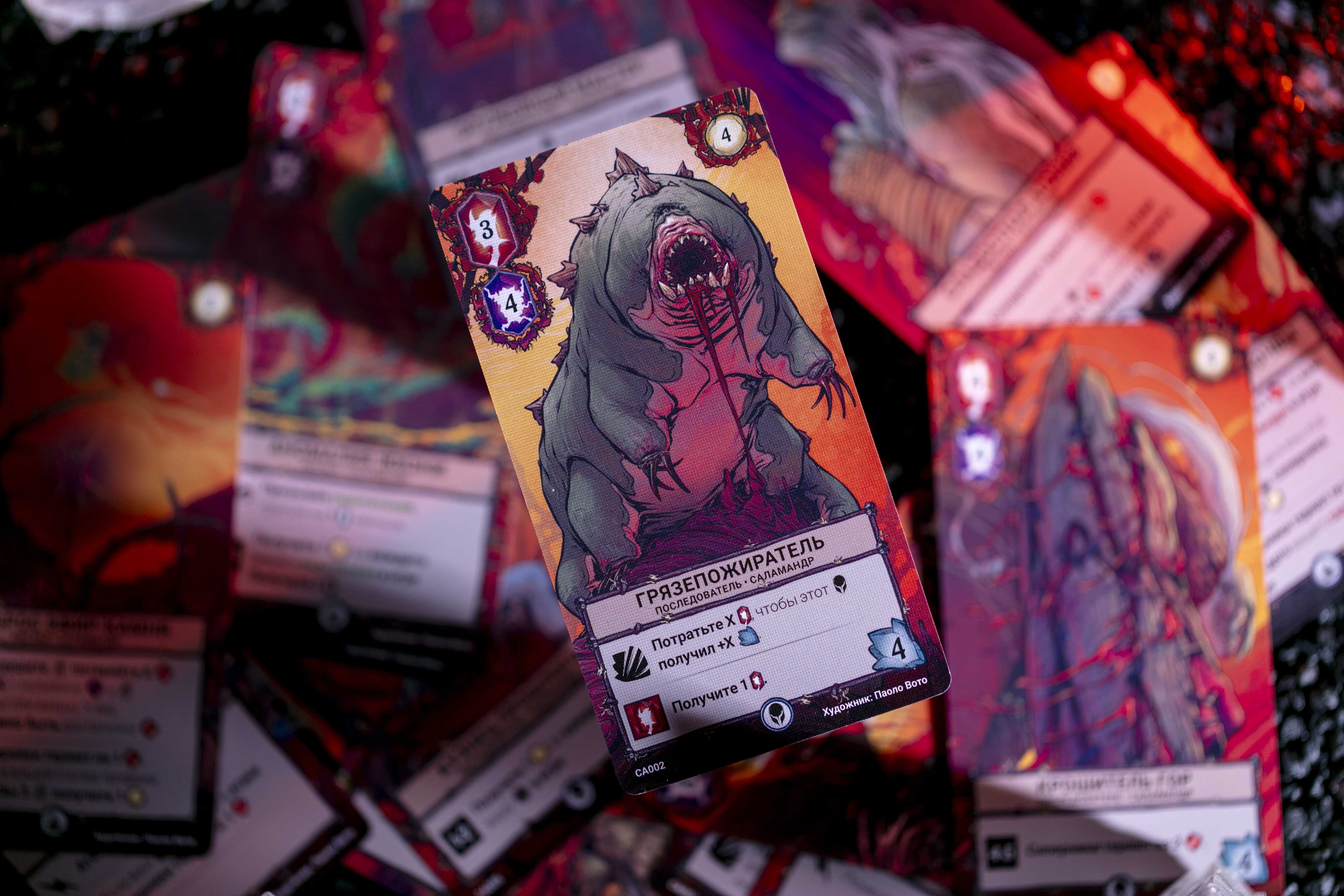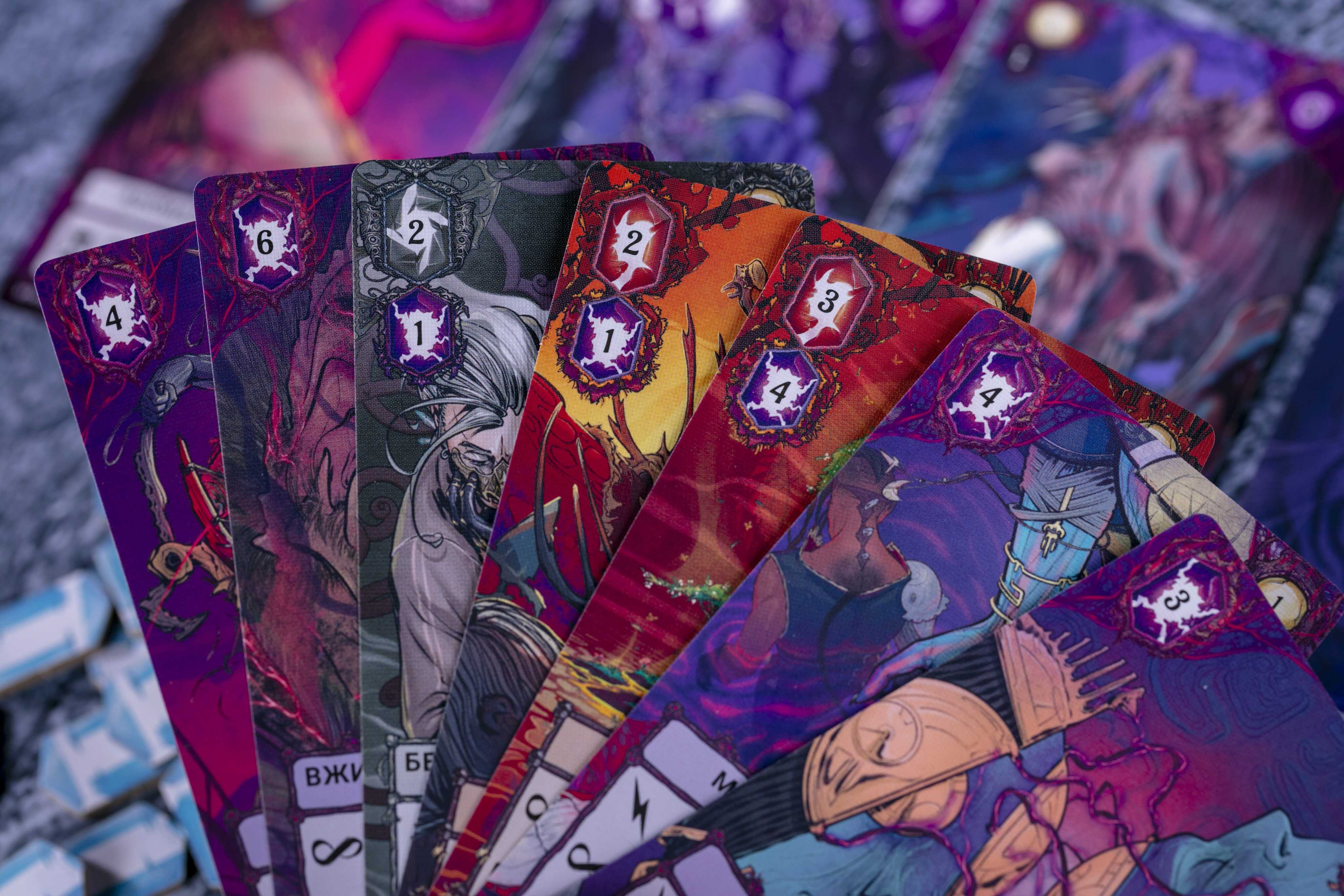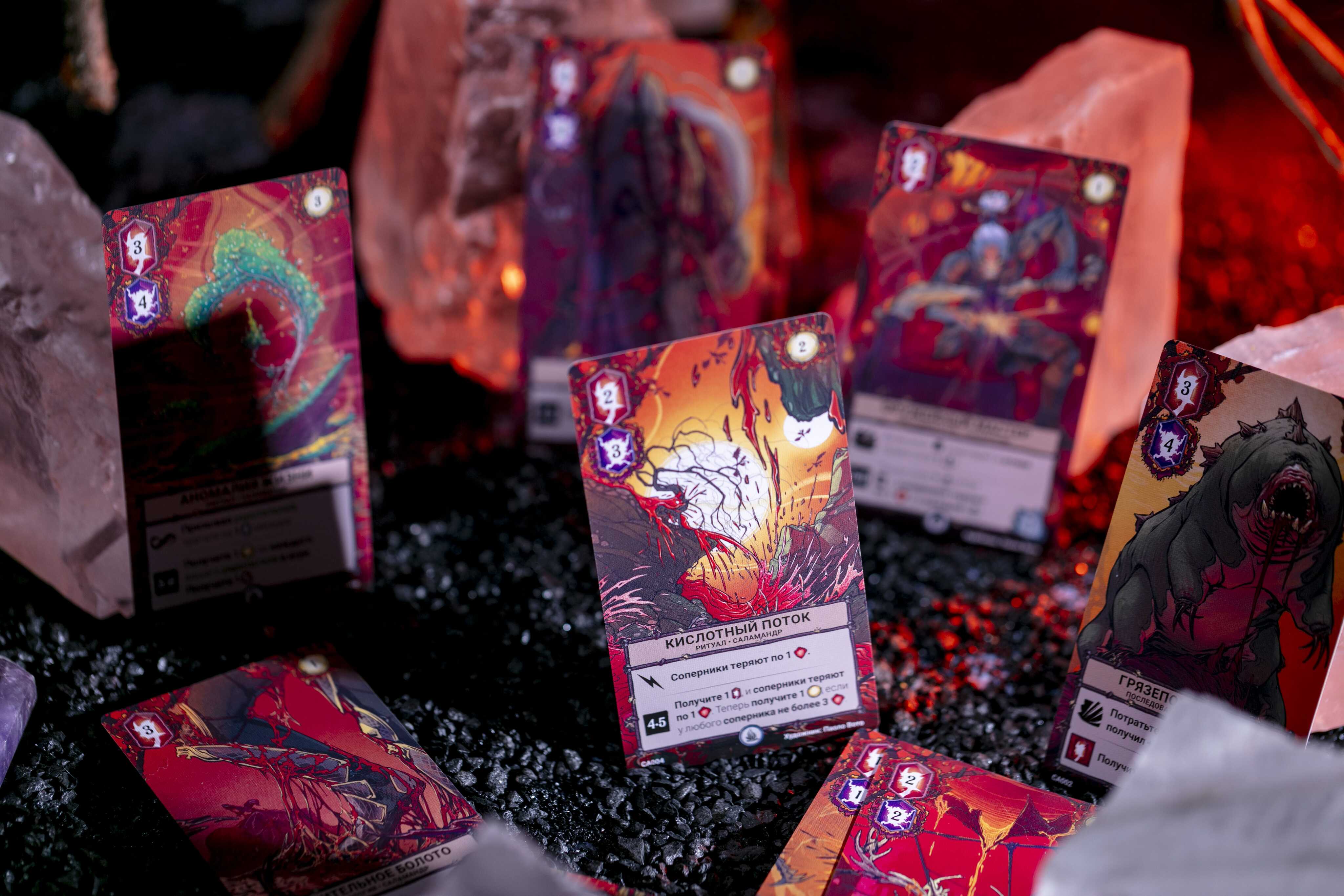 В начале — драфт сущностей и выбор вождя с уникальной способностью: именно они определяют вашу стратегию на всю игру. Для первой партии можно использовать готовые наборы. Затем вы будете по очереди забирать кубики с рынка, получая эфир-камни, разыгрывать карты с эффектами и атаковать угрозы, чтобы получить награды, очки и усиливать свою колоду.