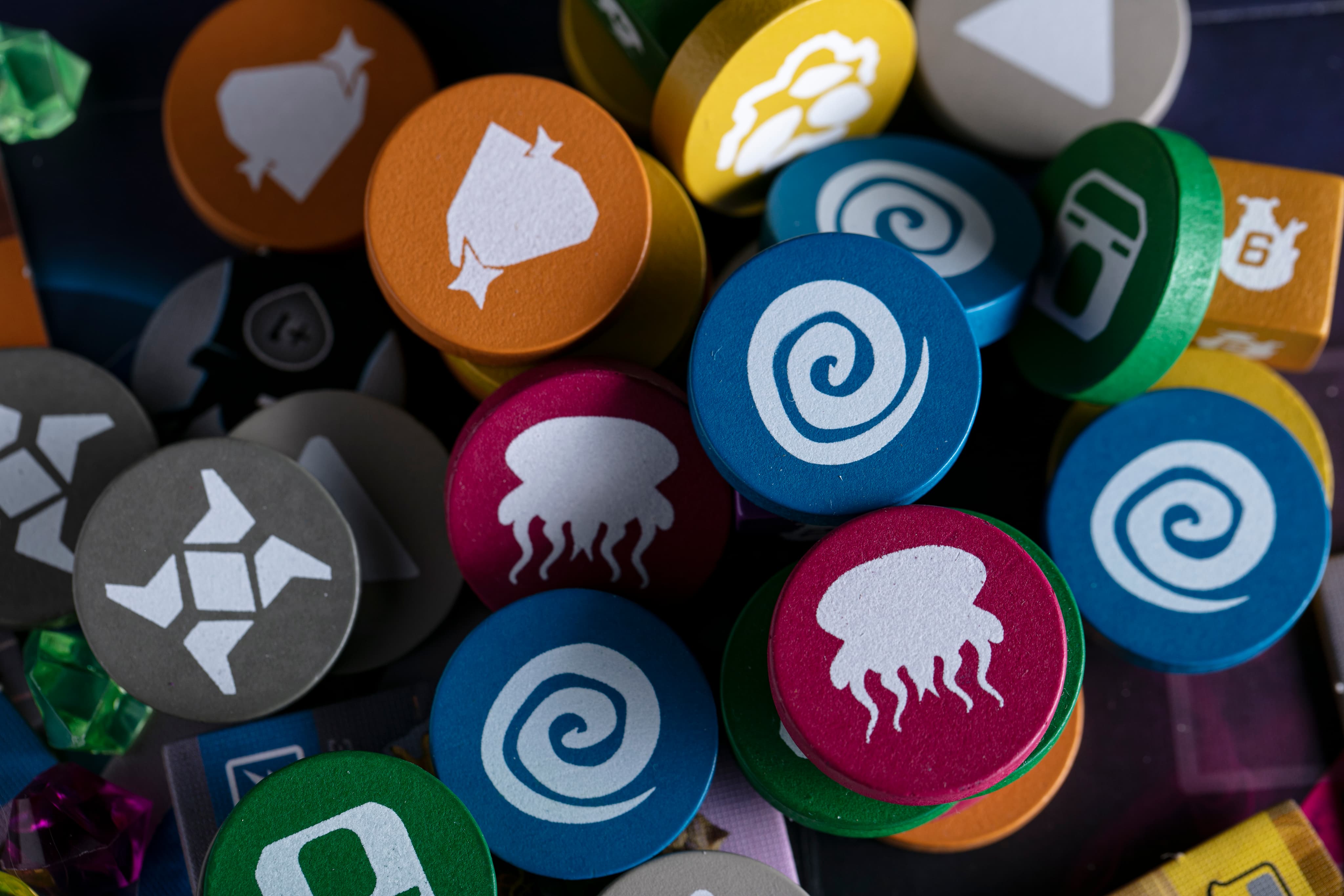 - 76 фишек ресурсов (60 кристаллов и 16 золотых алмазов)