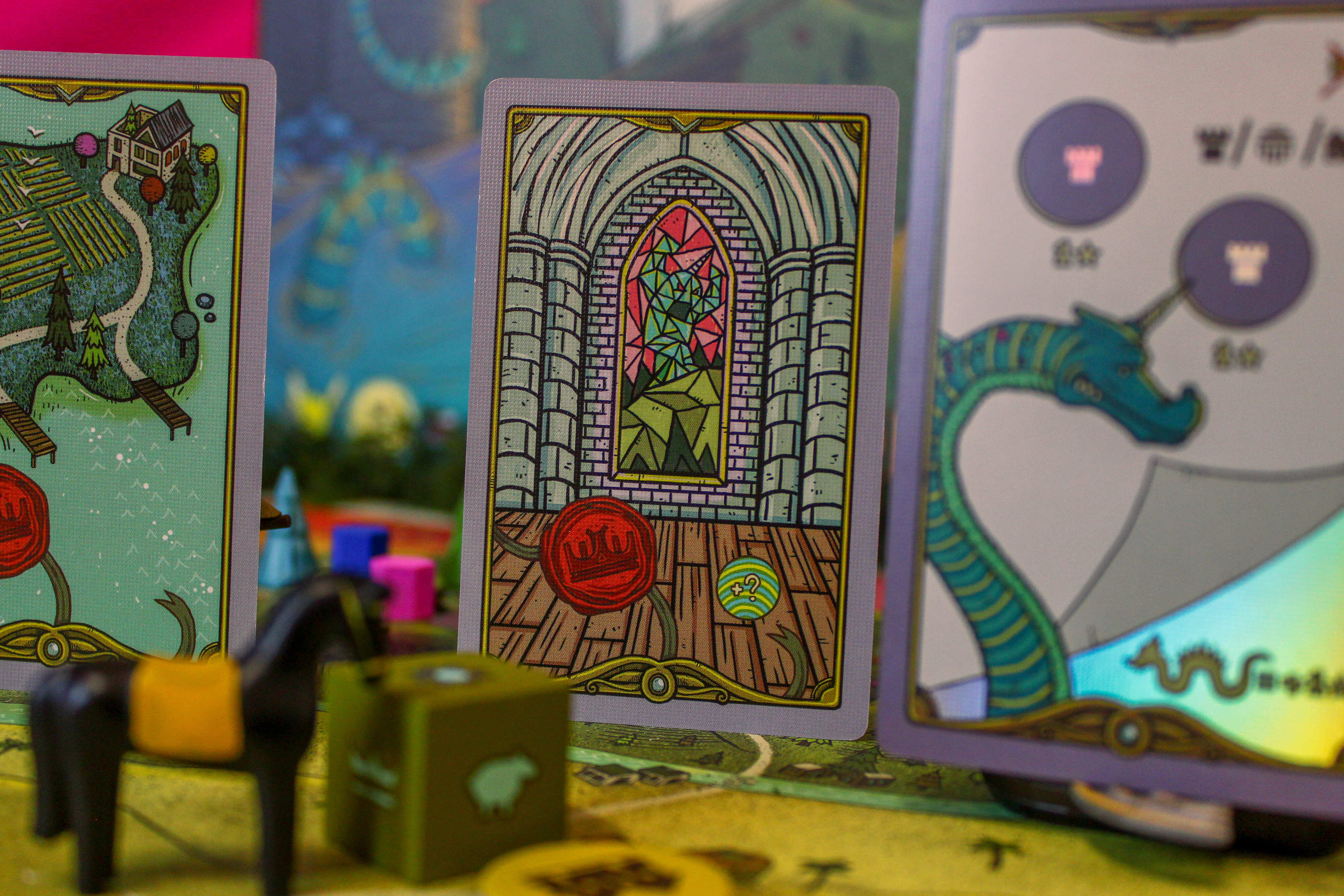 - промокомпоненты (наборы промокарт №1 и №2, металлическая фигурка великана, маркер первого игрока, карта «Мейч Лейнада», карта« Аттикус», карты «Аббатство» и «Одинокий остров», 6 маркеров победных очков, карты «Королевская чаша» и «Королевская печатка», улучшенный походный мешок, 3 жетона шиллингов ценностью «10», королевский справочник),