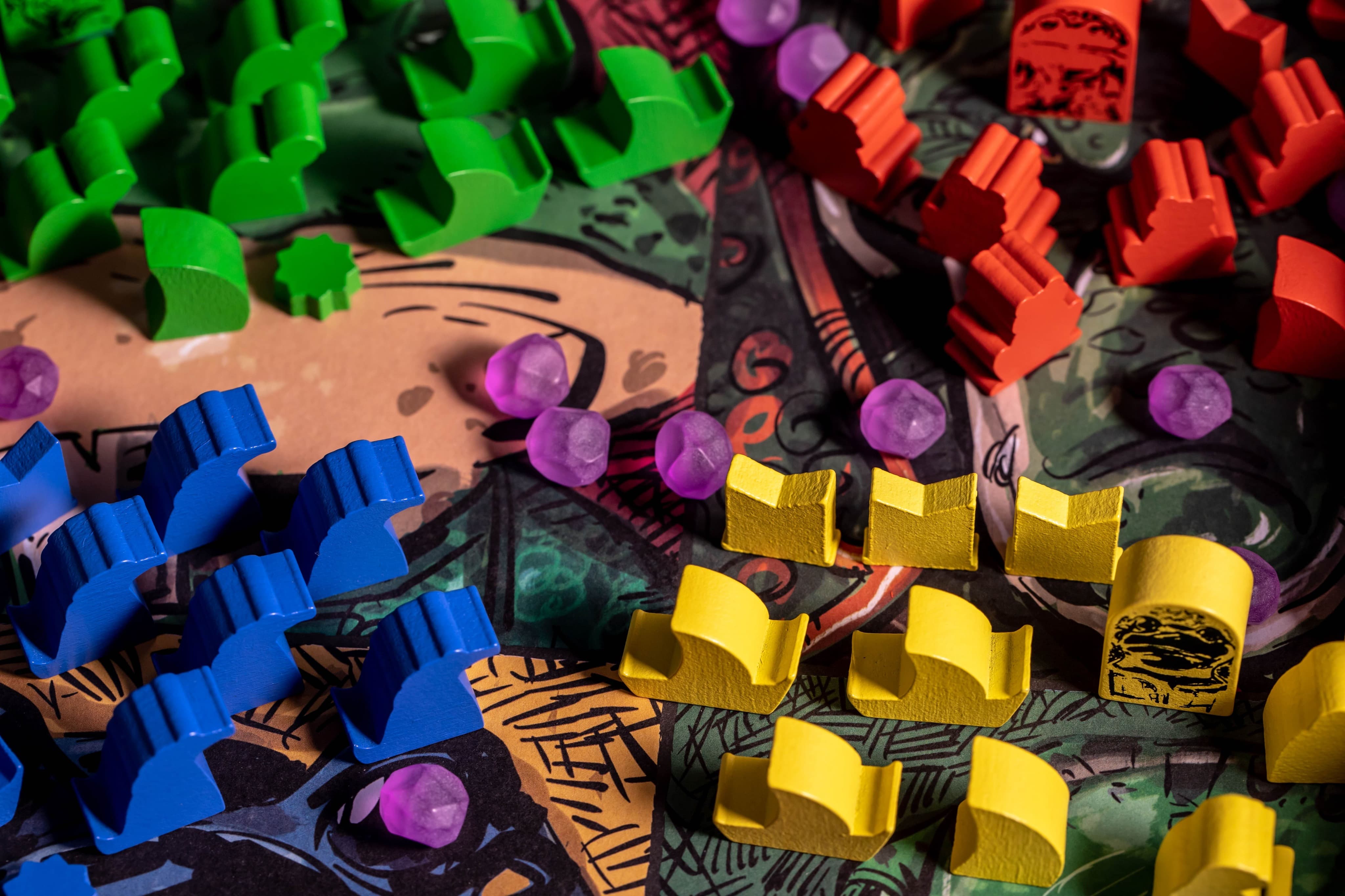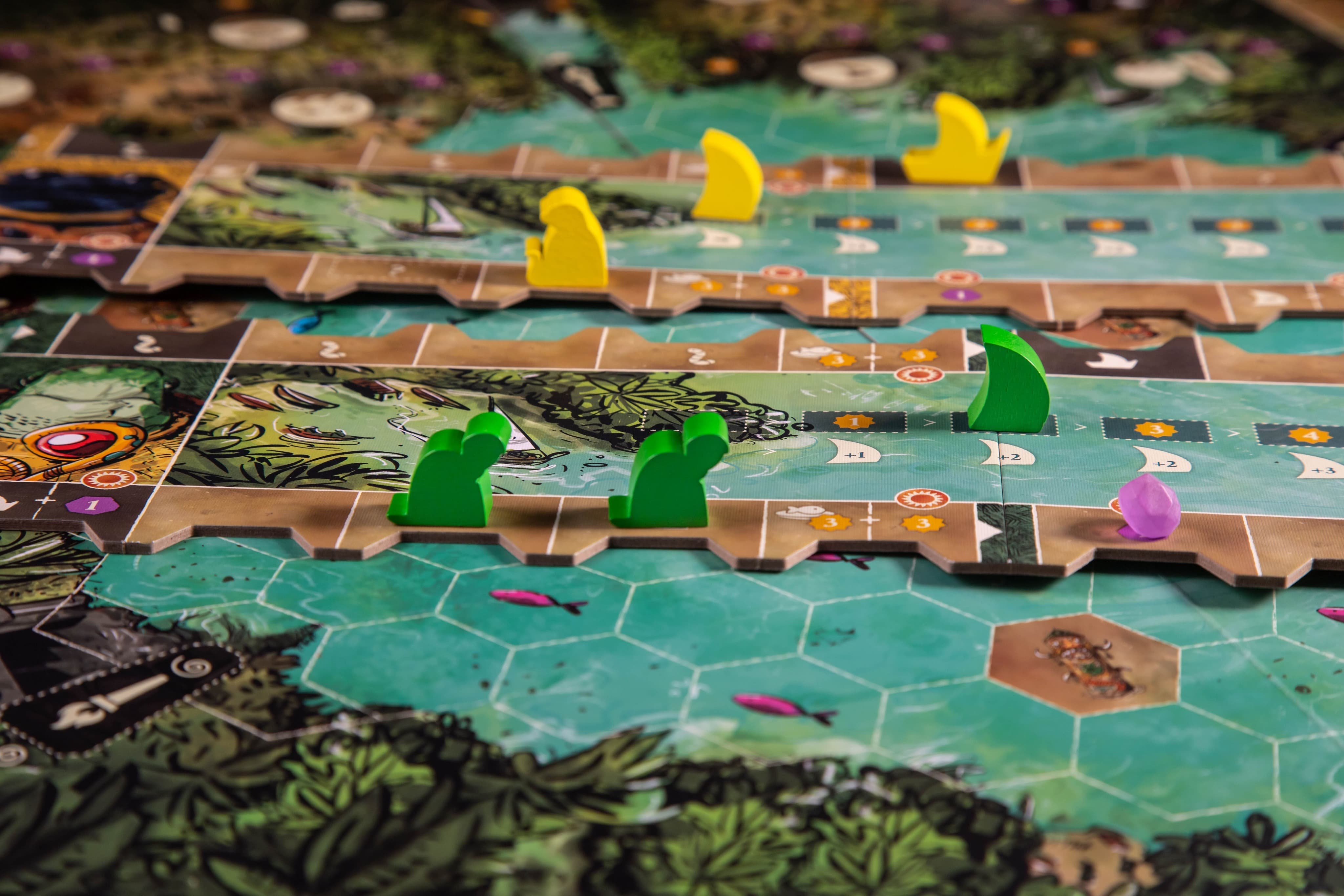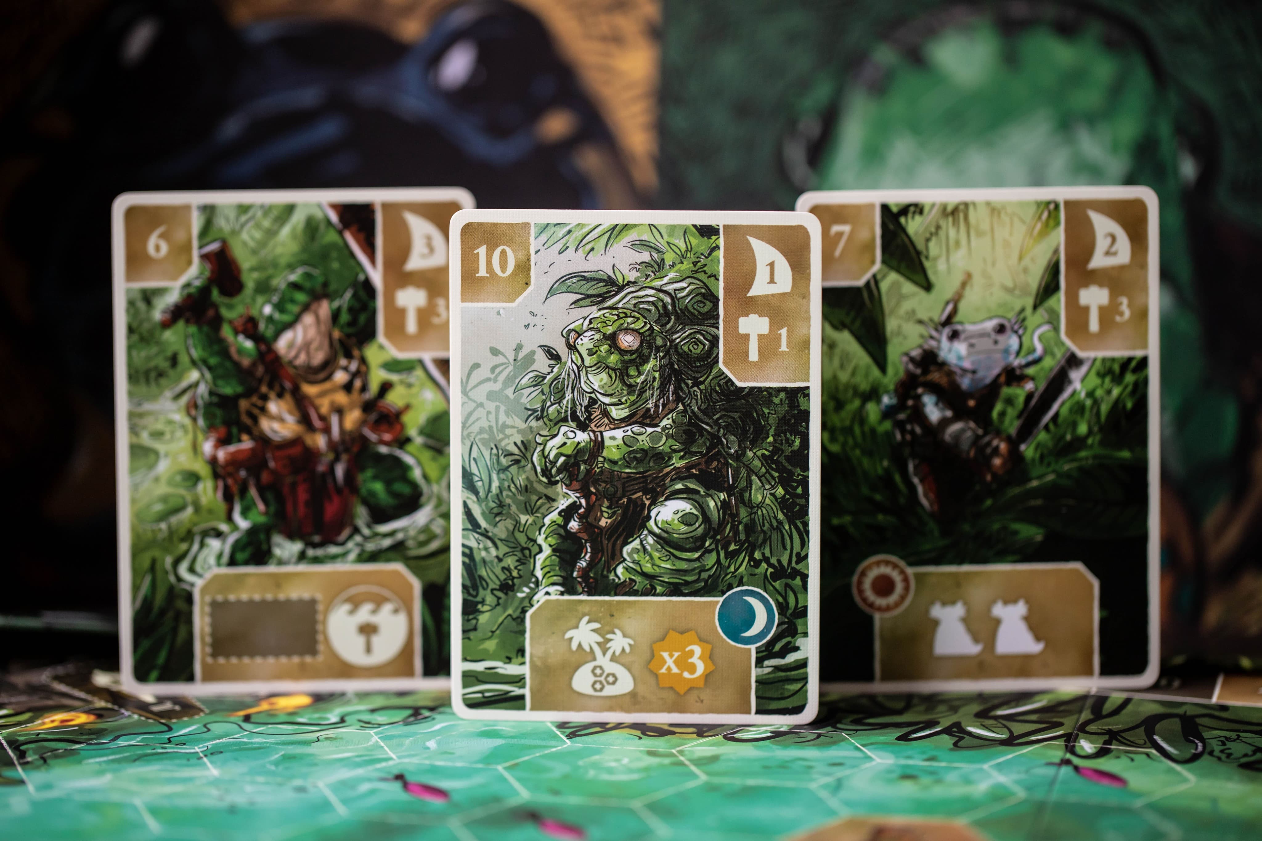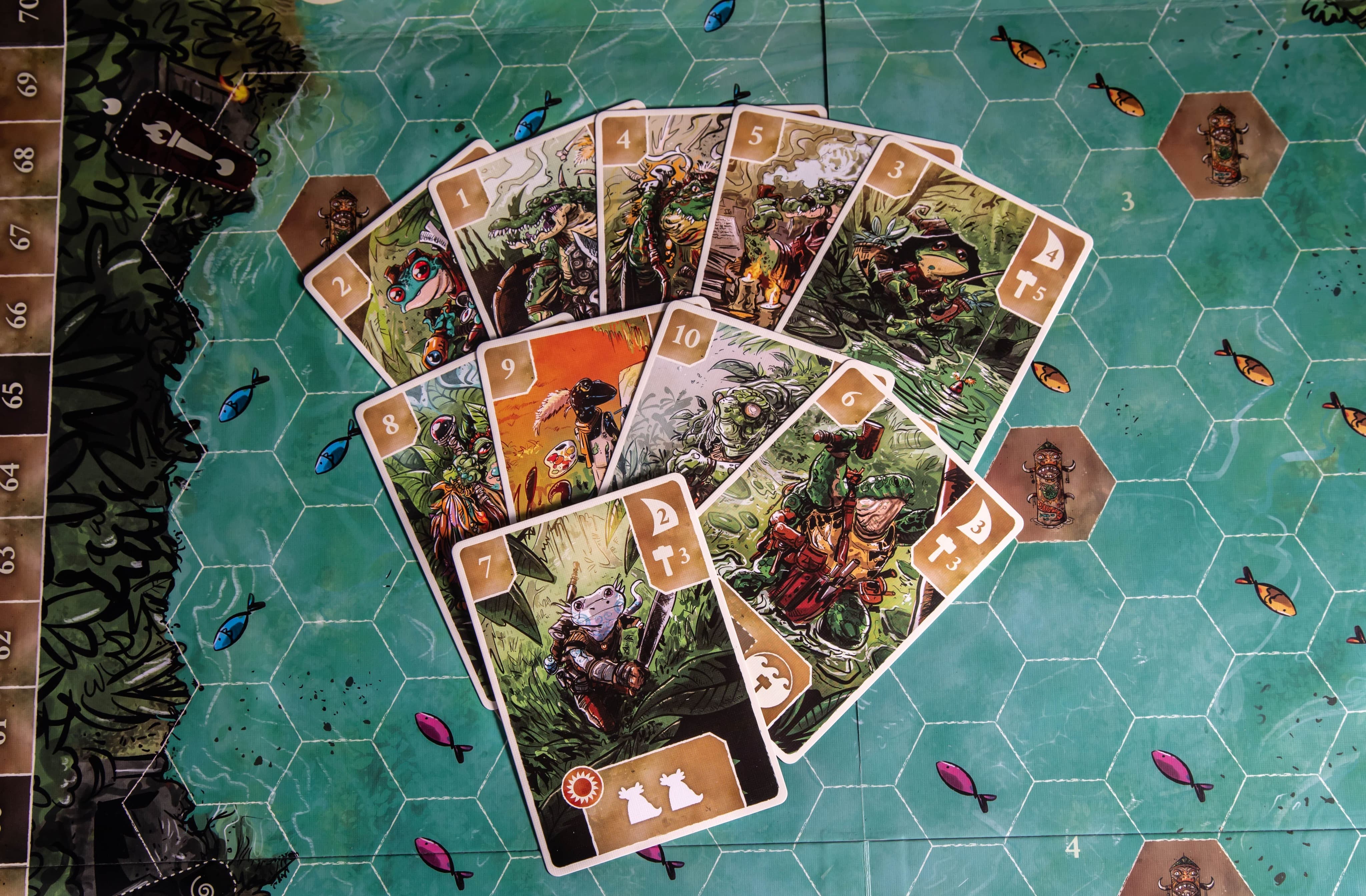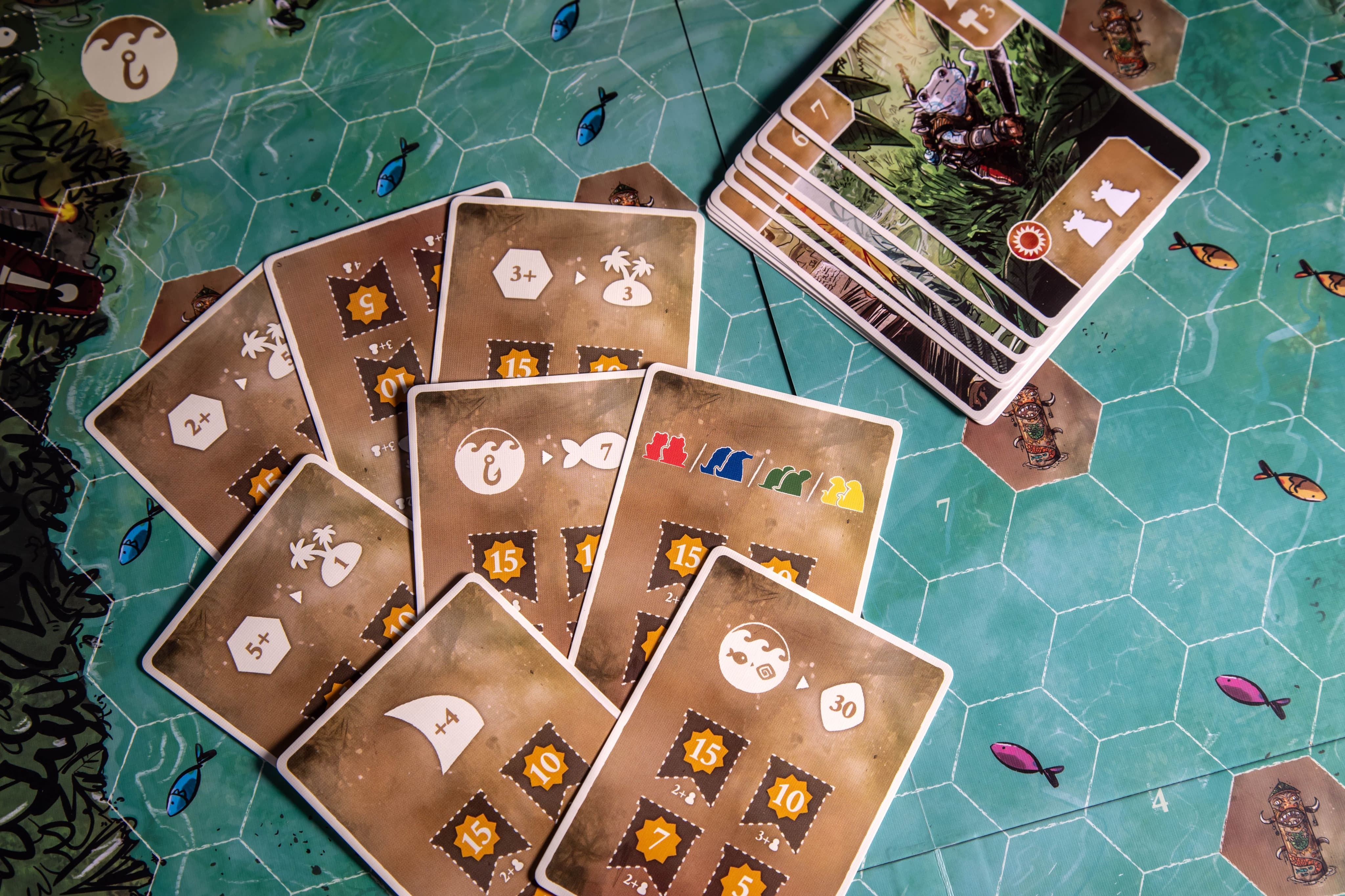 Чтобы вести своё племя к процветанию, придётся продумывать каждый ход. Сначала вы выбираете карту лидера на раунд — она определяет порядок хода, стоимость строительства, дальность плавания и особые способности. Затем строите поселения, ловите рыбу, разыскиваете древние храмы, торгуете и проводите празднества.