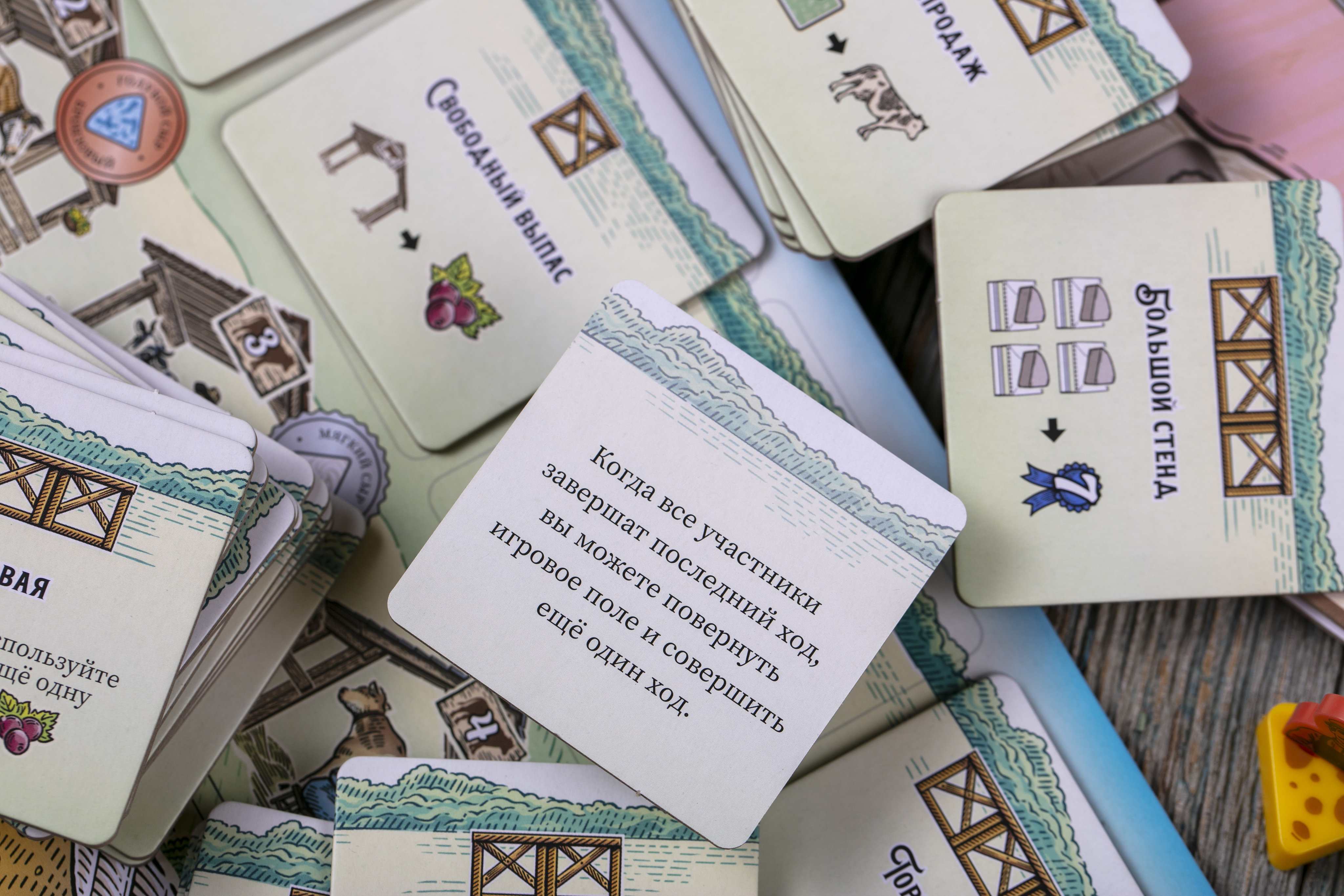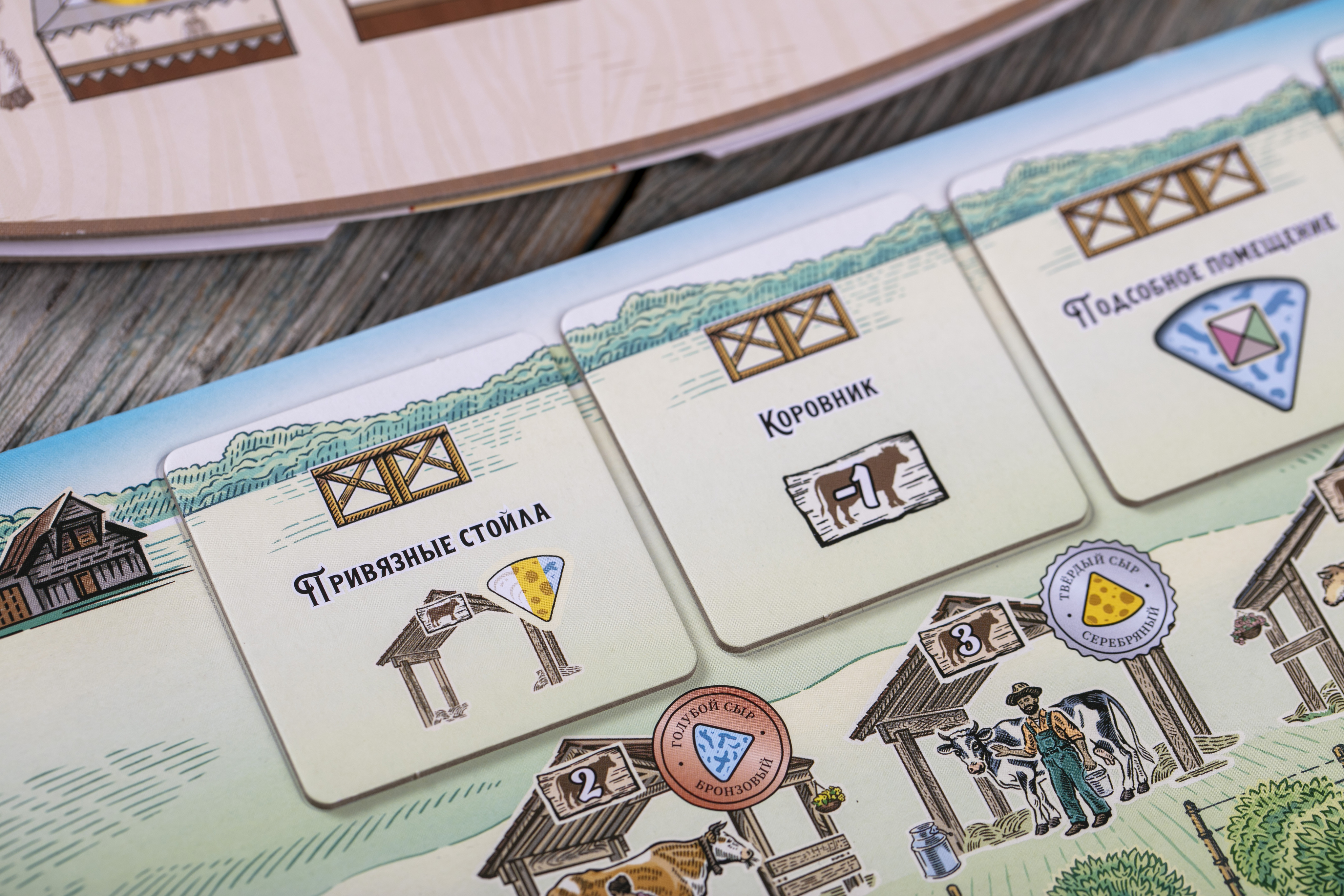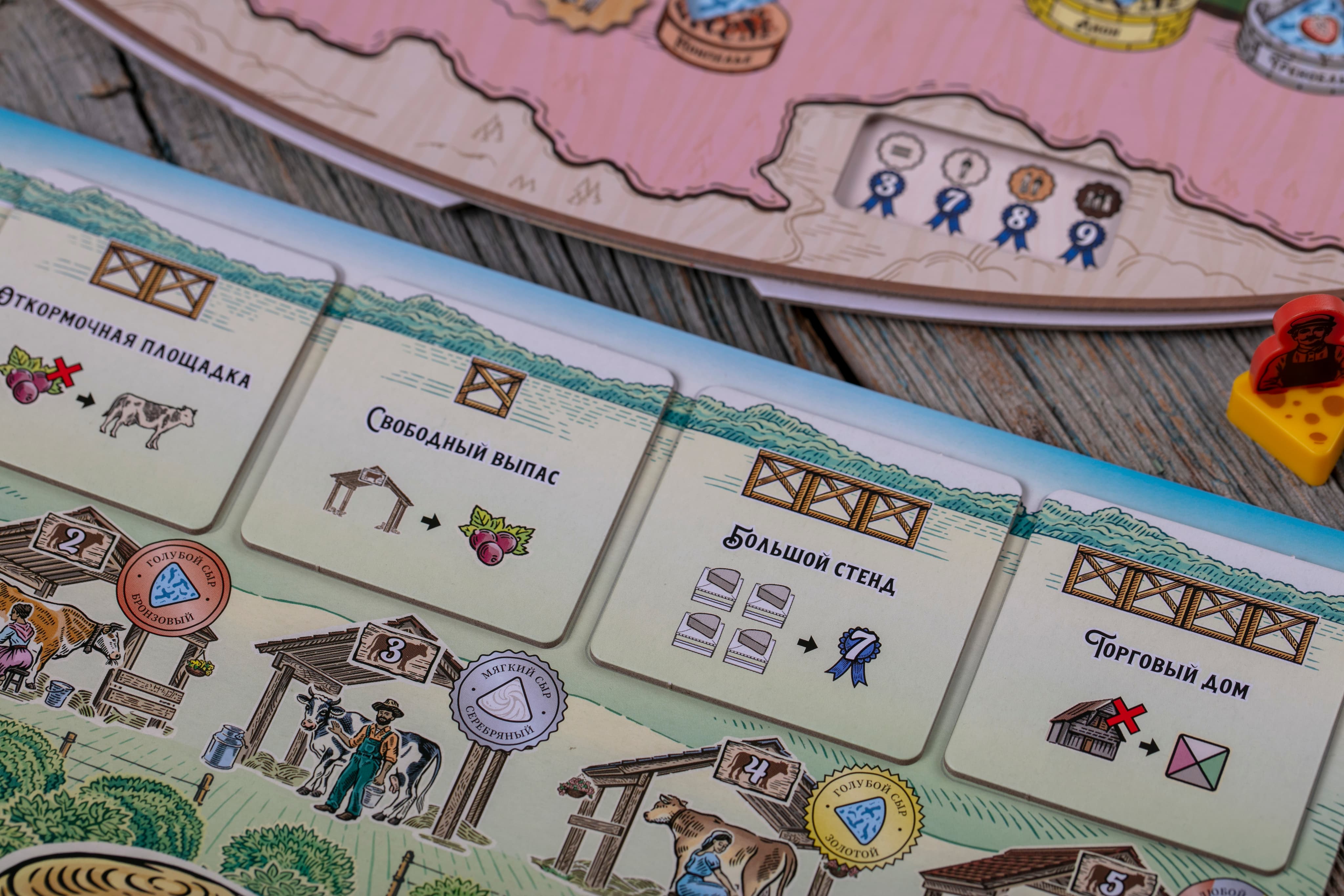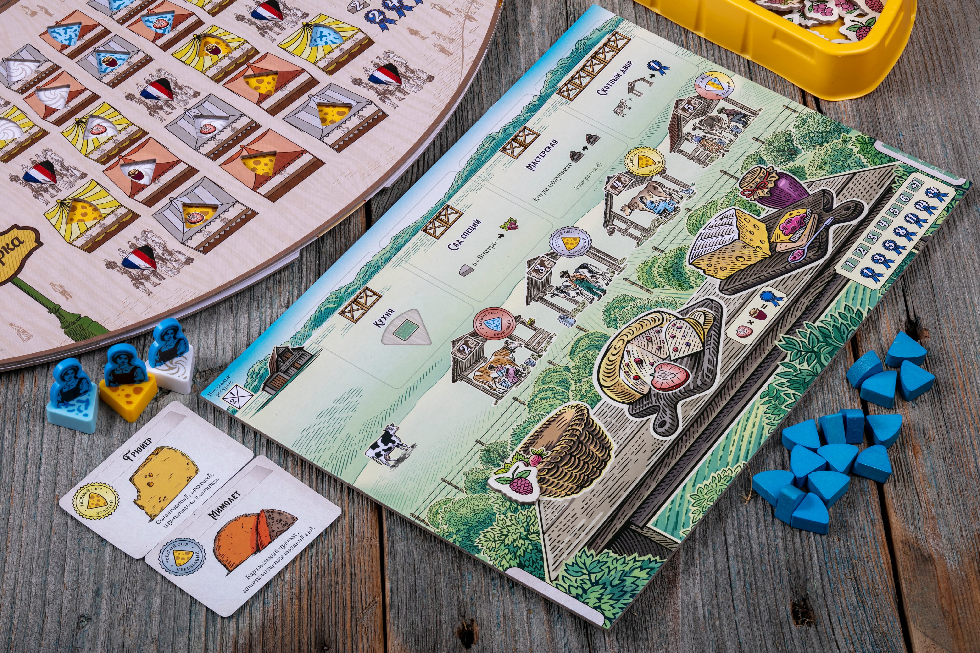 Быстрая стратегия про небольшую живописную сыродельню. Все игроки ходят одновременно, поэтому партии проходят быстро. Игра подойдёт тем, кто любит понятные правила, живой темп и тактильно приятные компоненты.