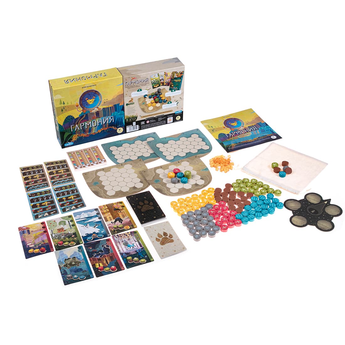 В настольной игре «Гармония» вы будете стремиться создавать ареалы, которые нравятся разным животным, выкладывая на личные планшеты цветные фишки. Из сочетаний фишек появляются горы, леса и поля, а из сочетаний этих ландшафтов — привлекательные места обитания, куда спешат поселиться очаровательные фенеки, юркие ящерицы и другие удивительные зверушки.