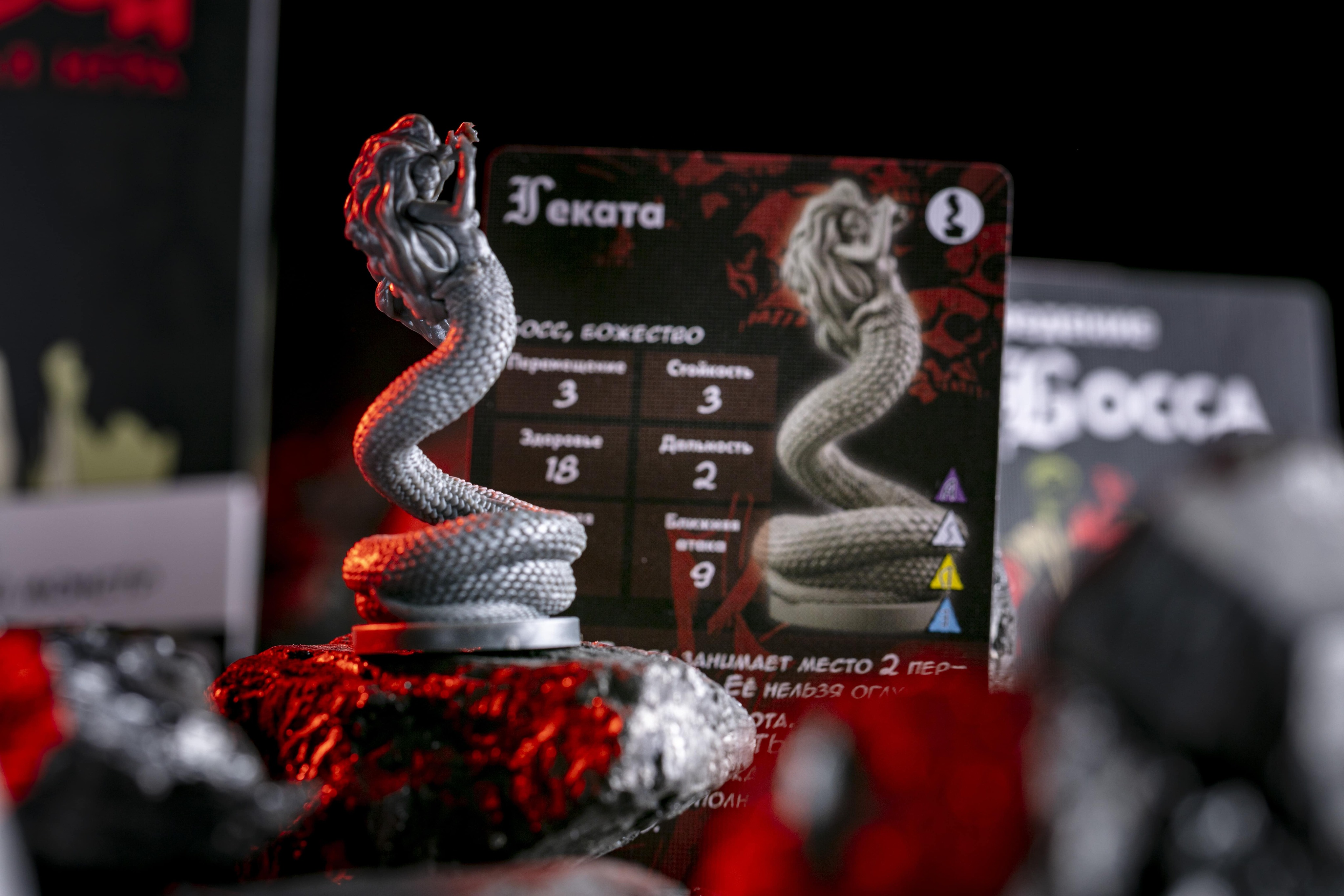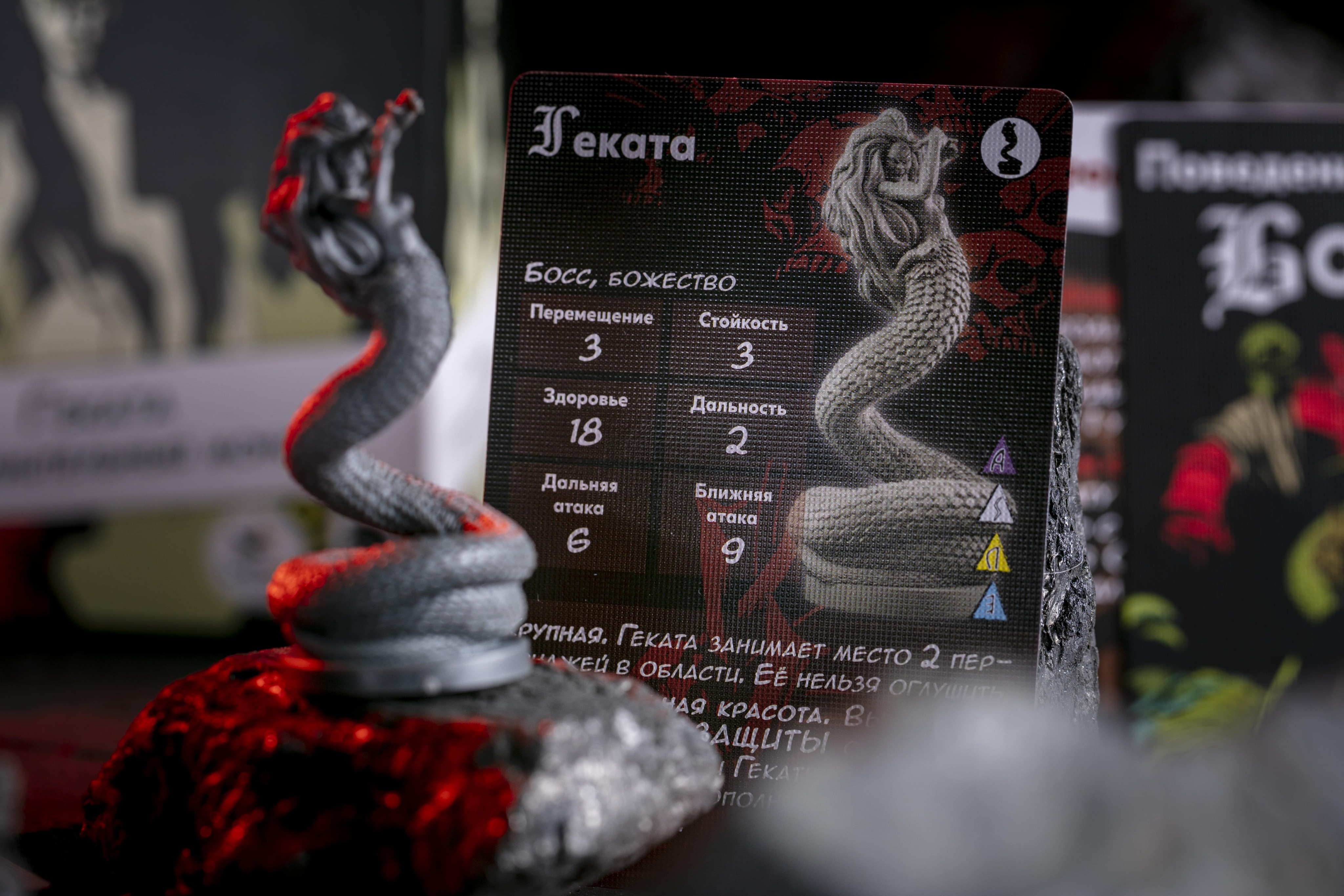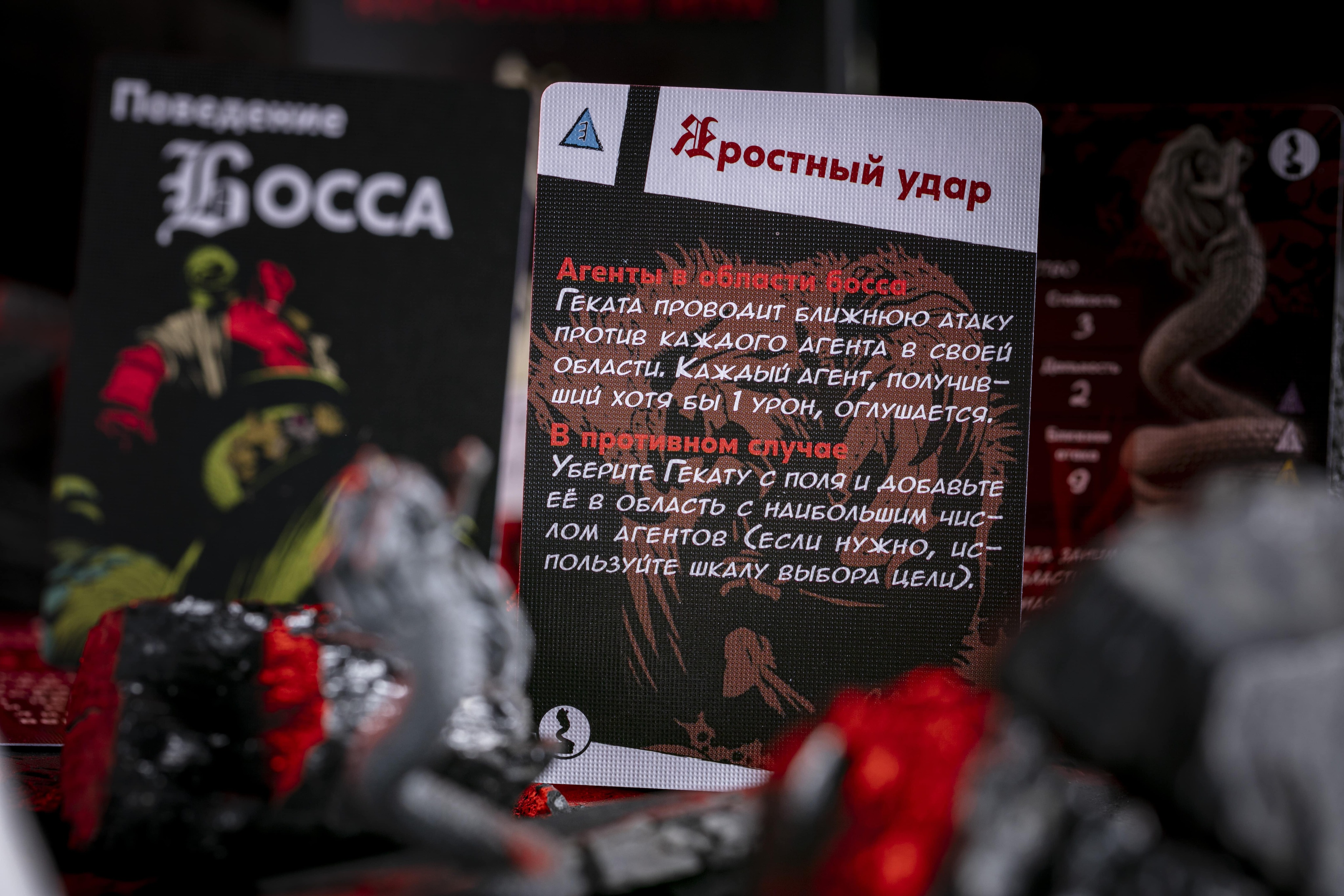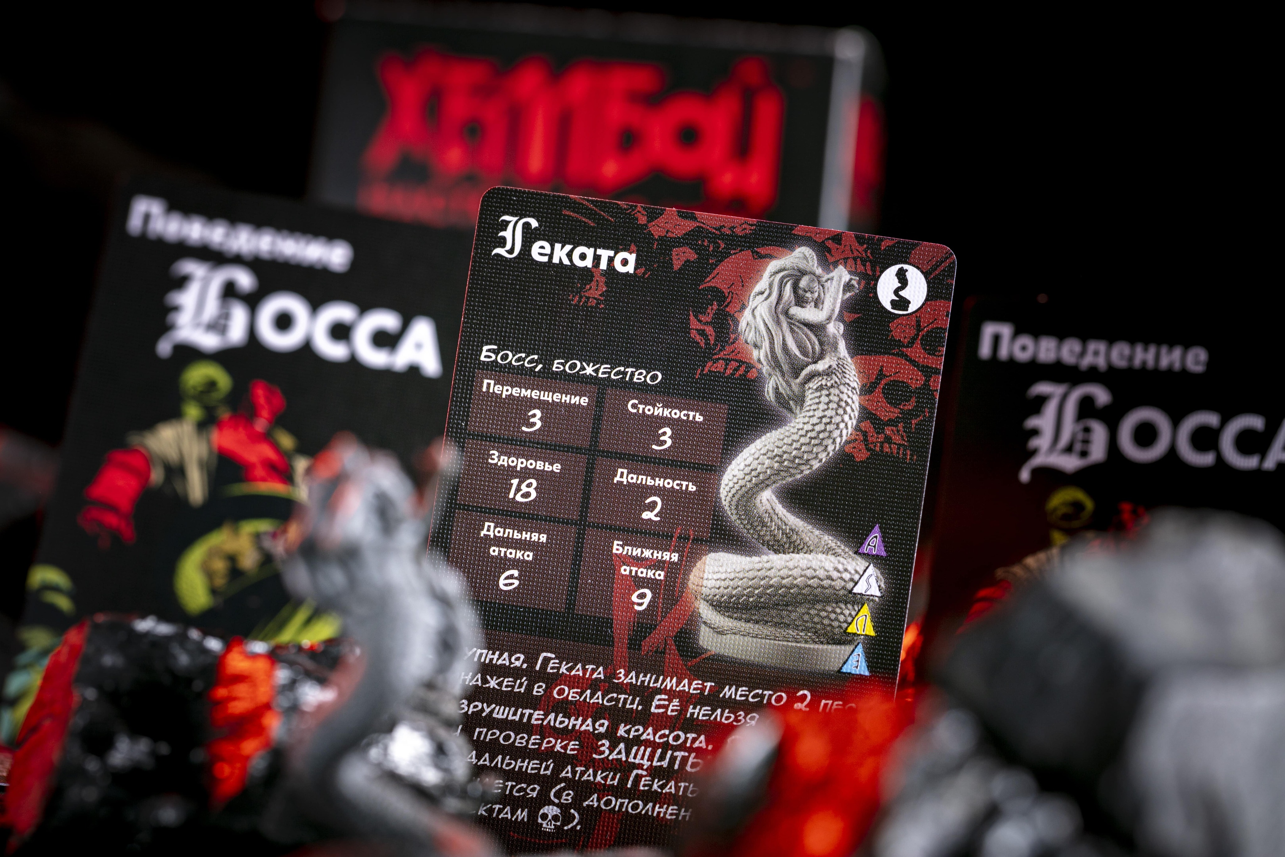 Геката обладает «Разрушительной красотой»: если агент при проверке защиты выкидывает череп, то в дополнение к обычным эффектам, он оглушён, при этом оглушить Гекату благодаря её свойству «Крупная» невозможно. С помощью «Призрачного взрыва» богиня ведьм провоцирует агентов в её области брать следующую карту из колоды, в противном случае, Геката проводит дальнюю атаку и оглушает цель. «Яростным ударом» она проводит атаку по всем агентам в своей области, оглушая каждого, кто получил хотя бы один урон. Если же в области с Гекатой нет агентов, она немедленно перемещается в область с наибольшим количеством агентов. Как и все остальные боссы, Геката следует правилу «Неожиданной угрозы».