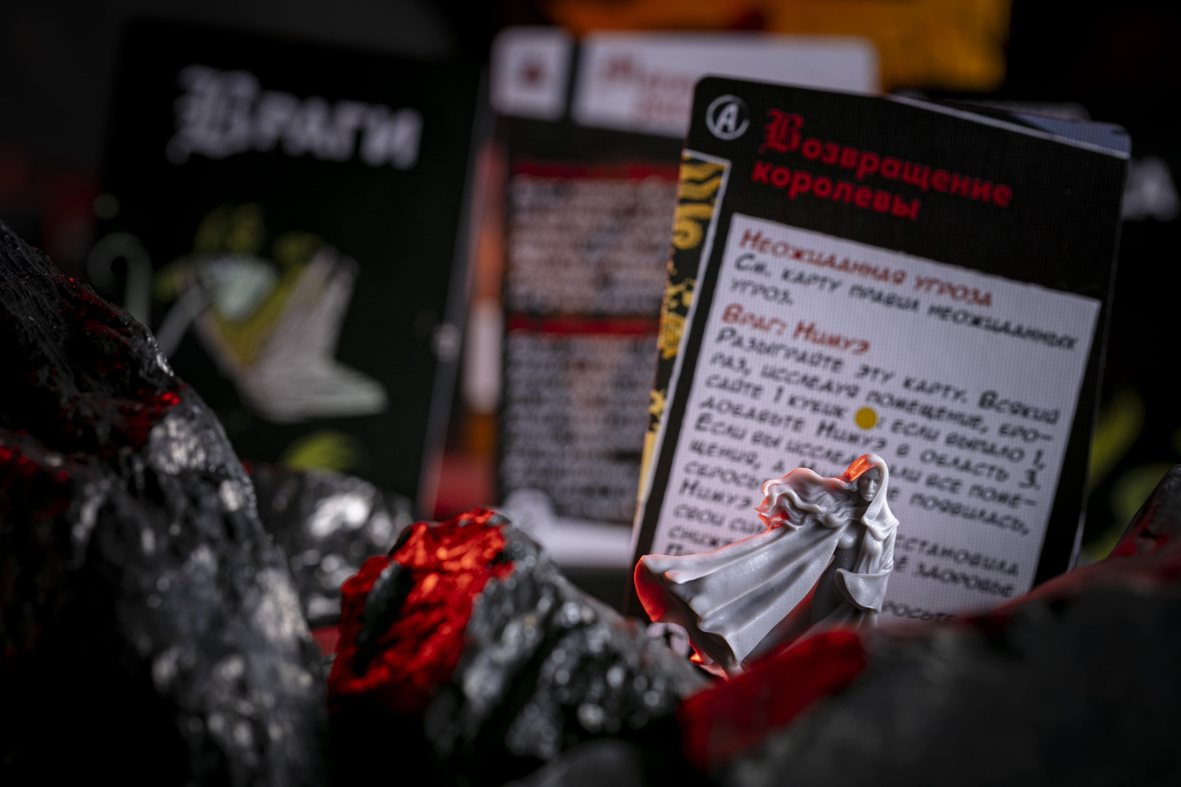 Нимуэ — крайне могущественный босс, способный бросить вызов даже очень опытным агентам. Благодаря «Неожиданной угрозе» она может появиться, когда агенты ещё совсем не готовы ко встрече с ней. Древняя колдунья обладает «Вдохновляющей речью», благодаря которой все приспешники в её помещении активируются дважды за раунд! Обладая знаниями самого великого Мерлина, она может находить себе новый сосуд при потере половины своего здоровья. В этом случае, Нимуэ может быть заменена на чудовищного ребёнка Огдру Джахада. Королева играет со смертными, даря им выбор «Благословением кровавой королевы»: агенты могут взять следующую карту поведения босса или же убрать весь урон с приспешников и увеличить их значение ближней атаки на 2 до конца раунда! «Магическое рассечение» наносит весомый урон агентам в области с Нимуэ или в зоне её видимости, вынуждая их тратить фишки действий, чтобы оставаться в строю для борьбы с ней!