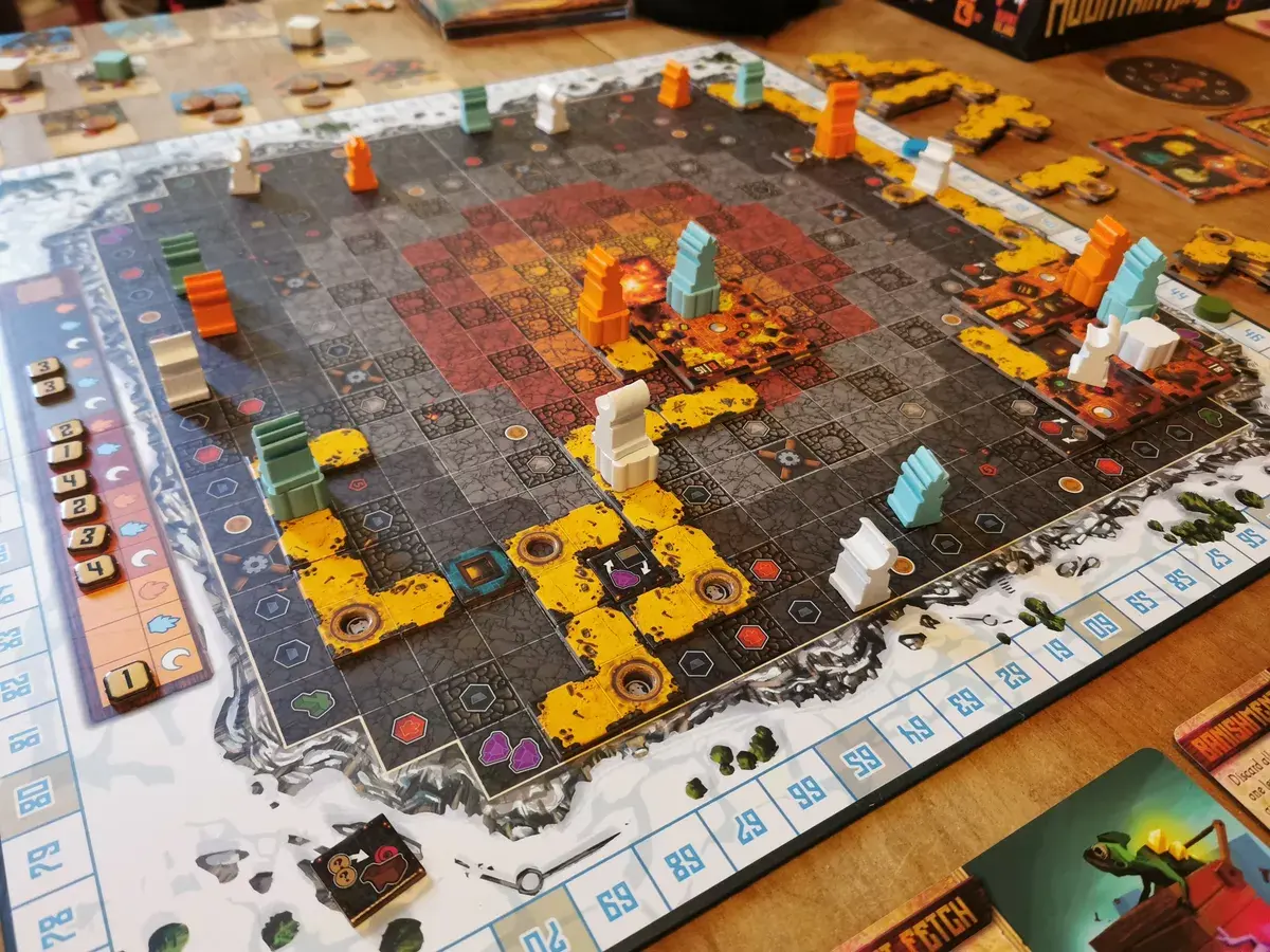 Наняв нового тролля, вы помещаете его над двумя другими троллями, образуя «пирамиду». Новый тролль активируется, получая свои ресурсы, и все тролли под ним тоже активируются и производят ресурсы. Чем больше троллей вы наймёте, тем больше ресурсов будете получать! Только не забывайте, что ключ к победе – это вовремя выполненные действия и тактика, учитывающая действия оппонентов, ведь вы вместе с остальными игроками будете работать на одном и том же поле, пробираясь к центру горы с разных сторон.