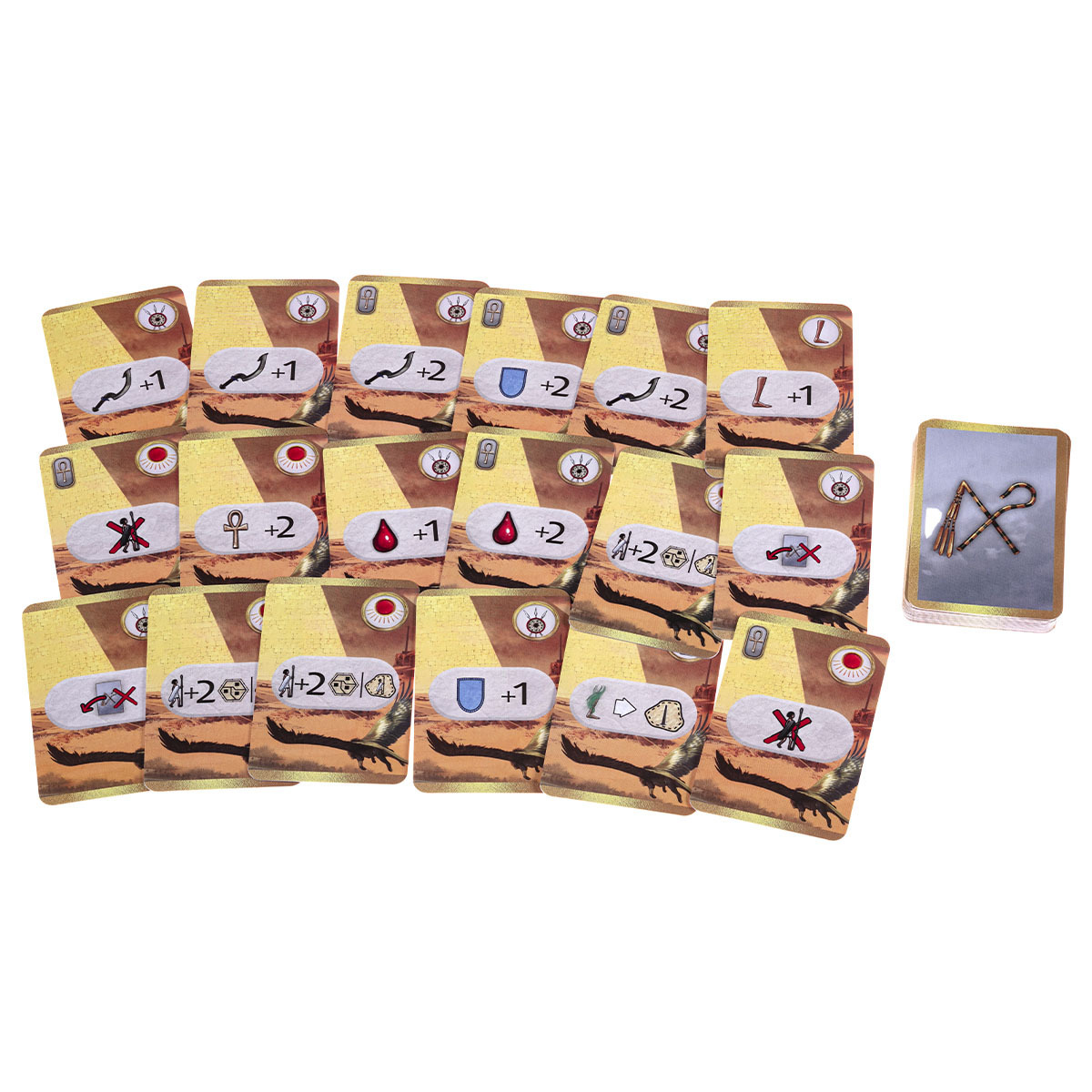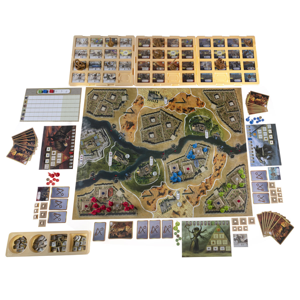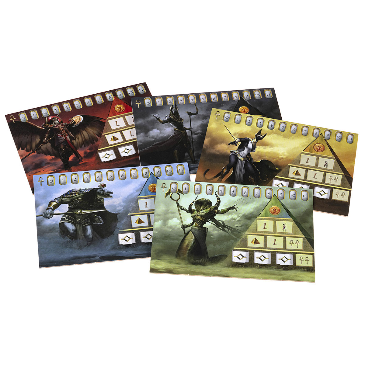В течение игры вы будете строить пирамиды и покупать жетоны способностей — и то и другое приносит постоянные бонусы. Помолившись, будете получать благословение богов. За очки молитвы можно нанимать воинов, а воинов, в свою очередь, перемещать по карте. Во время сражения (которое начинается, как только ваши войска оказываются на одной клетке с войсками противника) вы будете складывать боевую силы воинов с бонусами жетонов способностей, а также с бонусами разыгранной из руки карты. Основная цель — накопить максимальное количество очков славы. Получить их можно в сражениях, при покупке определённых жетонов и, конечно, за контроль территорий.