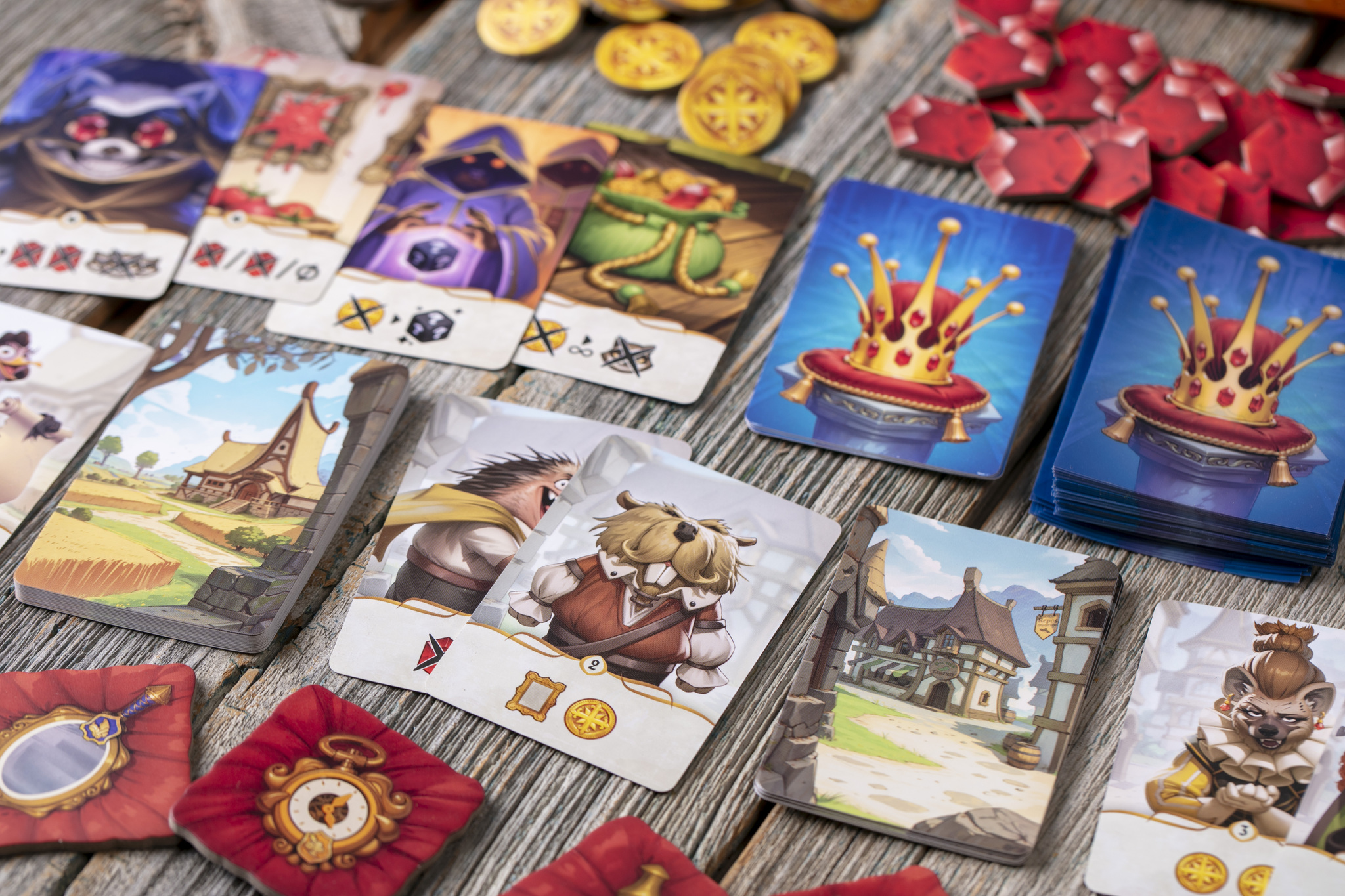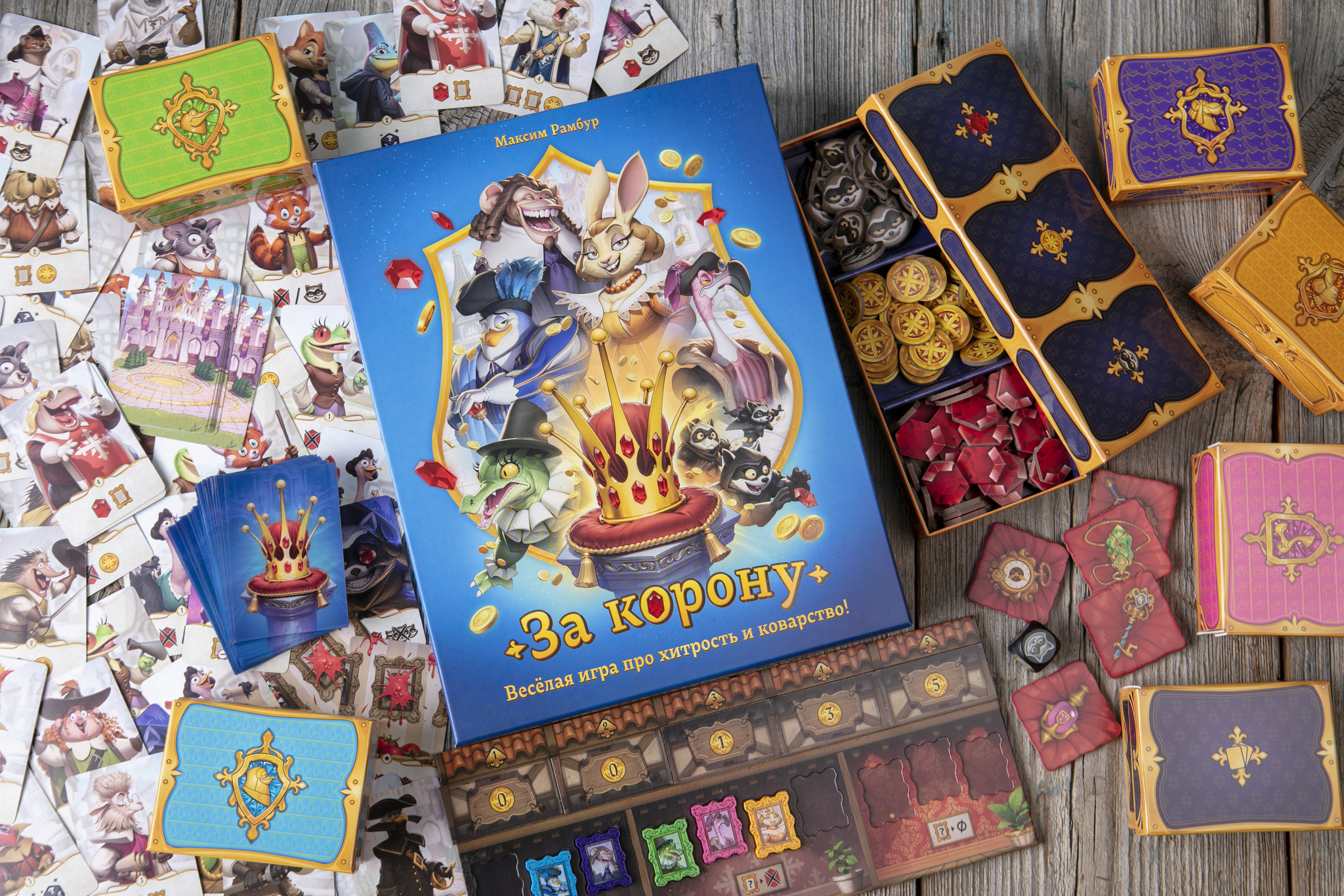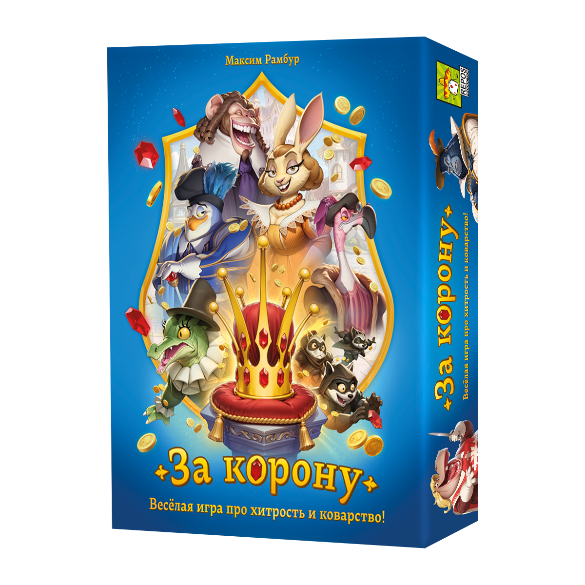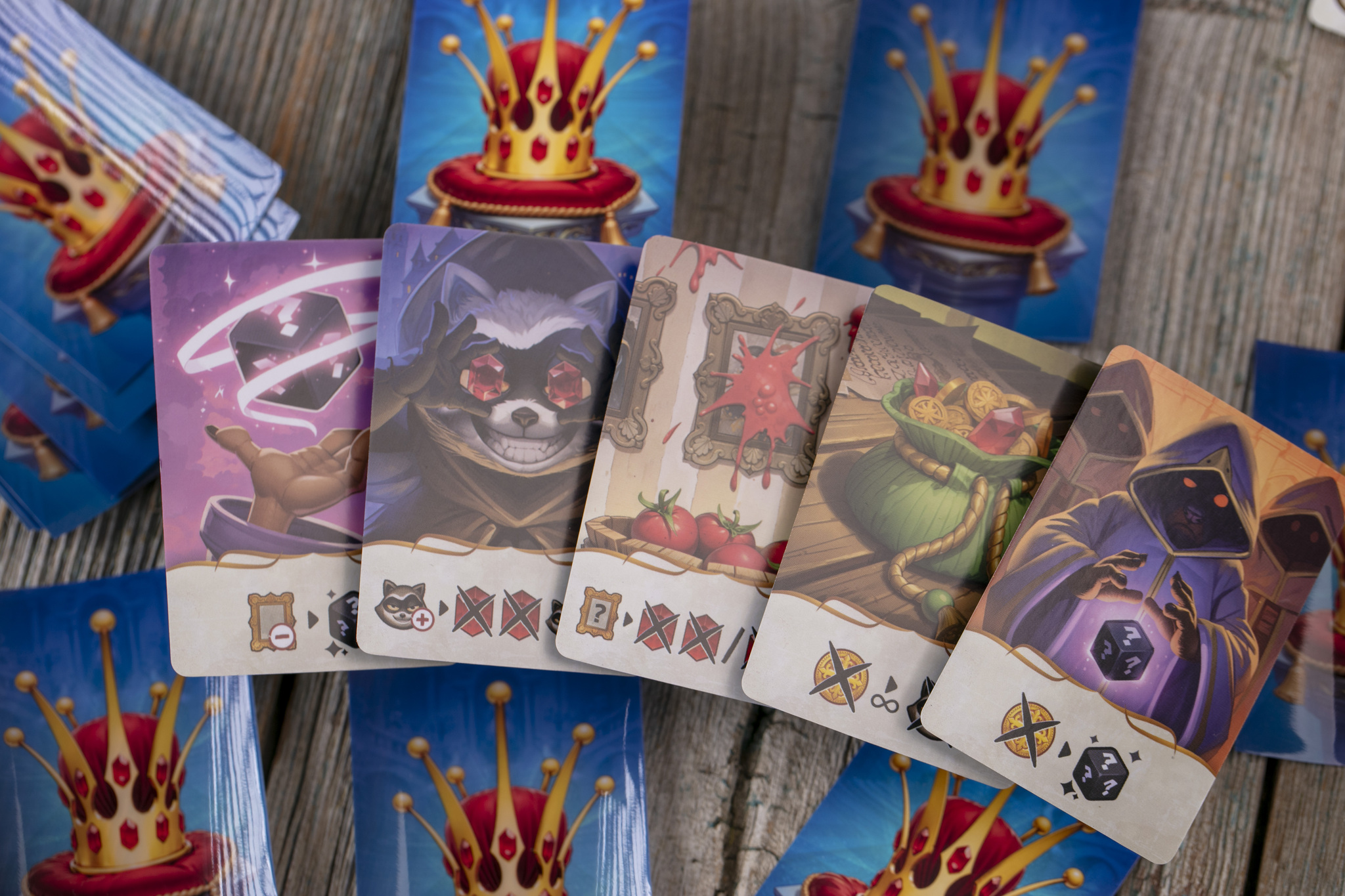 Вы с друзьями руководите разными именитыми семьями королевства — и каждый хочет надеть корону. Но путь к трону непрост! В течение четырёх раундов вы вербуете наёмников, влияете на соперников, посылаете к ним разбойников и используете толику волшебства, чтобы они потеряли рубины, а вы — выиграли королевскую битву.