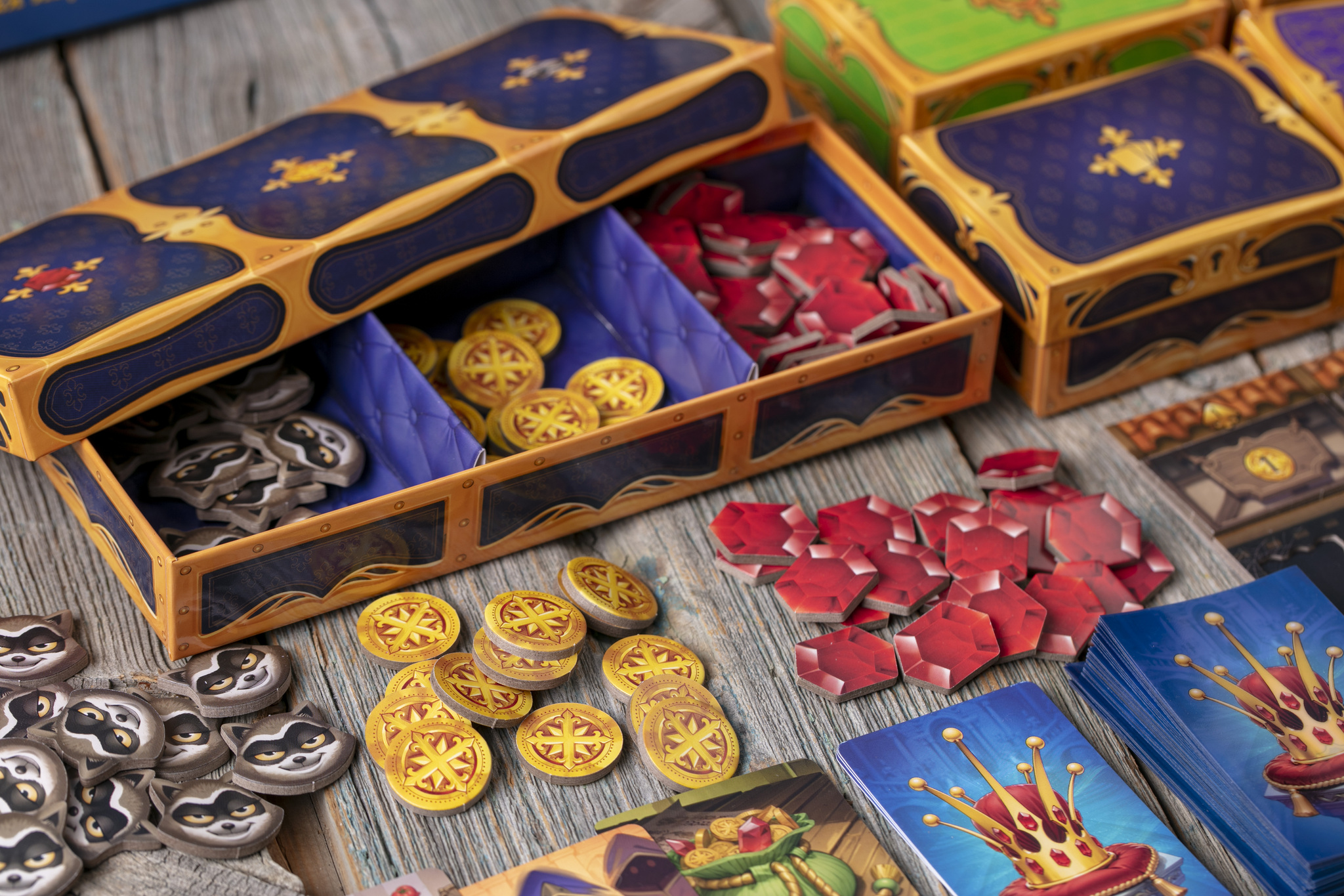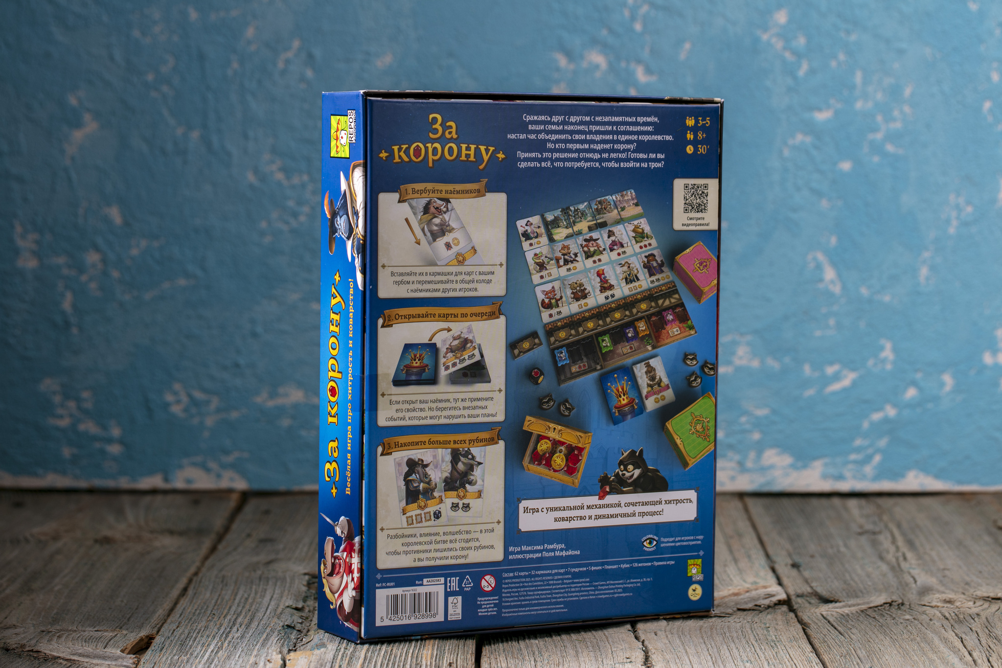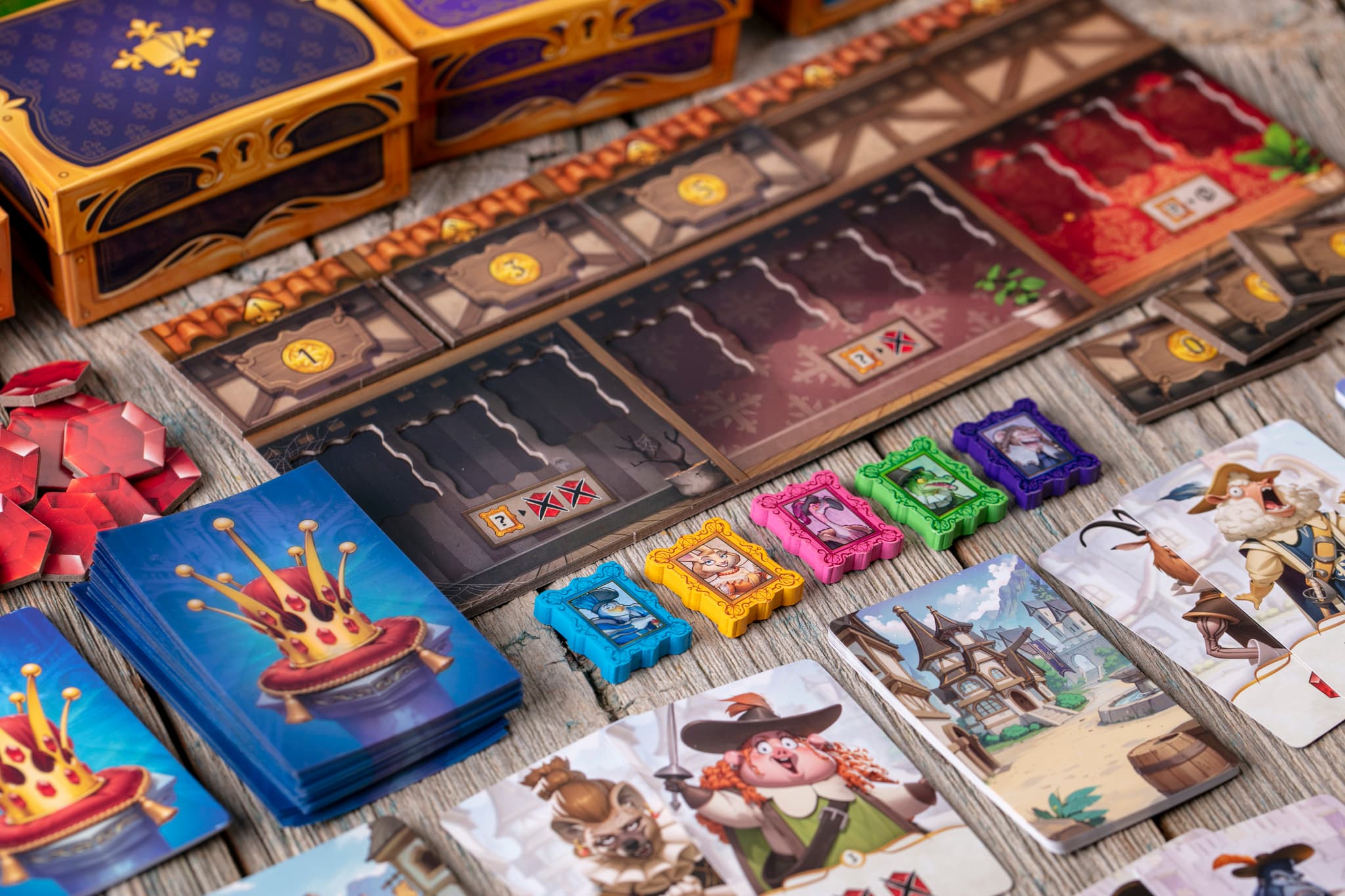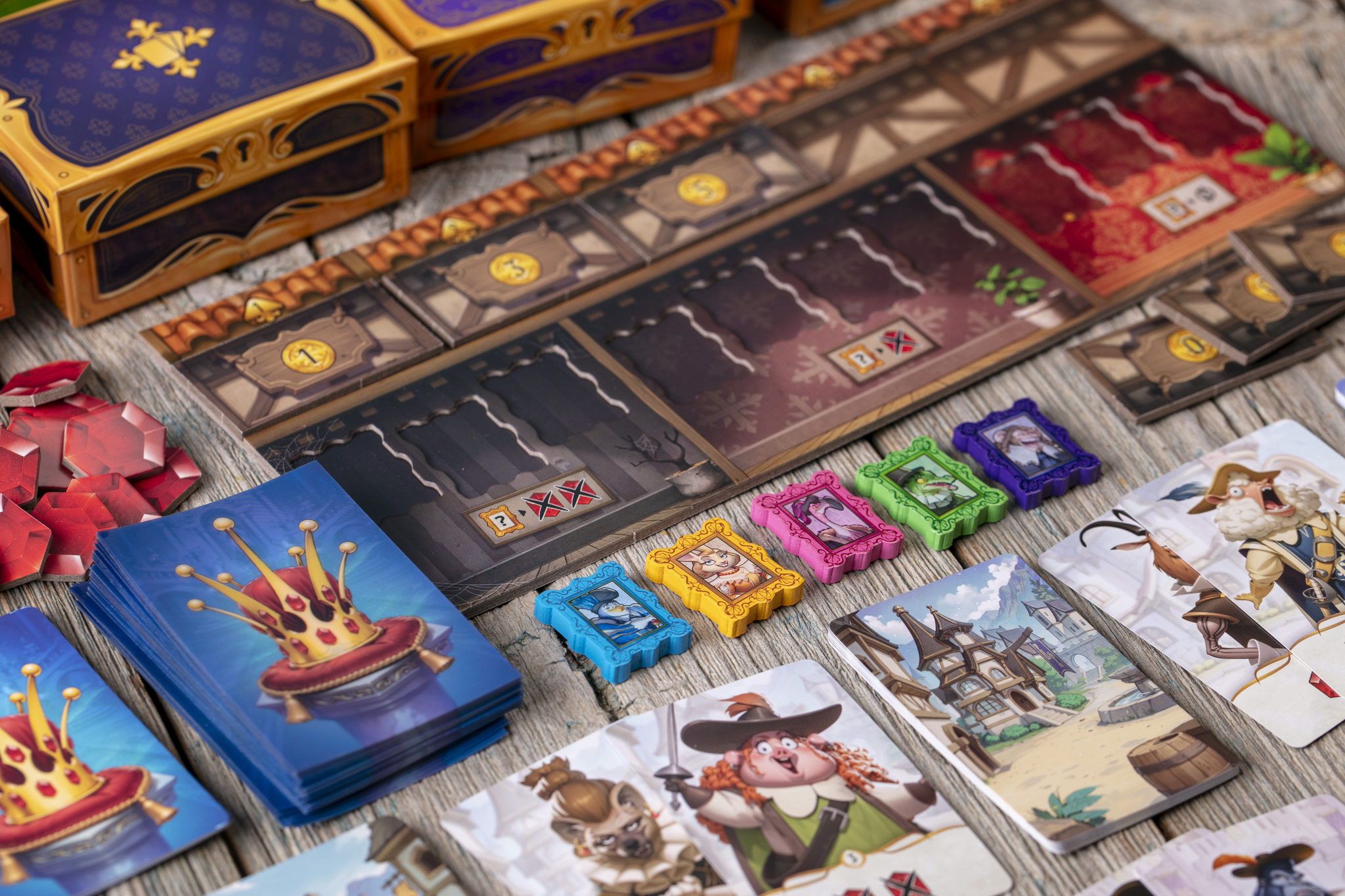 Вы с друзьями руководите разными именитыми семьями королевства — и каждый хочет надеть корону. Но путь к трону непрост! В течение четырёх раундов вы вербуете наёмников, влияете на соперников, посылаете к ним разбойников и используете толику волшебства, чтобы они потеряли рубины, а вы — выиграли королевскую битву.