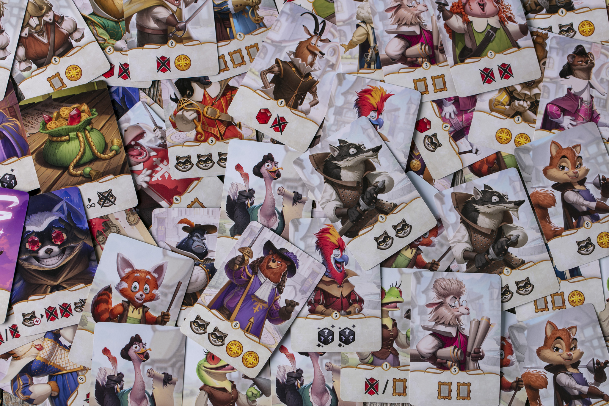 Главная фишка игры — уникальная механика построения общей колоды. Карты завербованных наёмников вы помещаете в личные кармашки и они остаются вашими на всю партию. Но потом все карты собираются в одну общую колоду и раскрываются и применяют свои эффекты по очереди! Это создаёт динамичный процесс, где даже небольшое решение может изменить ход партии.