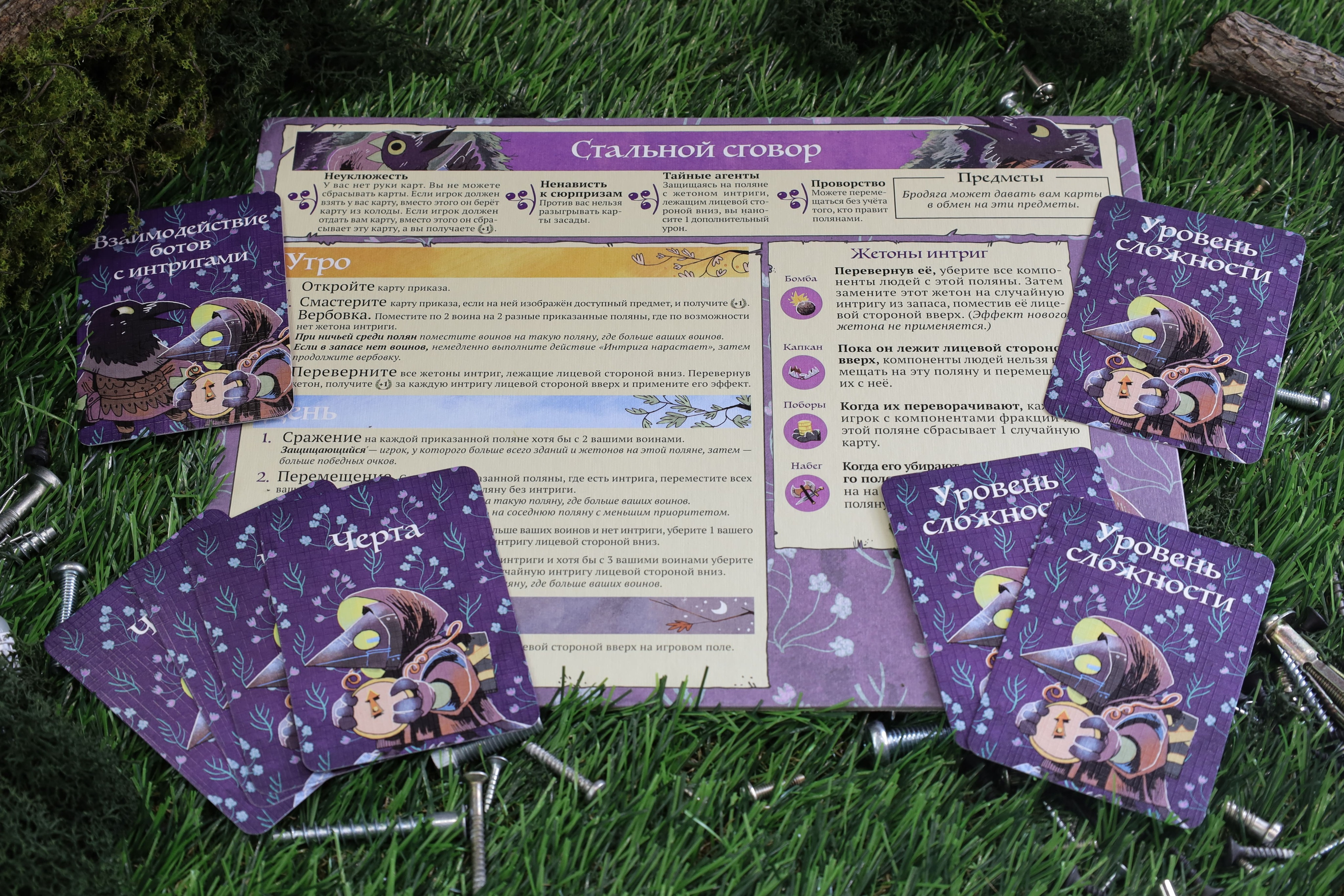 Это дополнение внесет больше разнообразия в ваши одиночные, кооперативные партии и партии на 2 игроков. Победите Пульт пресмыкающихся и разрушьте их сады, пока толпа ревностных аколитов не повергла вас. Торгуйте с Речными роботами, покупая их услуги. Однако убедитесь, что вы близки к победе, пока они не стали слишком могущественными и не пришли вернуть долг.Помешайте планам Стального сговора и уничтожьте их агентов, иначе они заставят весь лес исполнять их волю. Укрепите свои позиции против орд Гидробурового герцогства и не дайте их министрам добиться вашего поражения.
