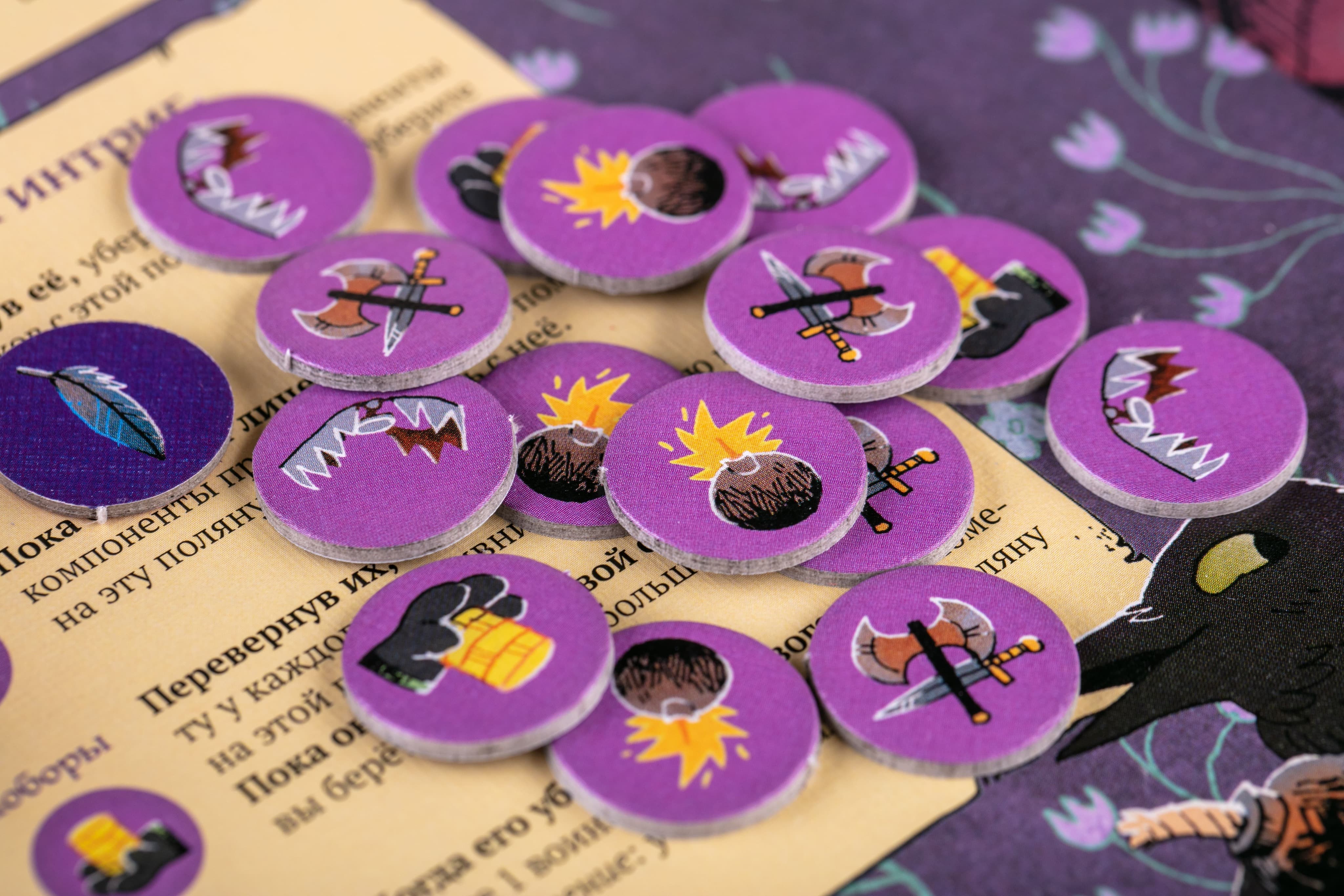 - Вороны очень отдалённо напоминают «Лесной союз». Они пытаются решить свои задачи при помощи коварства и террора, раскладывая жетоны интриг и получая победные очки, раскрывая эти жетоны на следующий ход. Они свободно перемещаются и легко появляются в любых уголках леса, так как игнорируют основное правило перемещения (с контролируемой поляны или на неё). Эта фракция отлично подойдёт тем, кто предпочитает предугадывать действия соперников, контролировать ситуацию и всегда иметь в запасе запасной план действий.