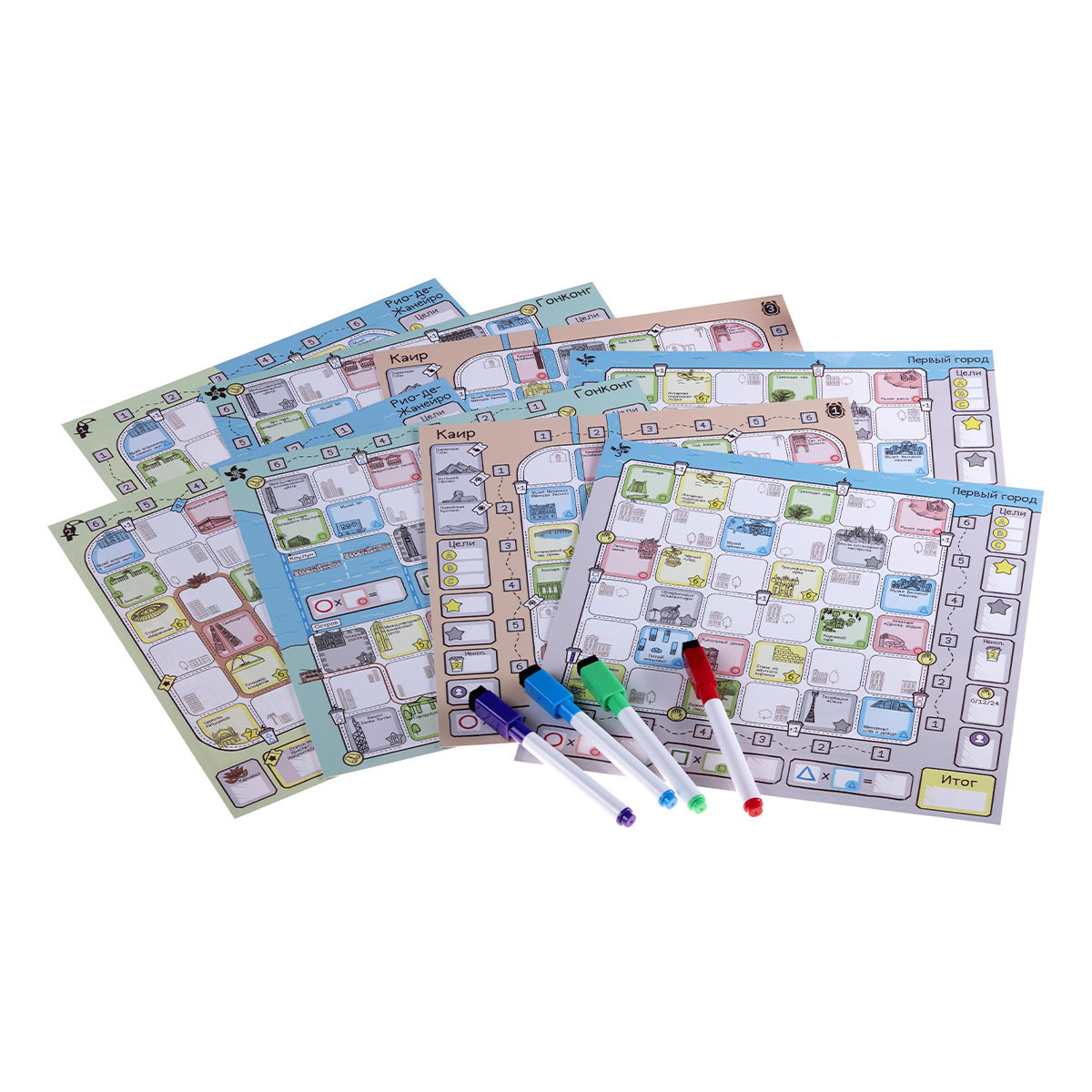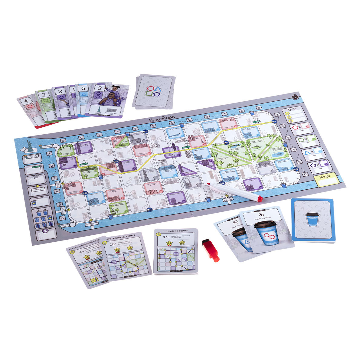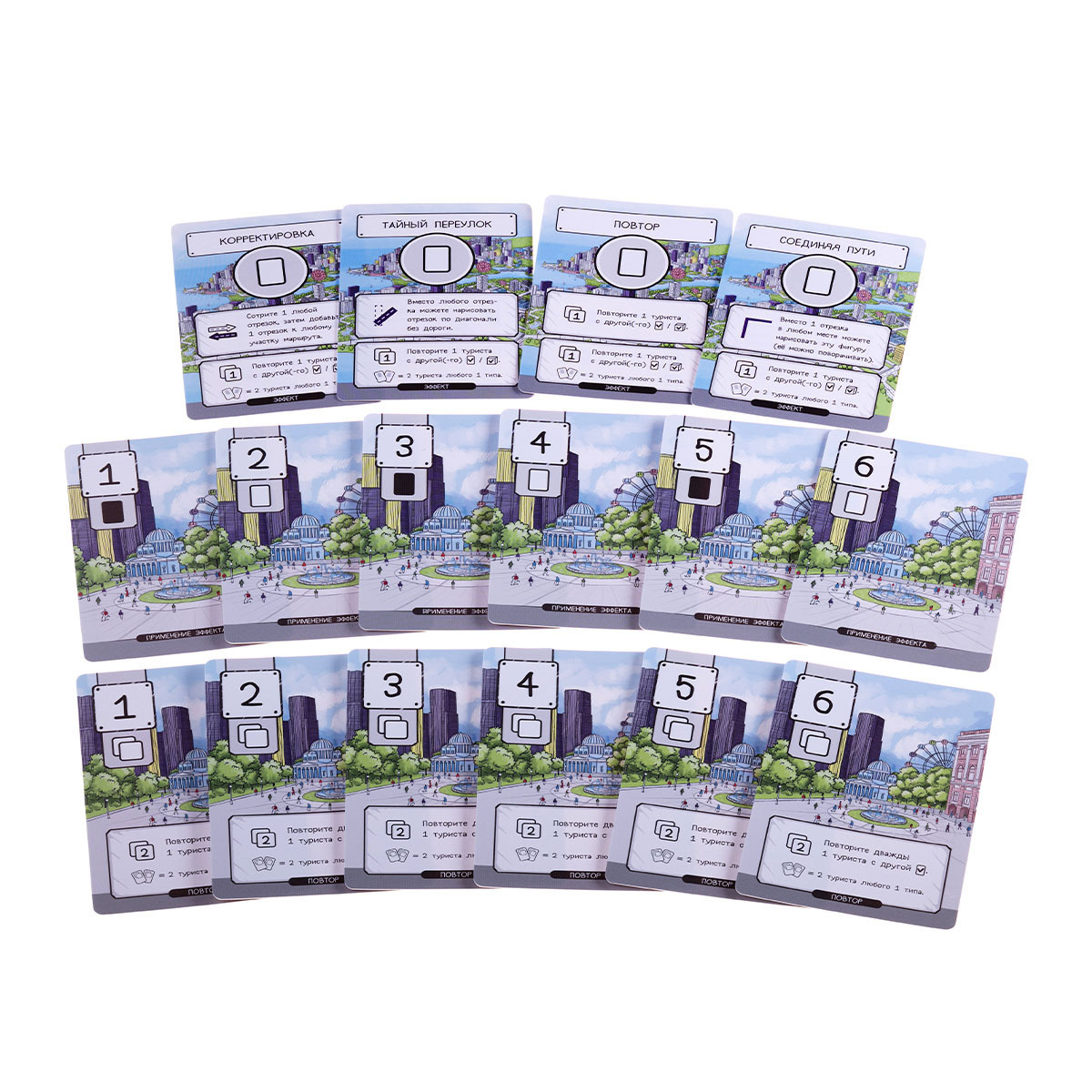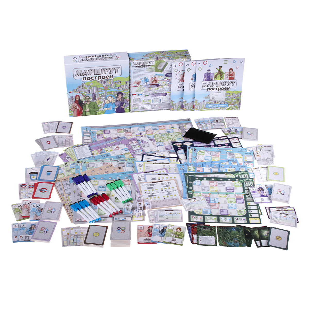 «Маршрут построен» — это игра, в которой вы создаёте туристические маршруты по самым примечательным местам Лондона, Нью-Йорка, Гонконга и других удивительных городов. Вам предстоит выбирать, каких туристов с карт раунда вы хотите привлечь к своему туру. Затем вы будете отмечать их на своей карте города и прокладывать для них маршрут (желательно оптимальный!), стараясь захватить те места, которые они хотели бы посетить.
