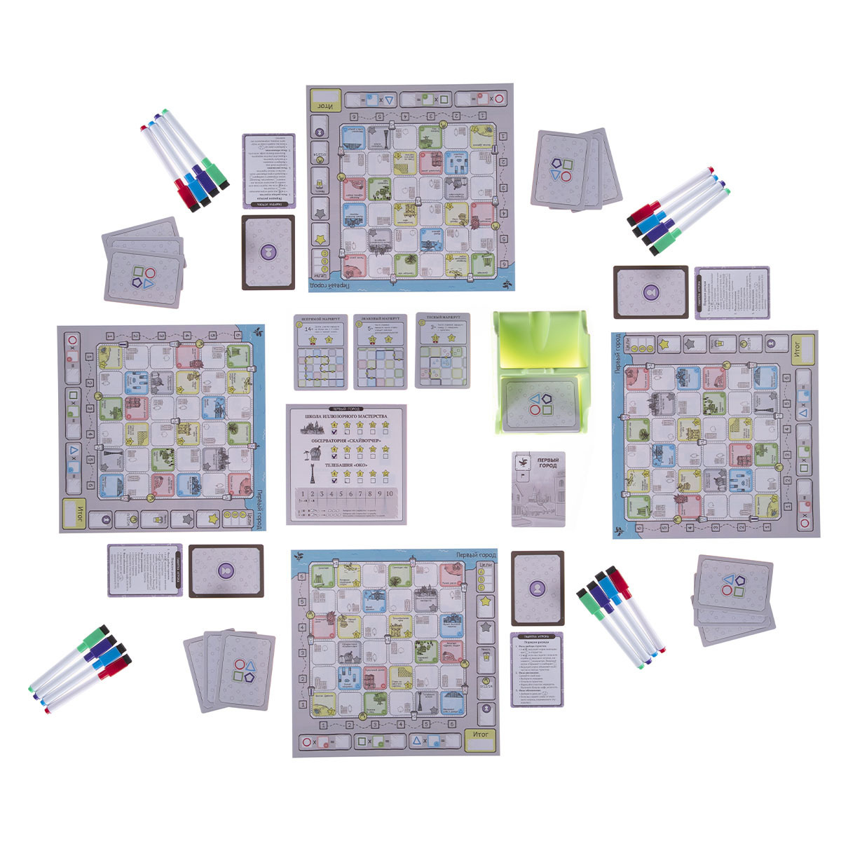 - 20 двусторонних планшетов игроков, в том числе 4 больших