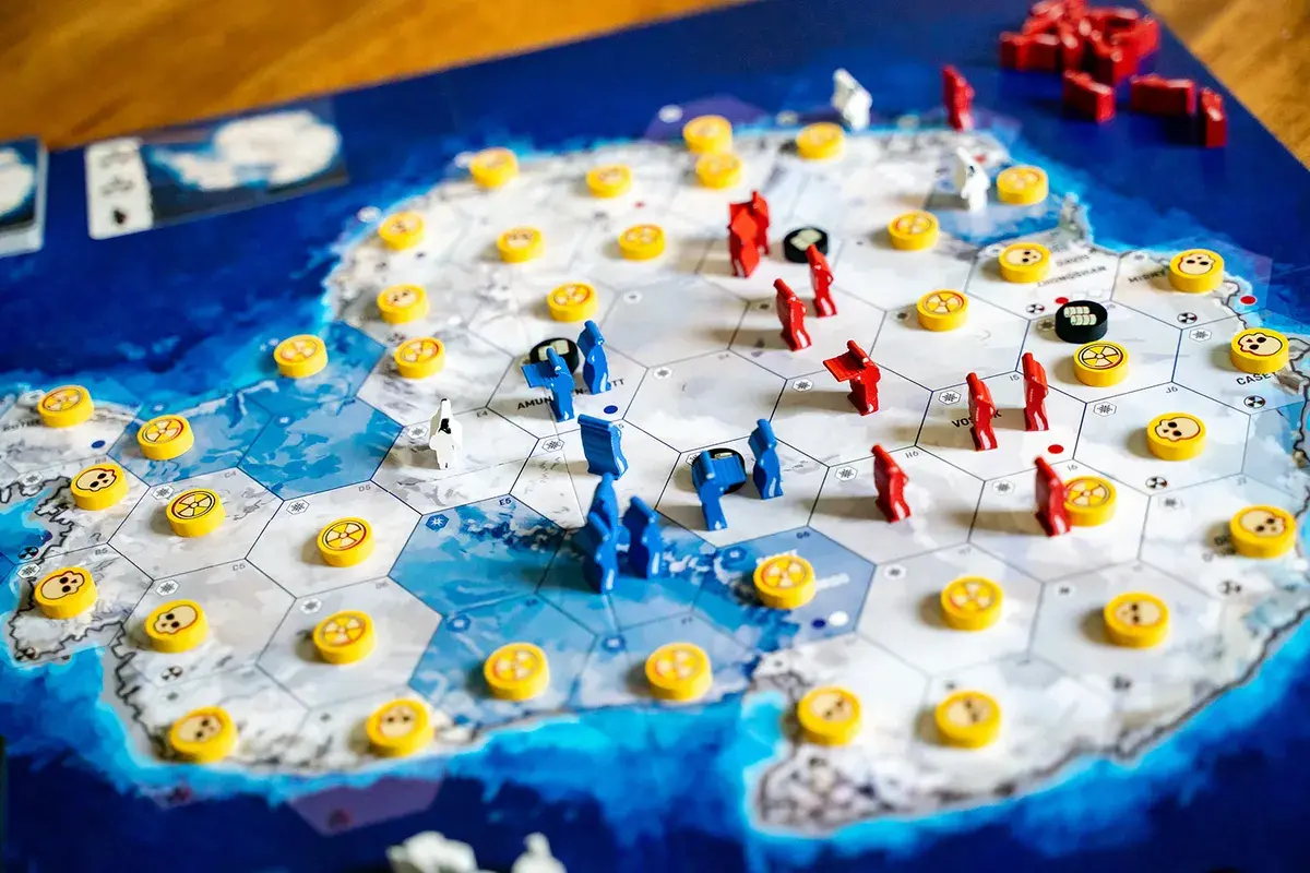 В игре Meltwater два игрока управляют разрозненными остатками сверхдержав, сражаясь за контроль над льдом. Простая механика без использования кубиков позволяет игрокам вытеснять, загонять в угол и изолировать выживших противников. Здесь голод — более жестокое оружие, чем огнестрельное, а бесплодная тундра может прокормить лишь ограниченное число людей. С каждым ходом радиоактивное заражение распространяется от береговой линии, сокращая доступное пространство и вынуждая воюющих сходиться всё ближе и ближе. В конце концов, остаётся только подчинение или уничтожение, и неважно, что останется от мира.