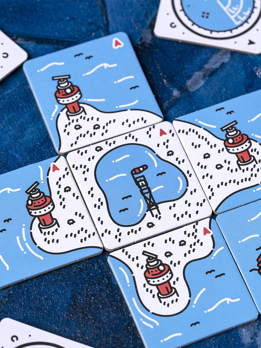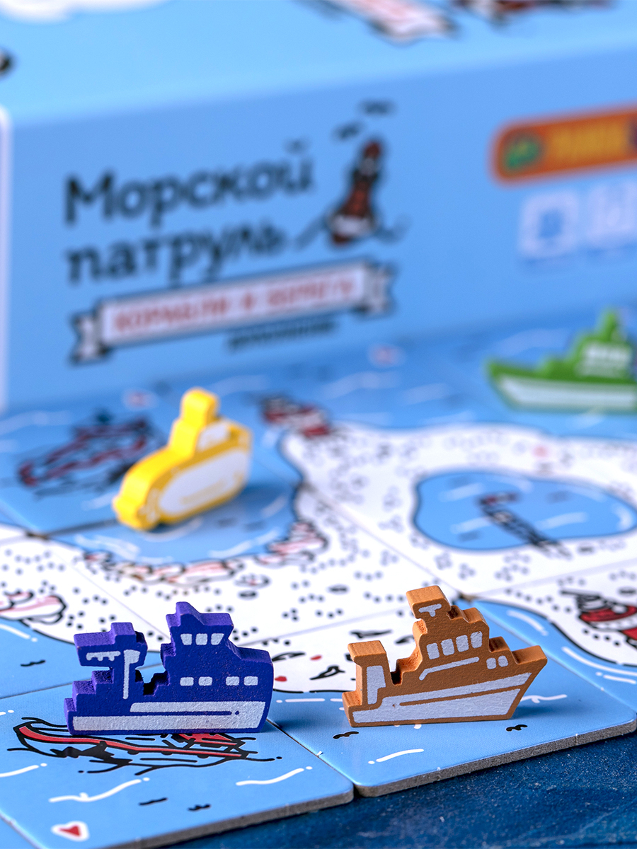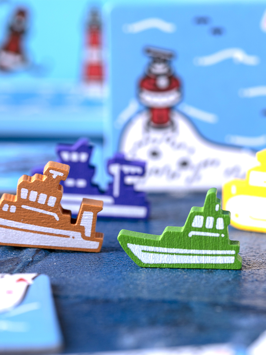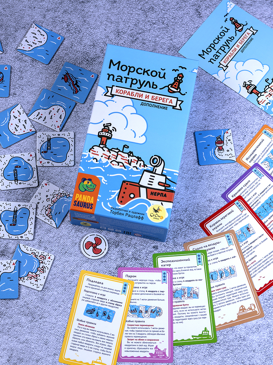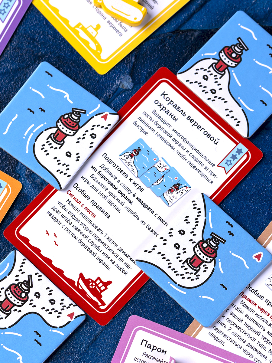 Теперь у каждого игрока в партии появляется корабль с асимметричной способностью (а всего их 7!). Например, экспедиционный катер ограничен в перемещении, но зато позволяет выкладывать жетоны через сушу. А крановое судно строит ветрогенераторы, которые, наоборот, делают его более гибким в перемещении. Ну и, конечно, приносят победные очки! Всего корабли добавляют 20 новых квадратов, и благодаря этому стратегии становится многослойнее.