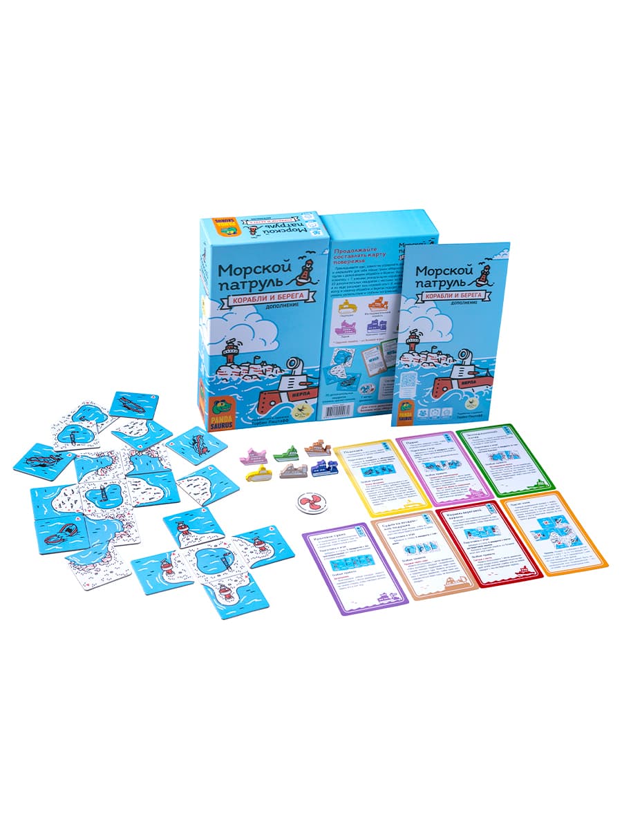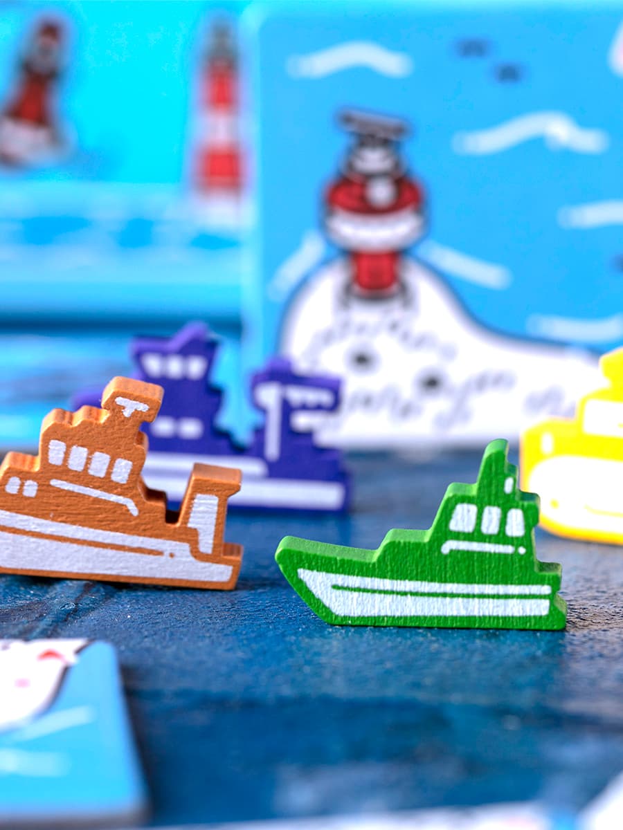 Теперь у каждого игрока в партии появляется корабль с асимметричной способностью (а всего их 7!). Например, экспедиционный катер ограничен в перемещении, но зато позволяет выкладывать жетоны через сушу. А крановое судно строит ветрогенераторы, которые, наоборот, делают его более гибким в перемещении. Ну и, конечно, приносят победные очки! Всего корабли добавляют 20 новых квадратов, и благодаря этому стратегии становится многослойнее.