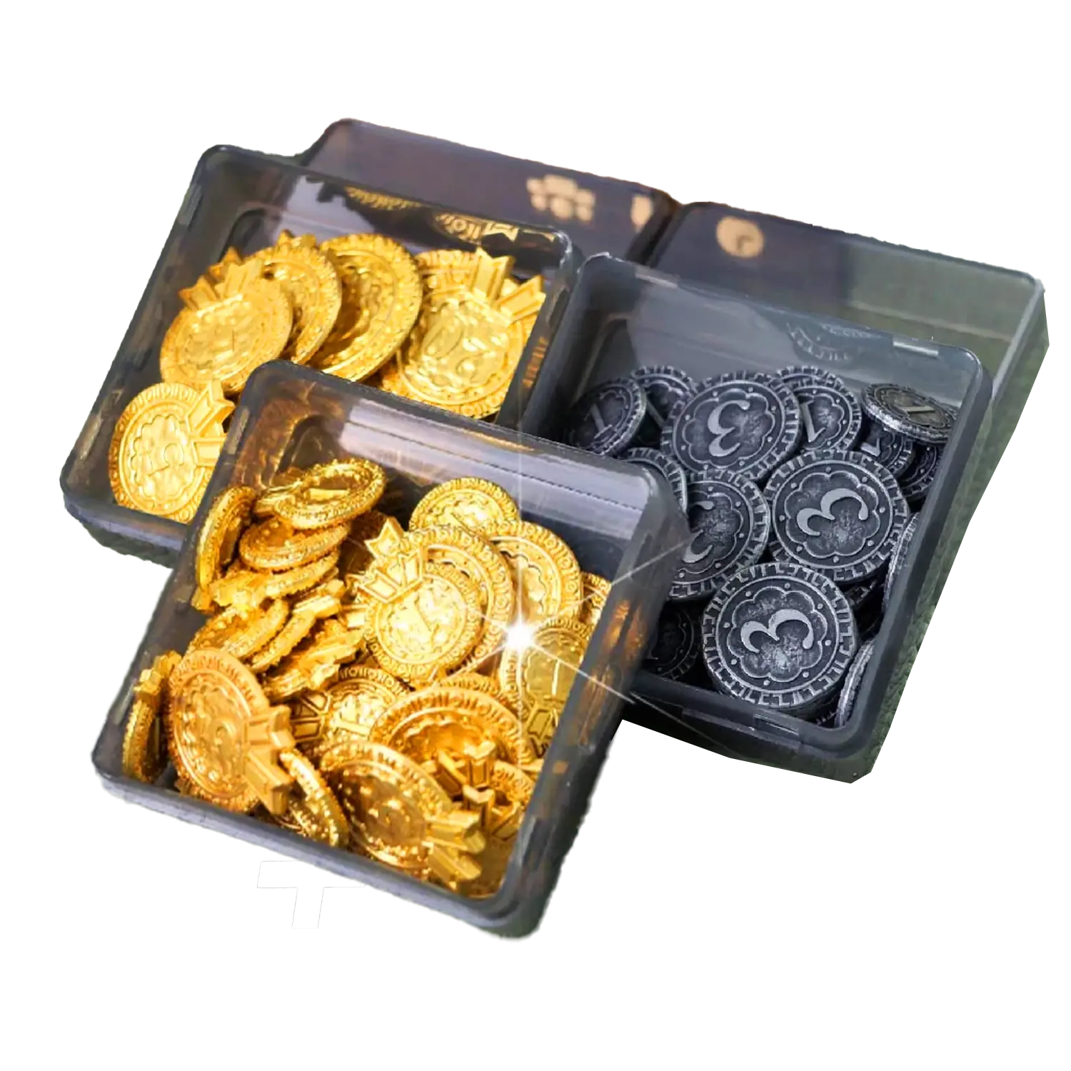 Металлические монеты и жетоны победных очков. Теперь и богатство, и победа будут ощущаться по-настоящему весомо — и сверкать по-настоящему ярко!