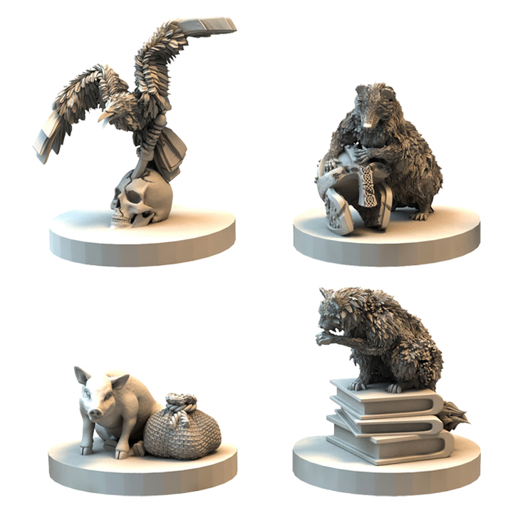Если вы уже проходите или прошли базовую игру «Осквернённый Грааль», то, возможно, успели подружиться с кем-то из них (что может быть приятнее, чем уйти из неприятной встречи с врагом благодаря поросёнку?). В этом наборе представлены фигурки этих мохнатых, пернатых и копытных помощников. Они используются во всех трёх кампаниях игры!