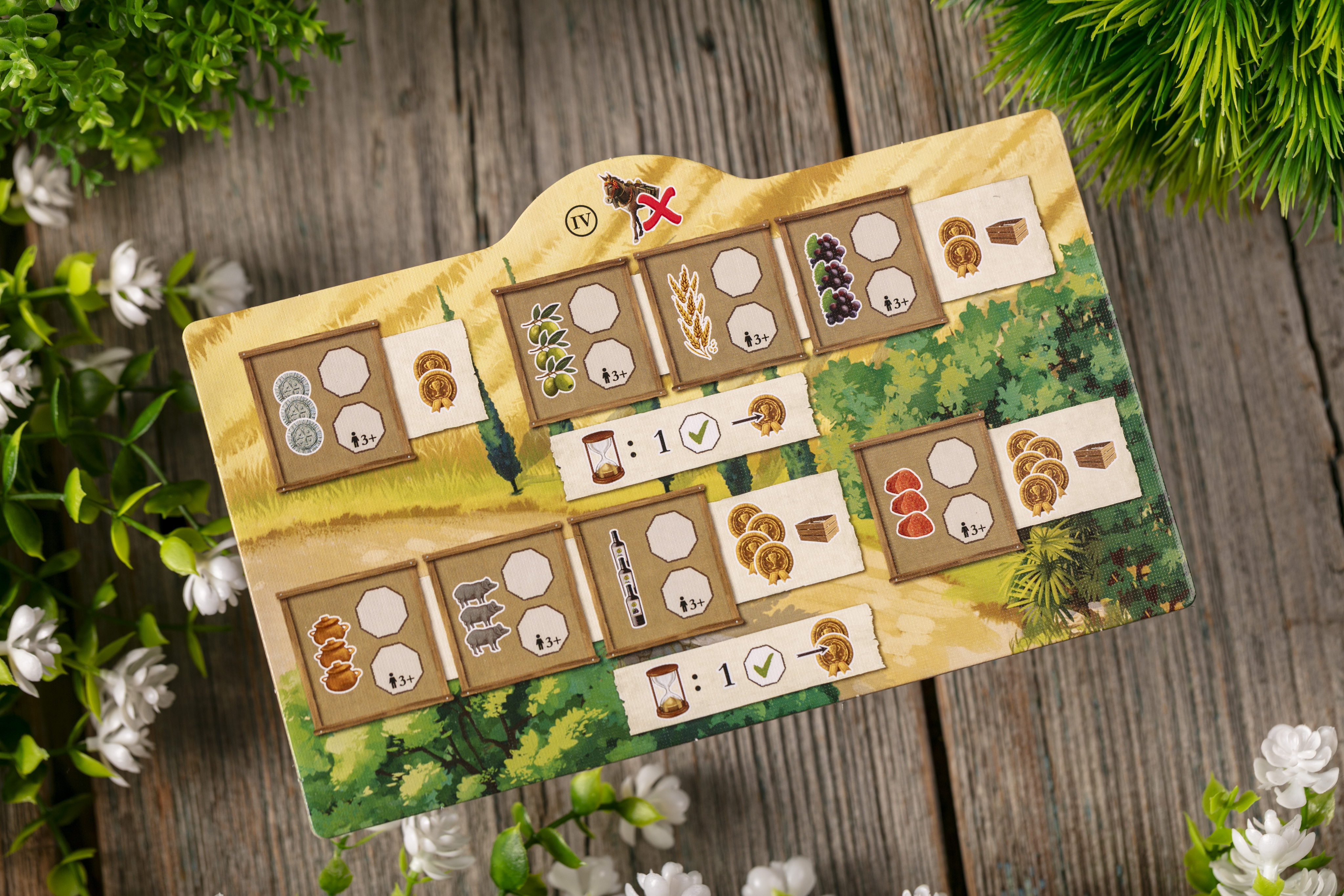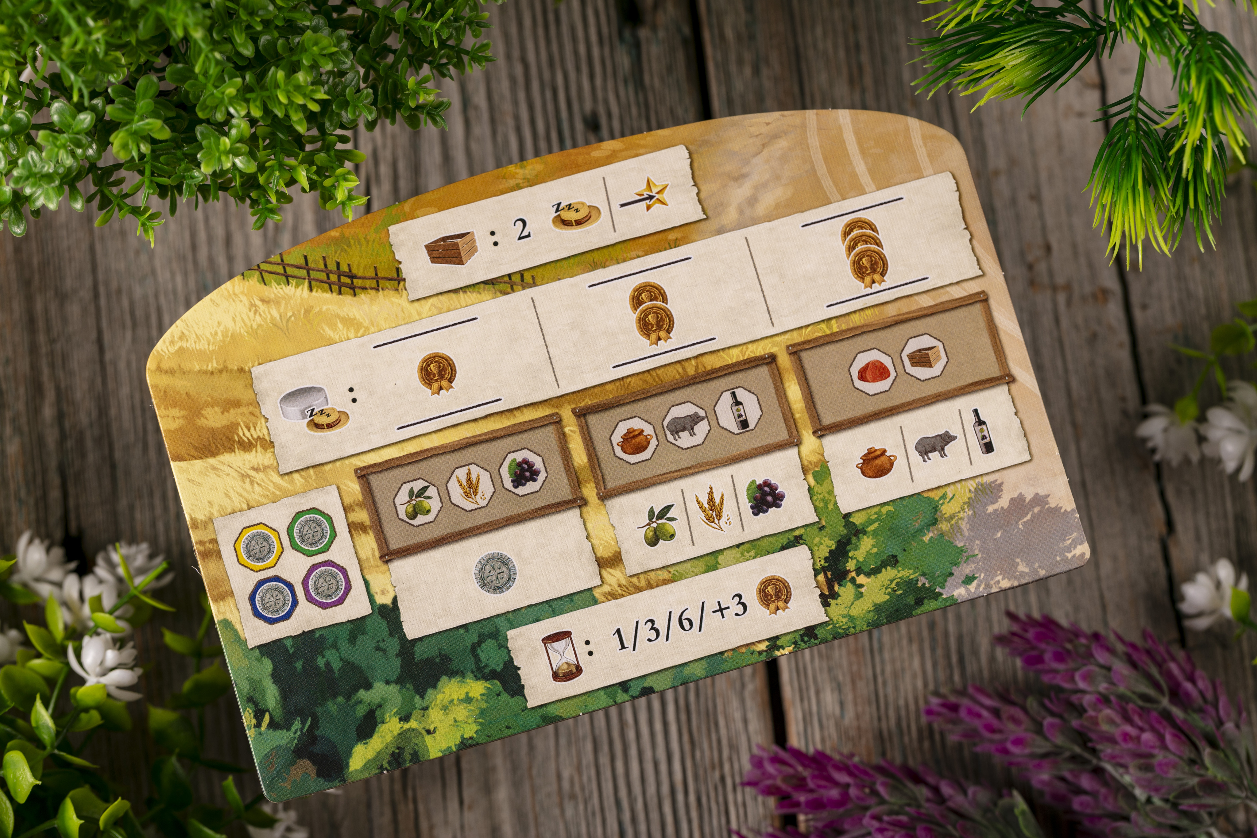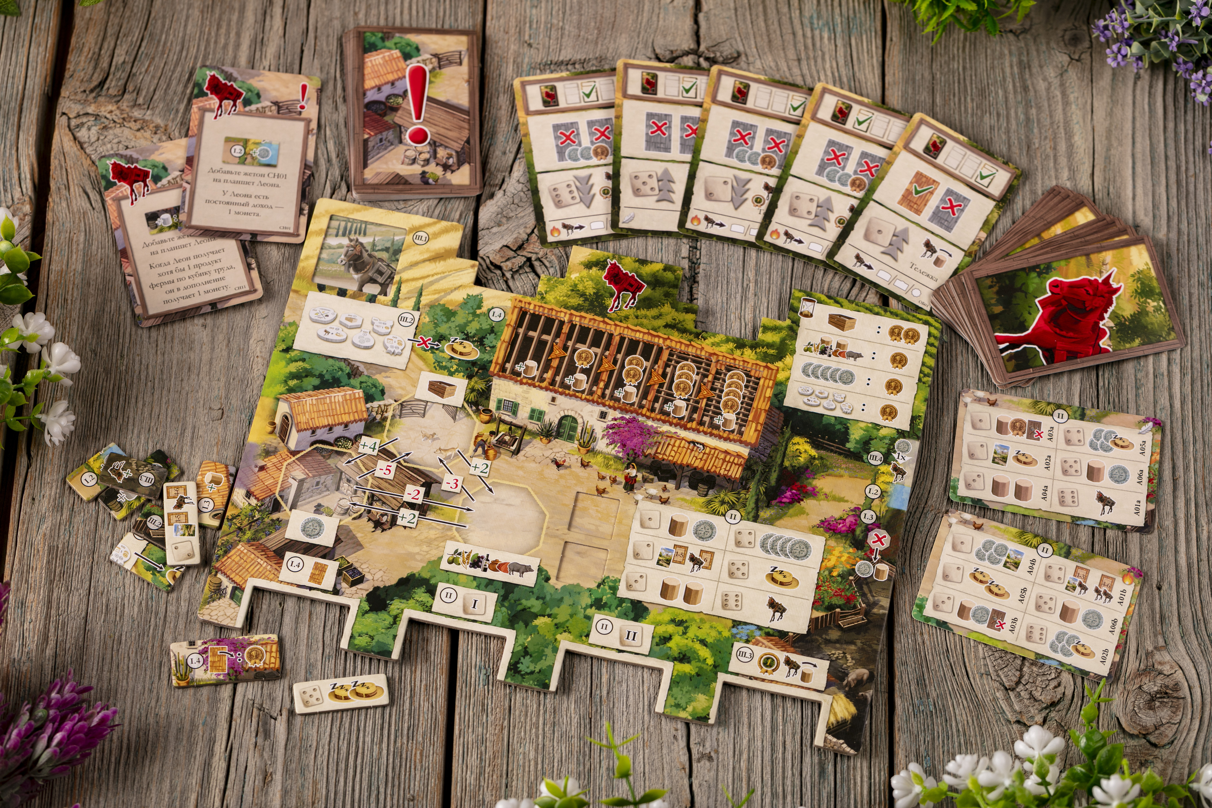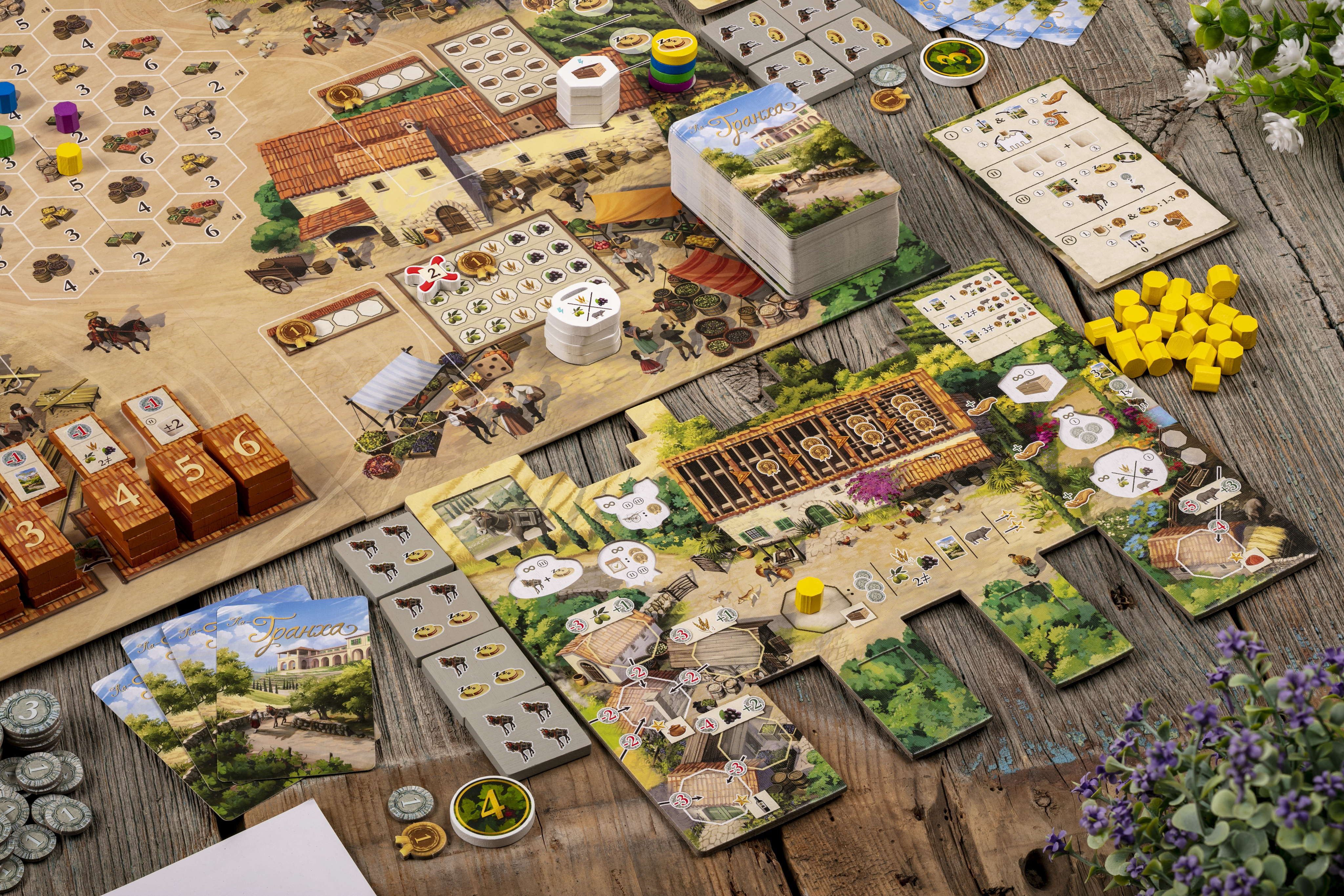 Вы строите ферму на Мальорке, управляете ресурсами, выстраиваете цепочки поставок и гибко используете многофункциональные карты. Кубики добавляют непредсказуемости, а борьба за контроль территорий добавляет в игру остроты.