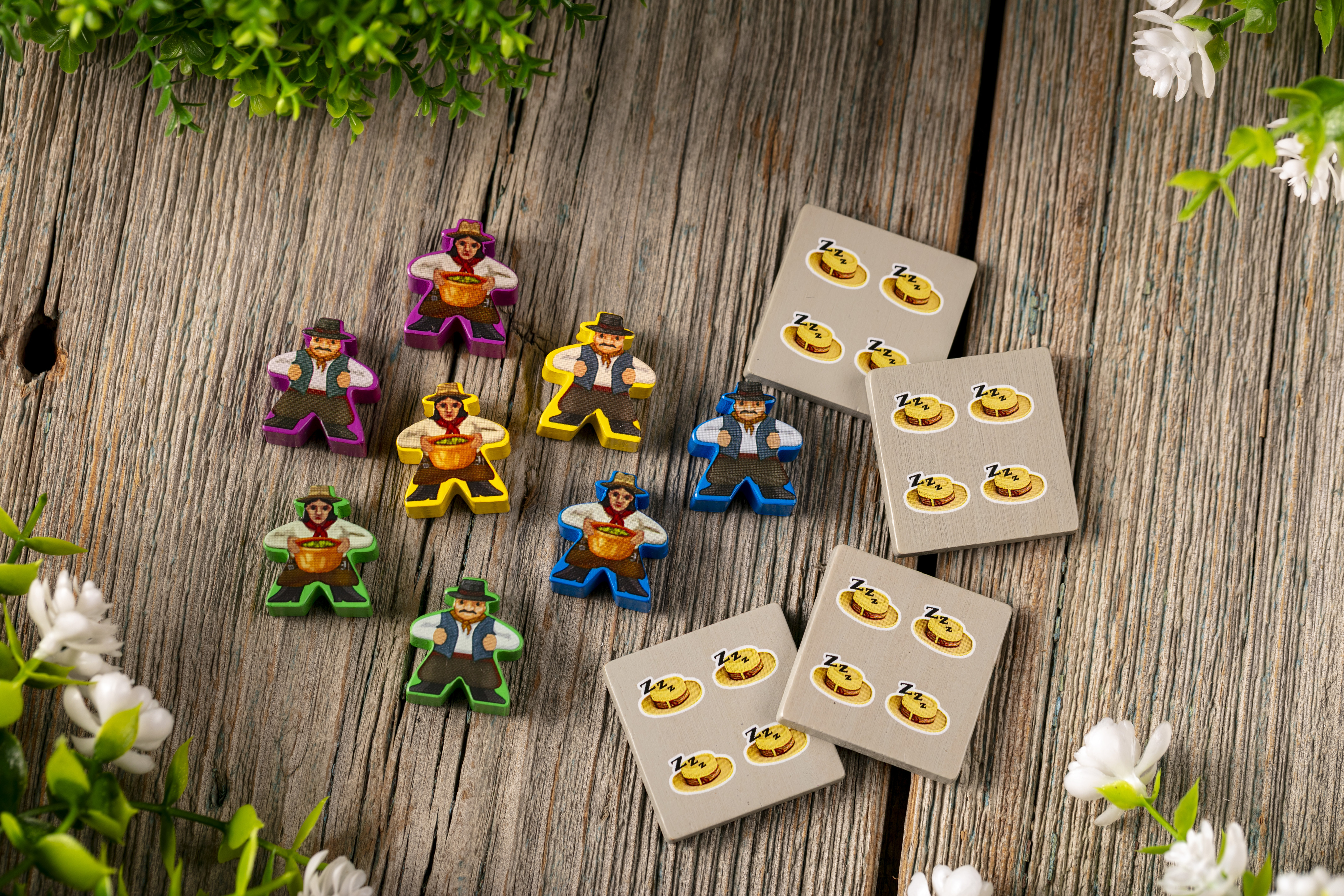 - 6 двусторонних жетонов труда,