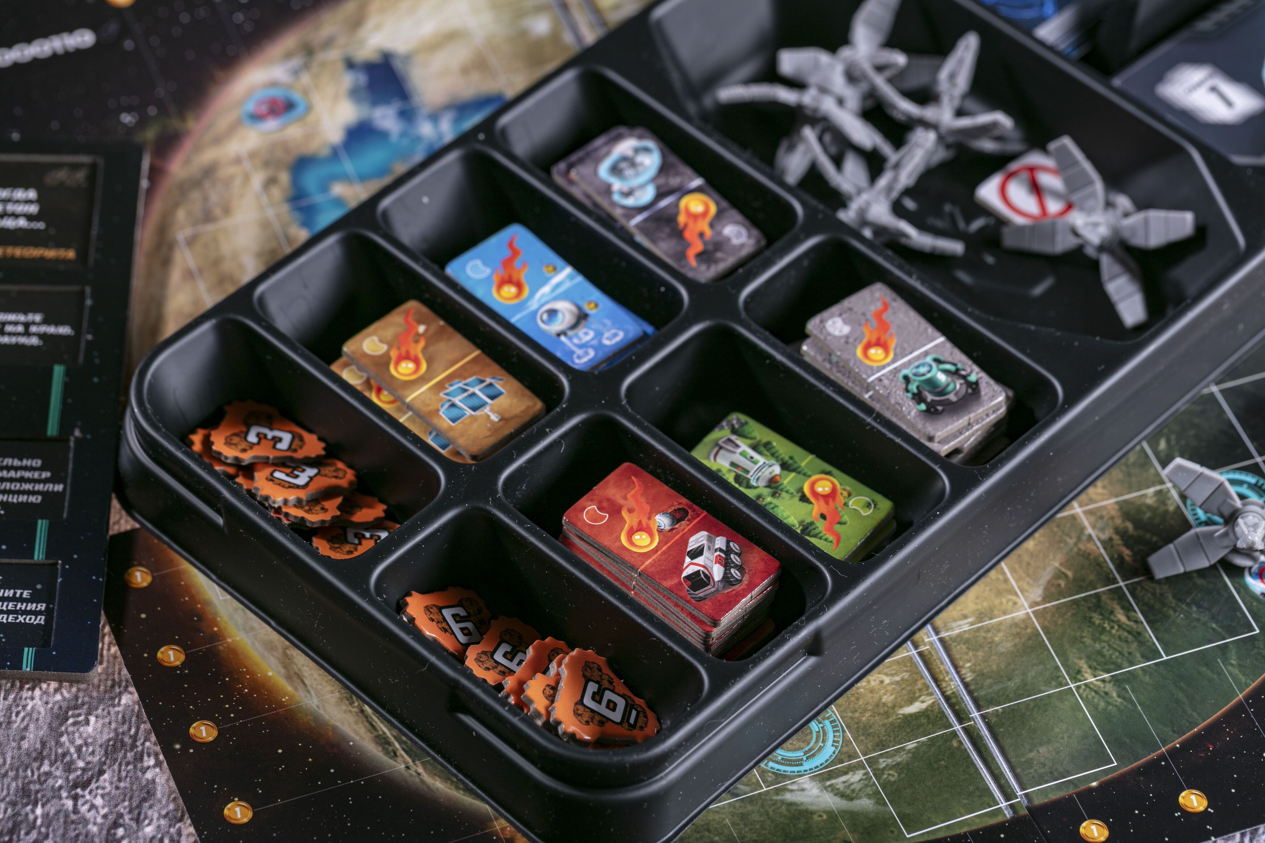 Новые планшеты — расколотая планета и разделённая корпорация — добавят кризисности и порадуют сложностью опытных игроков. Новые карты с необычными эффектами для базовых колод событий и освоения разнообразят ваши партии в «Неизвестную планету».