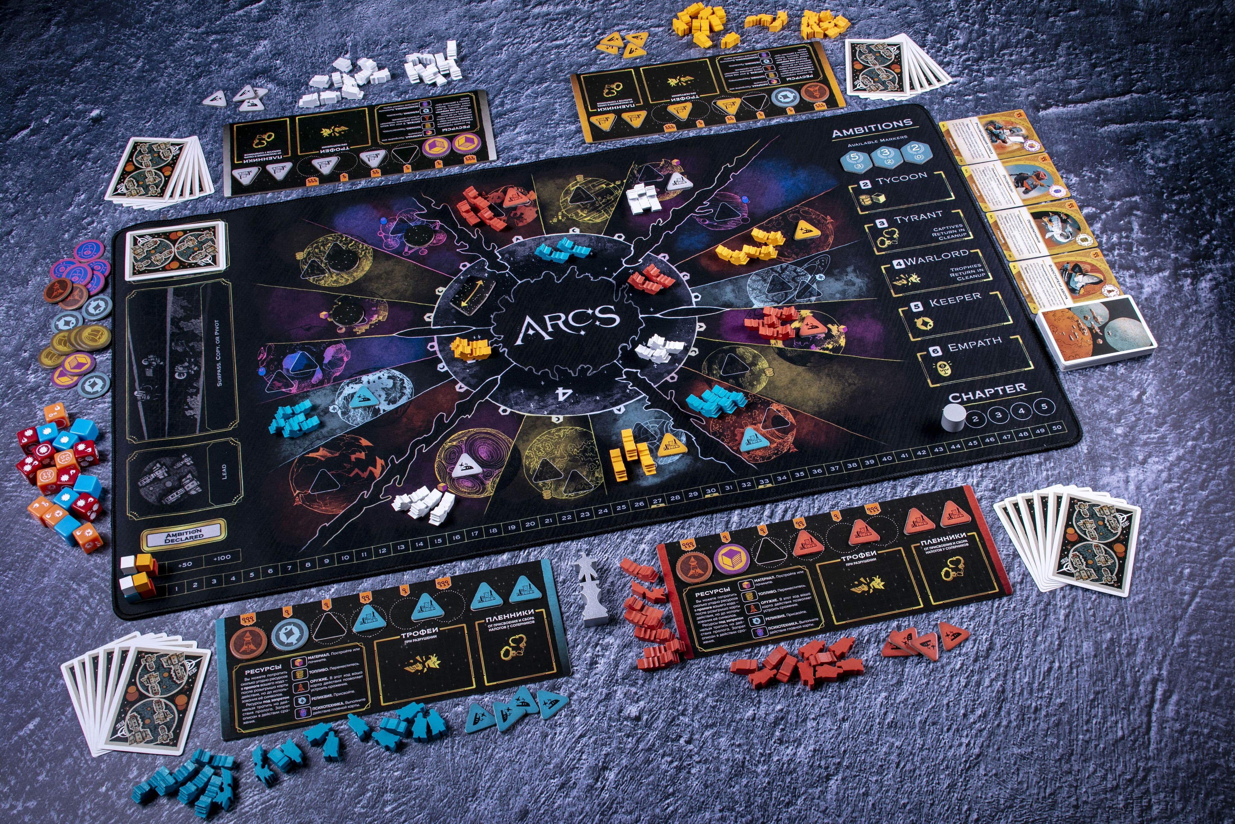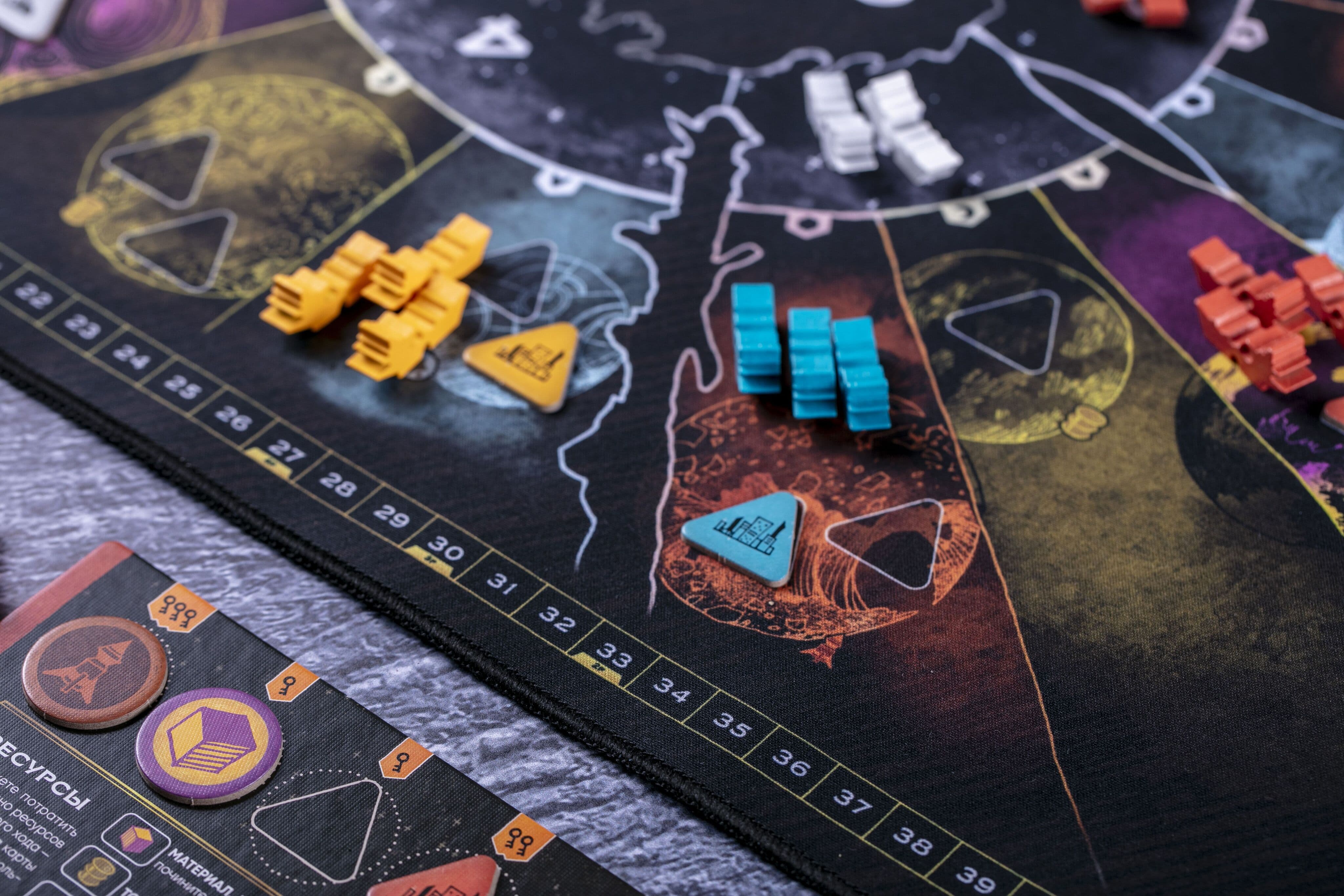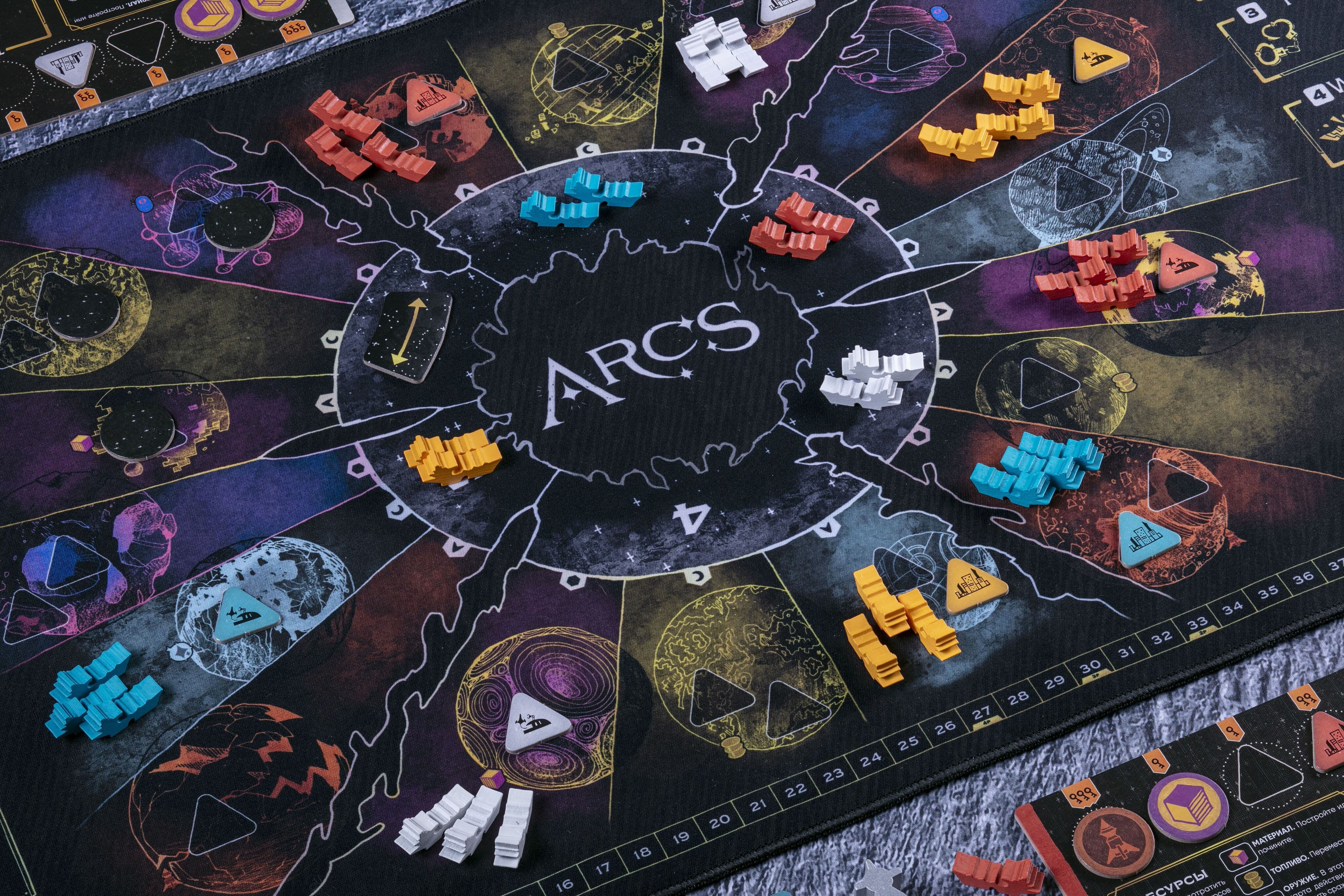 Приятный на ощупь и удобный в использовании неопреновый плеймат, компоненты и карты приятно класть и удобно брать. Плеймат прошит по краям, у него нет стыков, как у разложенного поля. Размер совпадает с игровым полем.