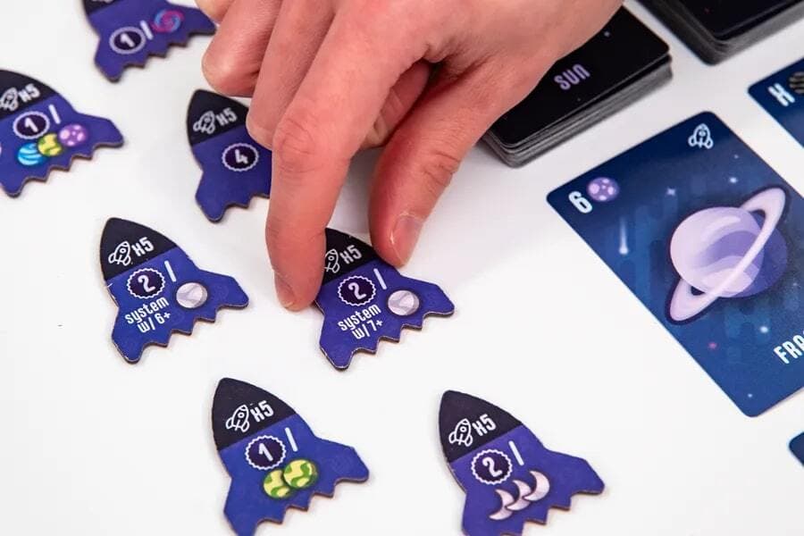 Правила просты: возьмите любые две карты с рынка и добавьте их в свою расширяющуюся галактику. Размещая карты, создавайте солнечные системы, располагая планеты в числовом порядке, и зарабатывайте бонусы, собирая солнца, астероиды, луны, ракеты и исследовательские проекты, чтобы набрать как можно больше очков.