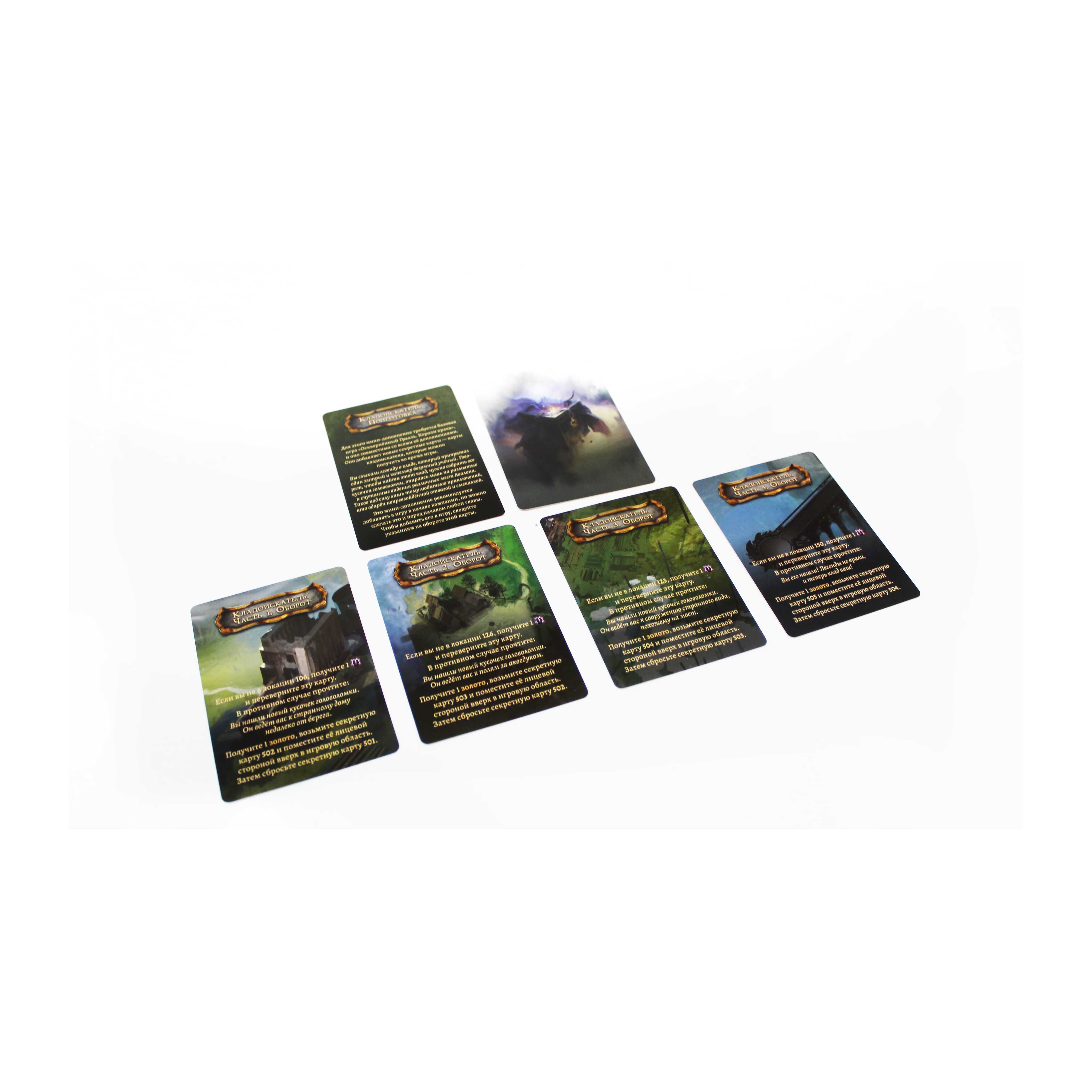 Промонабор «Поиск сокровищ» — это мини-дополнение, вводящее в игру новые секретные карты. Они добавляют сюжетную линию о поиске сокровищ, спрятанных хитроумным учёным. Исследуйте локации и ищите подсказки, позволяющие отыскать сокровища. Это усилит атмосферу загадок и неожиданных открытий, делая партии более увлекательными.