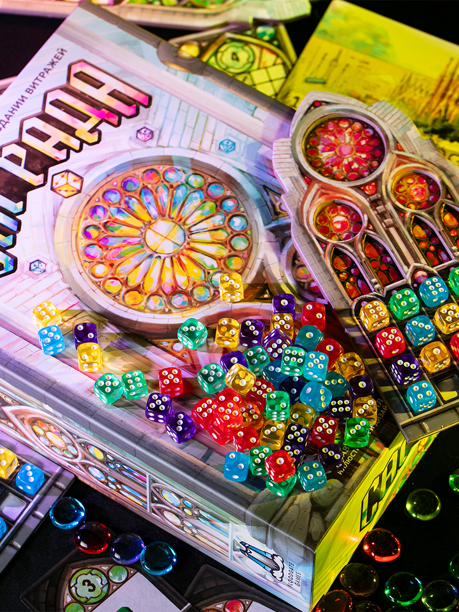 Создание витражей — процесс творческий, но вашу креативную мысль ограничат строгие правила. Ваше стекло — это кубики. Инструменты — карты действий. Схемы и эскизы — планшеты витражей. Победит самый талантливый и точный.