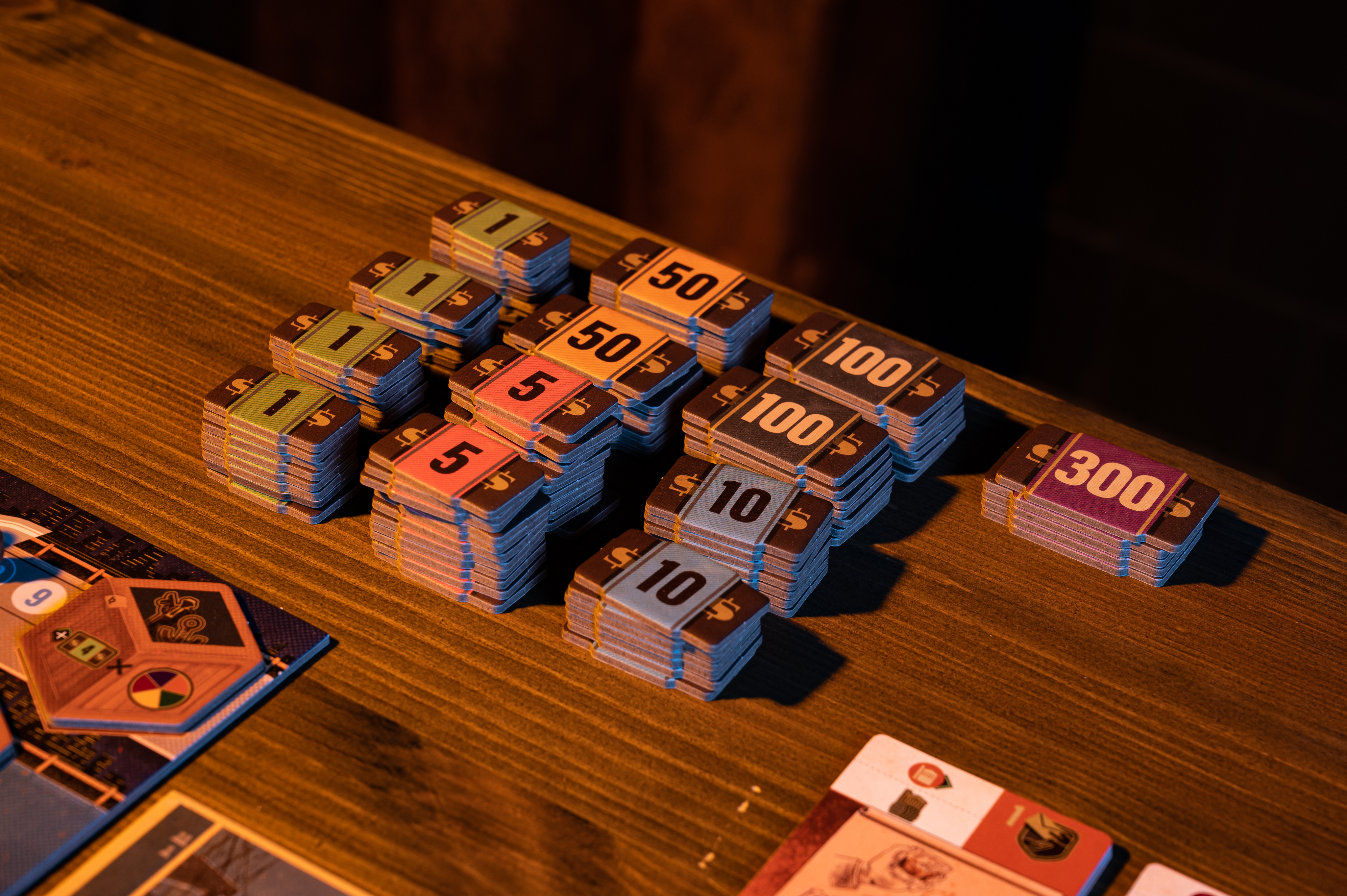 - 116 жетонов денег (в 6 номиналах).